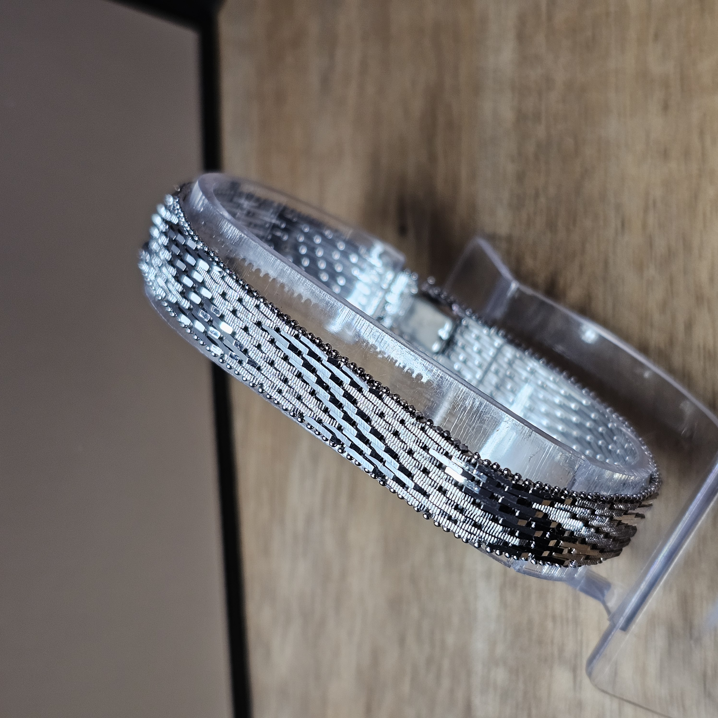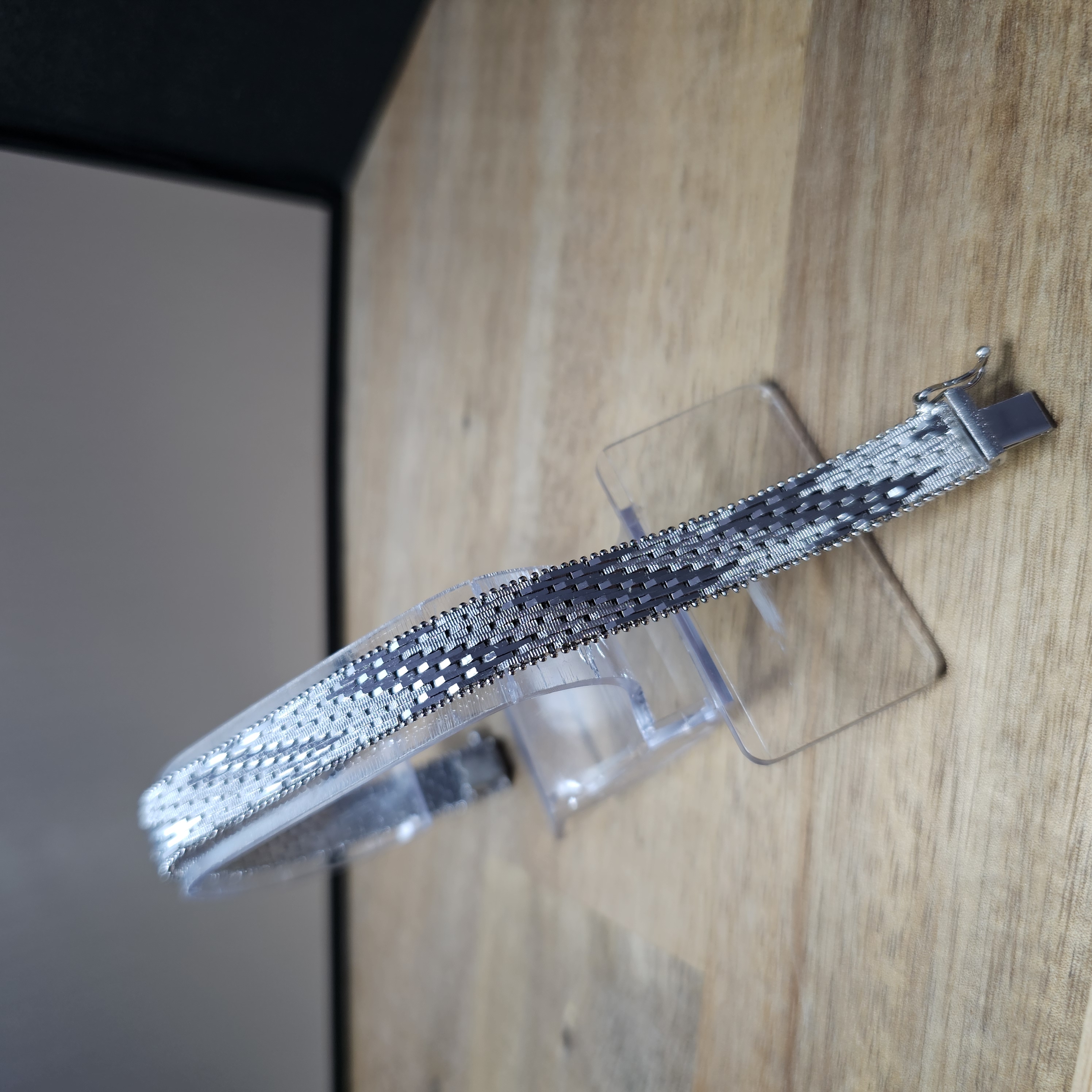 Tolles Armband / Schlangenarmband aus Silber 835. Schmuckstück mit edlem Design, teil glänzend gestaltet. Es verfügt über eine Steckschließe mit einem Sicherheitsverschluss.