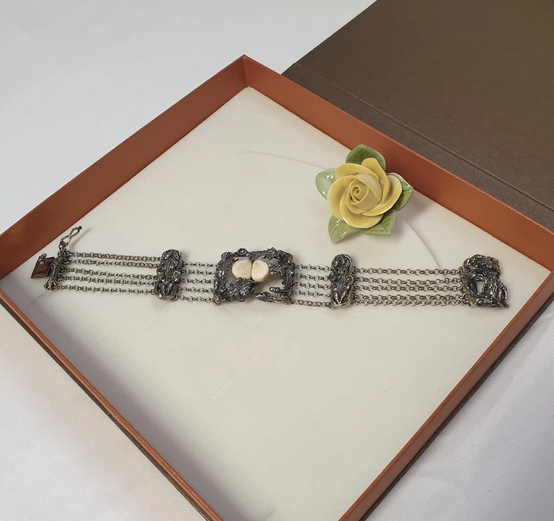 19 cm Trachtenschmuck Armband Gliederarmband Grandeln Silber 925 Silberschmiedekunst edel Unikat SA615