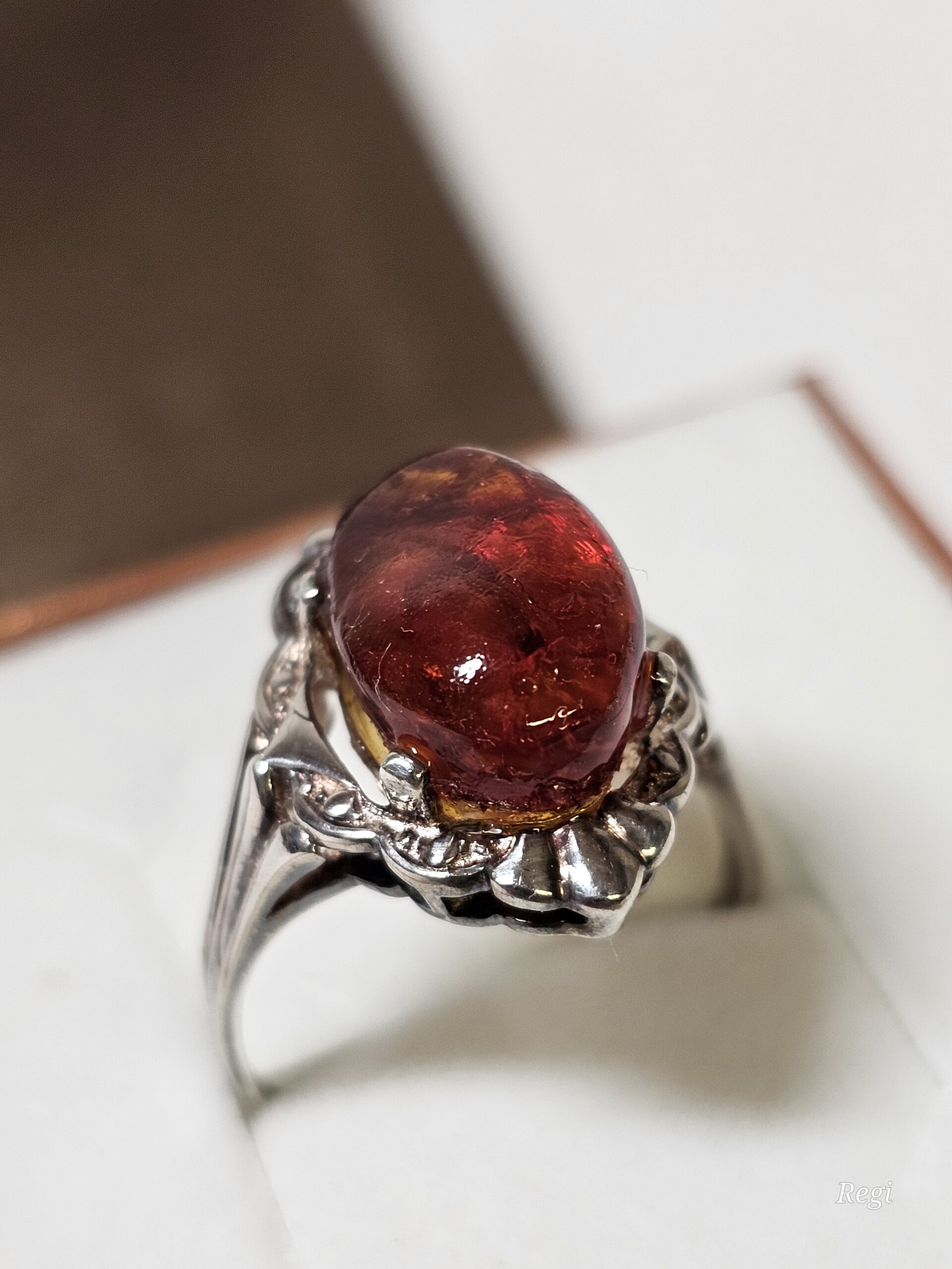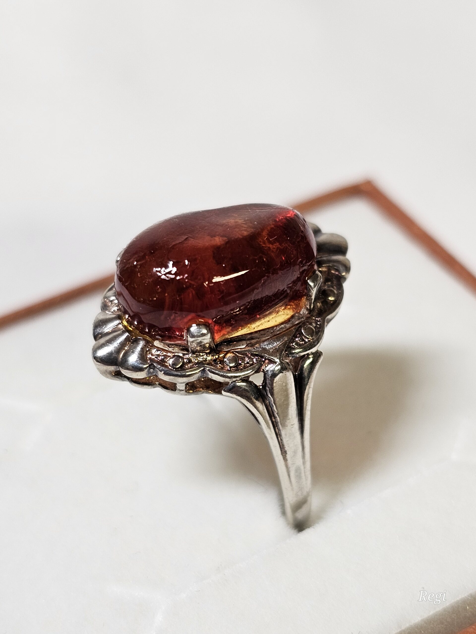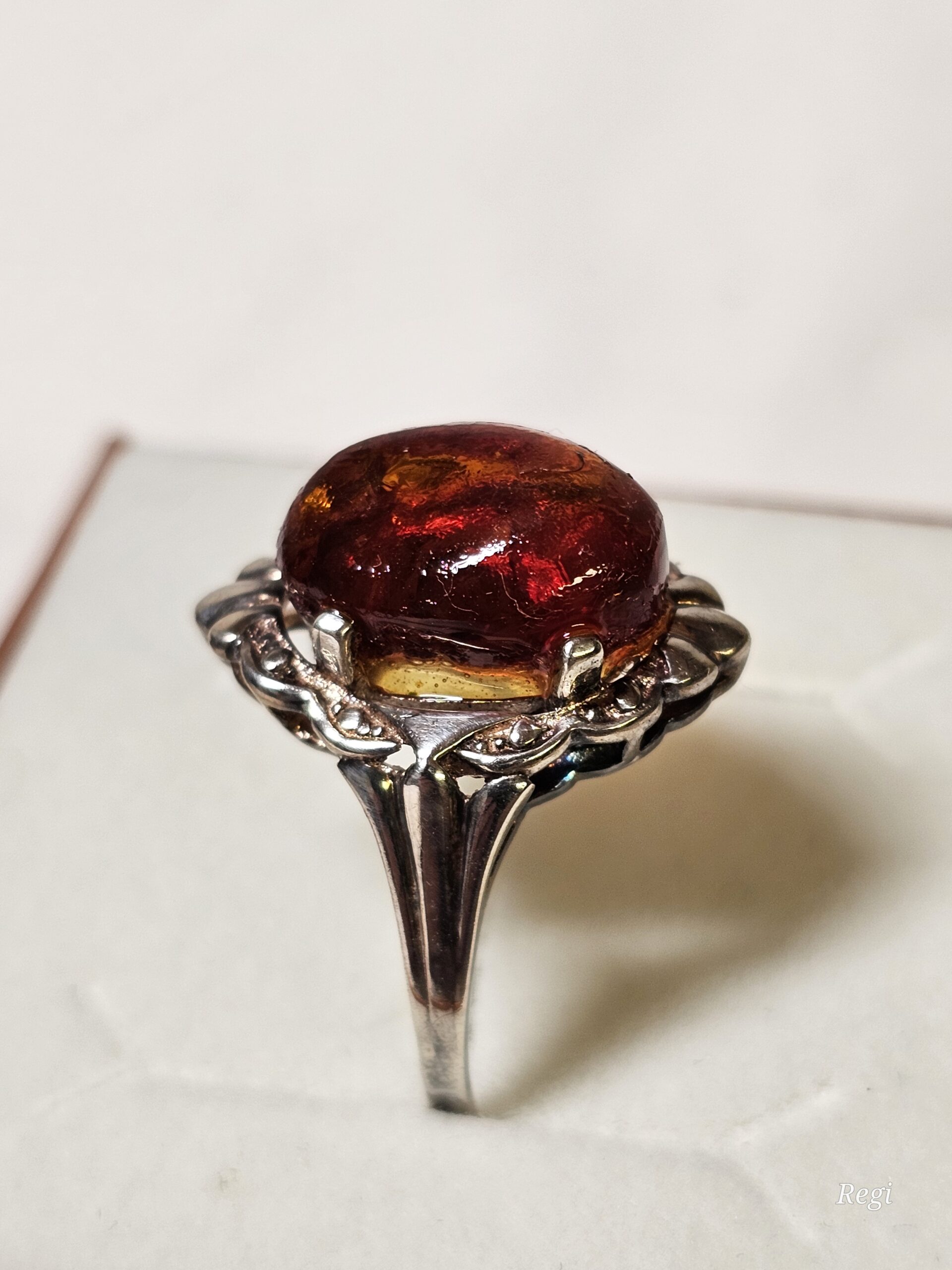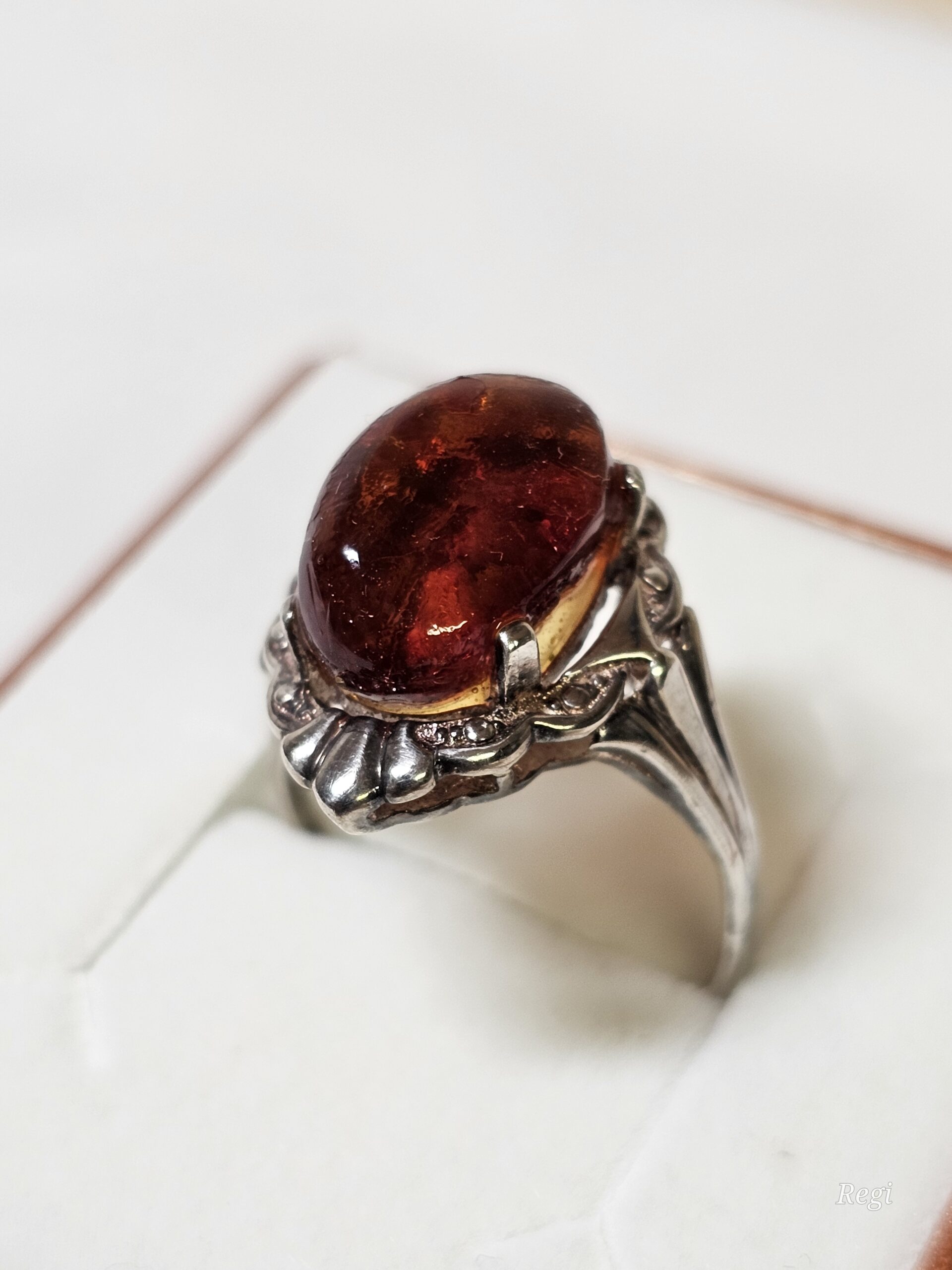 Shabby Vintage Ring Silber 835 mit einem hübschen Bernstein.