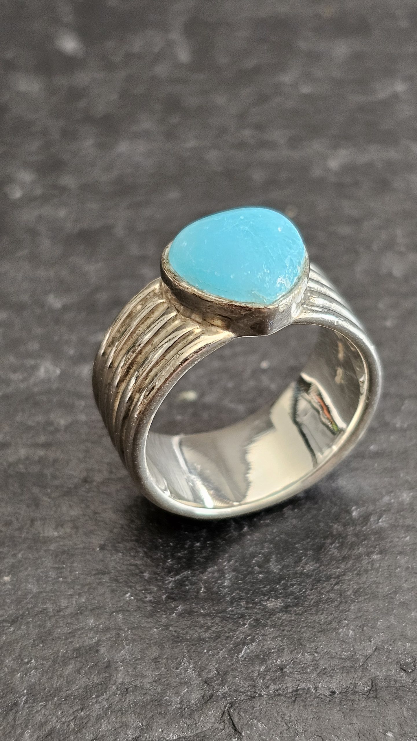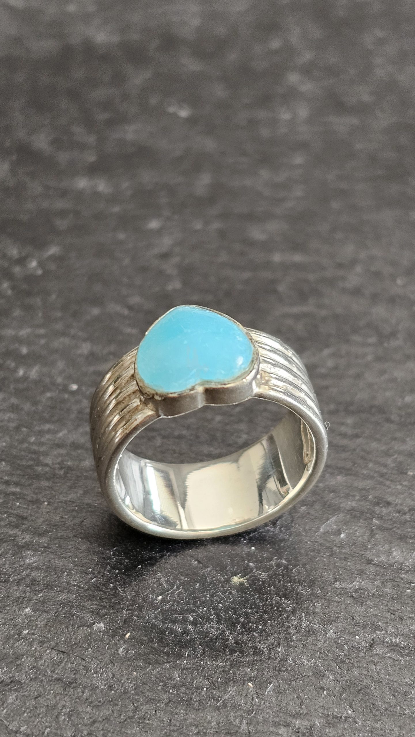 19 mm Silberring Ring KLD Silber 925 Chalcedon Herz blau Vintage elegant SR1137