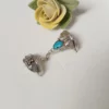 Doppelring Set mit einem Kettchen verbunden. Der eine Ring ist mit einem schönen Feder-Design gestaltet und hat die Größe 18 mm. Der größere ist ebenfalls mit einen Federdesign gestaltet und ist zusätzlich noch mit einem Türkis-Stein geschmückt. Ein tolle Silberschmiede Kunst – Handarbeit. Aus Sterling-Silber gefertigt. Eine aufwendige Arbeit. Tolles Unikat!