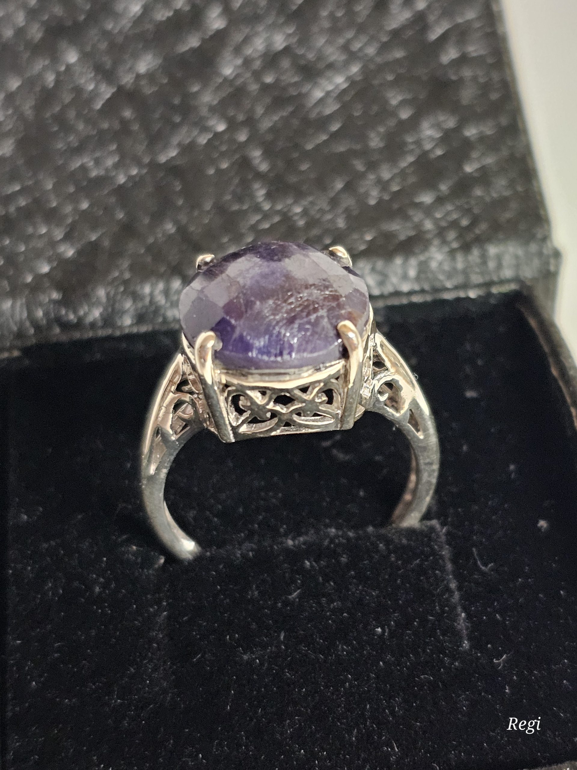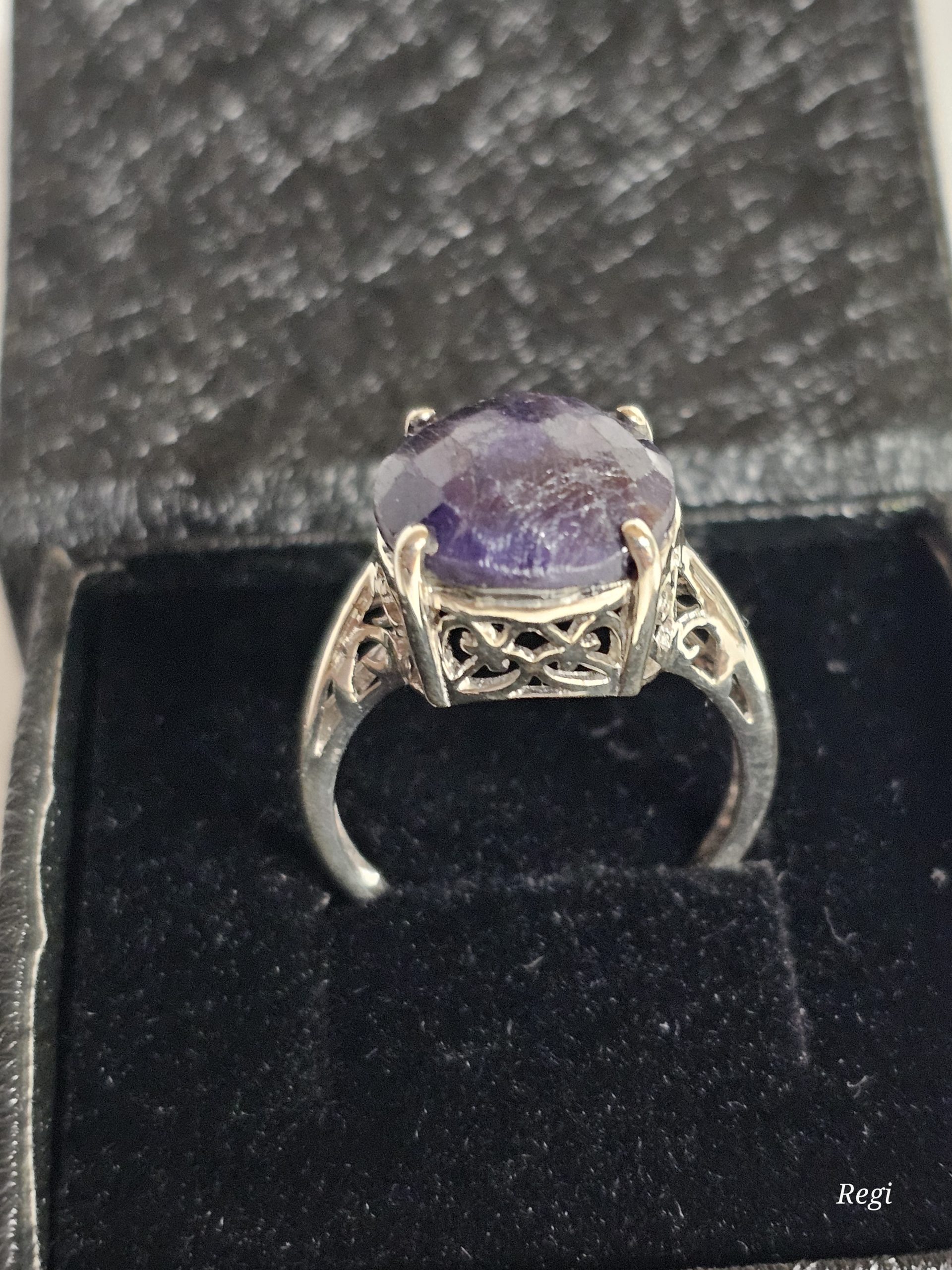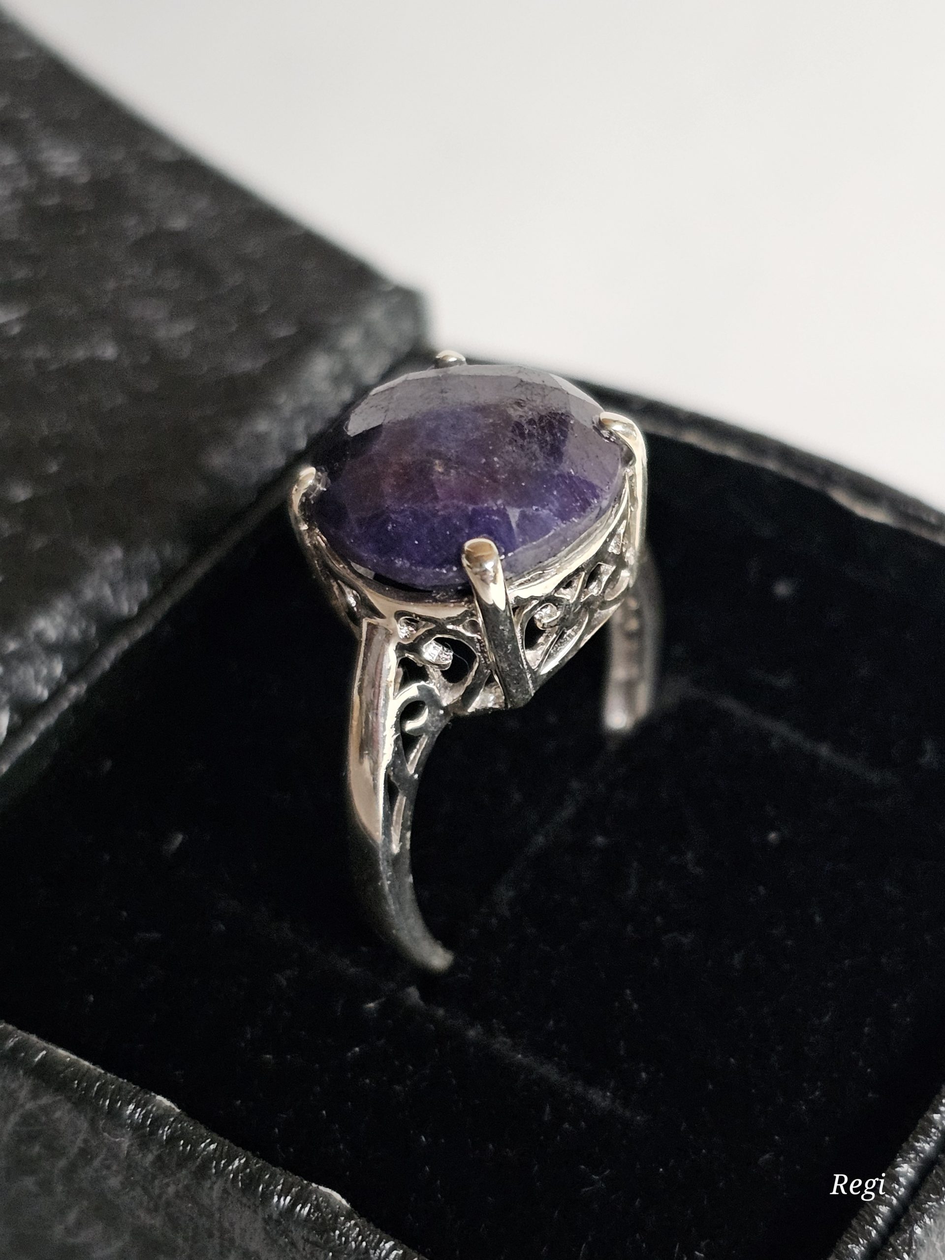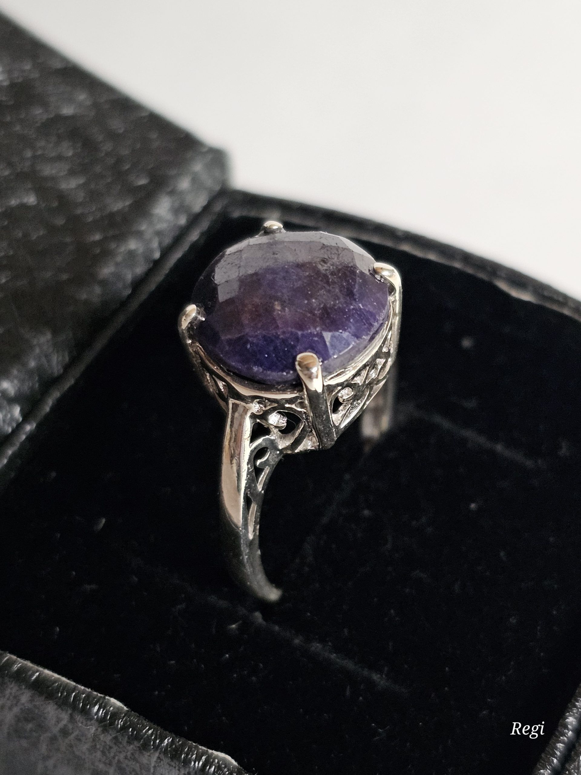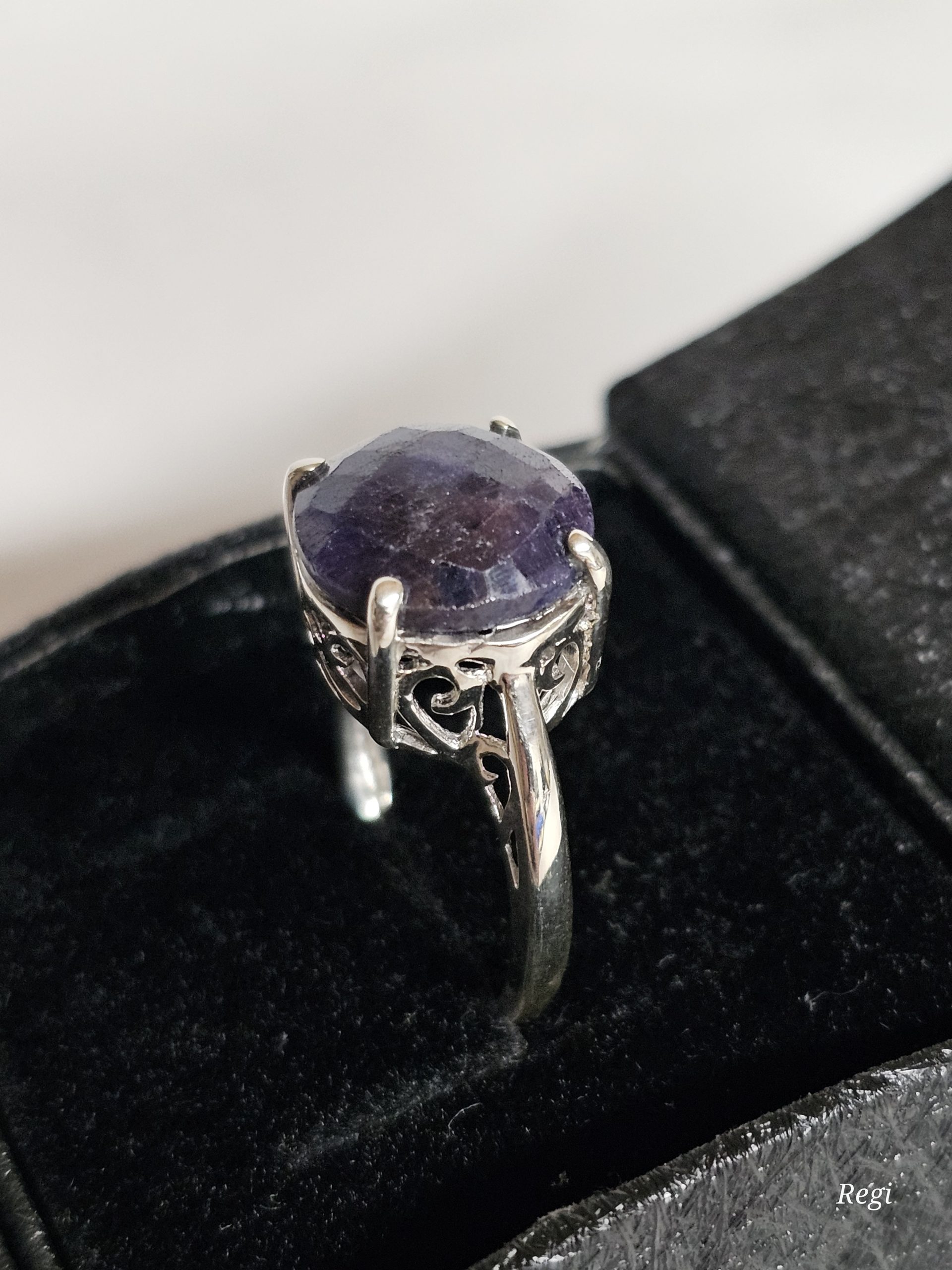 Nostalgischer Vintage-Ring Silber 925 mit einem Sodalith besetzt. Der Stein ist in einem Facettenschliff gestaltet, der Ringkopf trägt insgesamt ein wunderschönes Design.