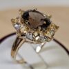 19,1 mm Nostalgischer Ring Gold 375 teilplatiniert Rauchquarz Citrin Diamantsteinchen Vintage elegant GR360