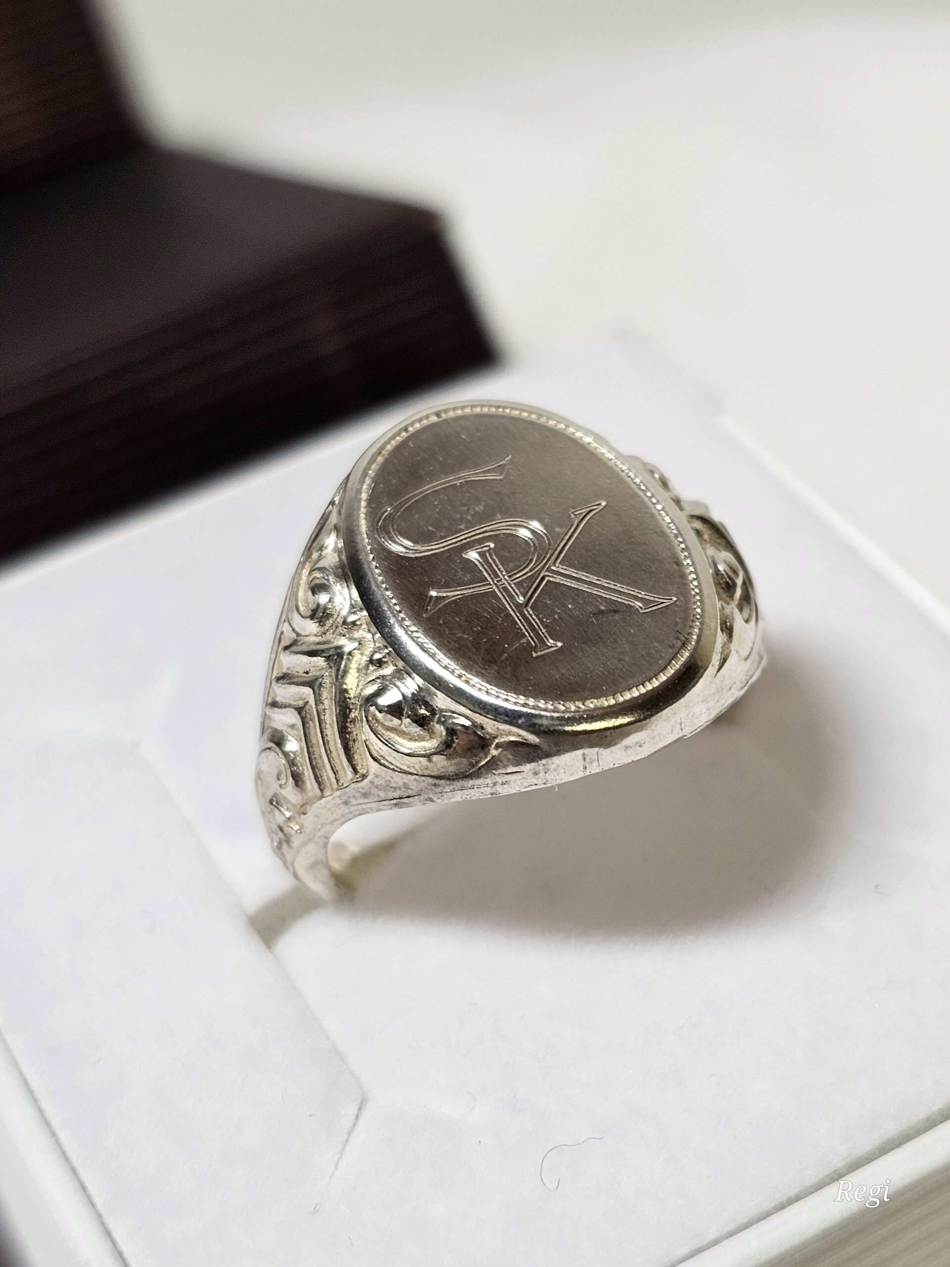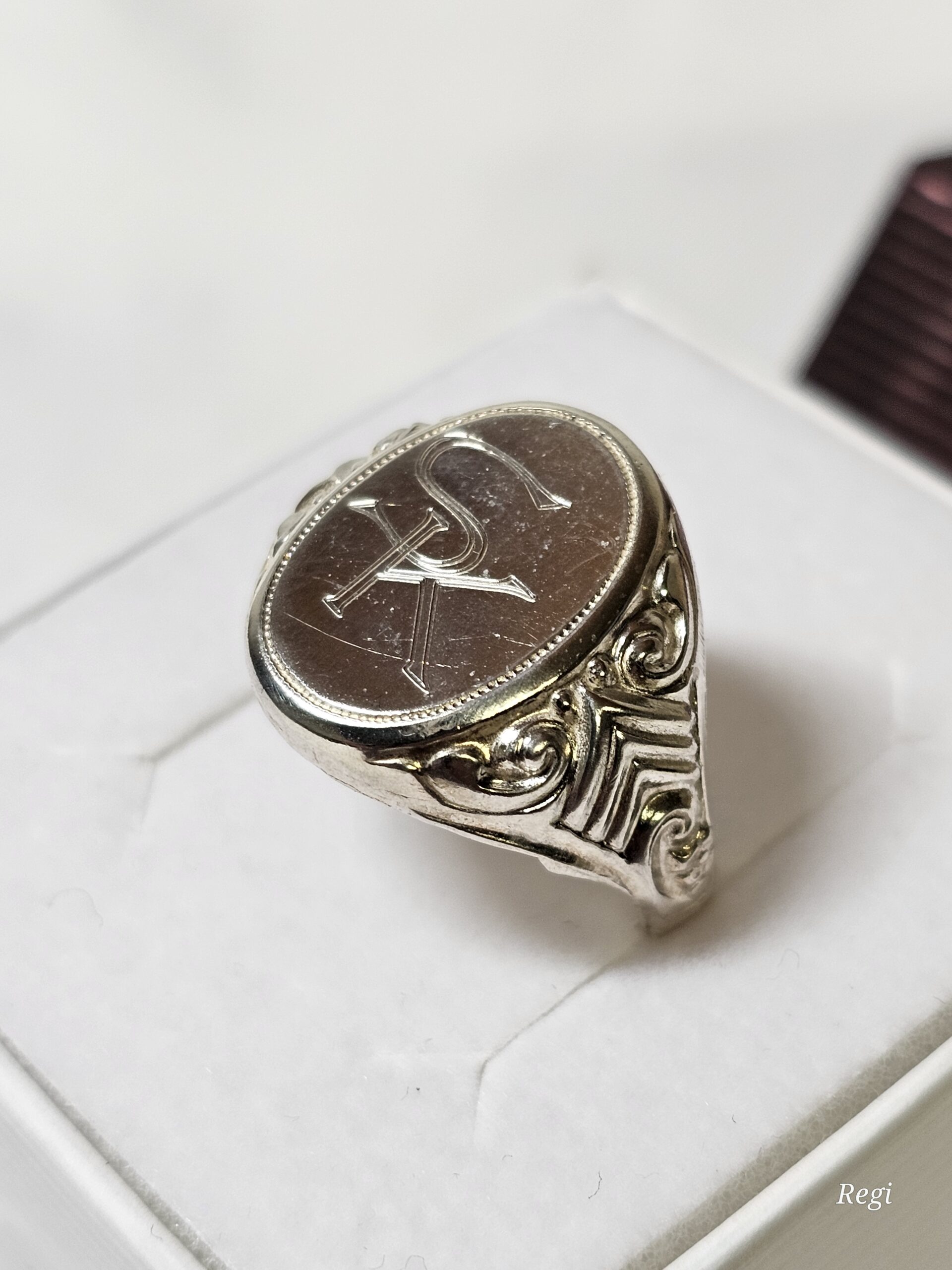Sehr schöner Siegelring Silber 835 mit den Initialen „SK“ auf der Siegelplatte.