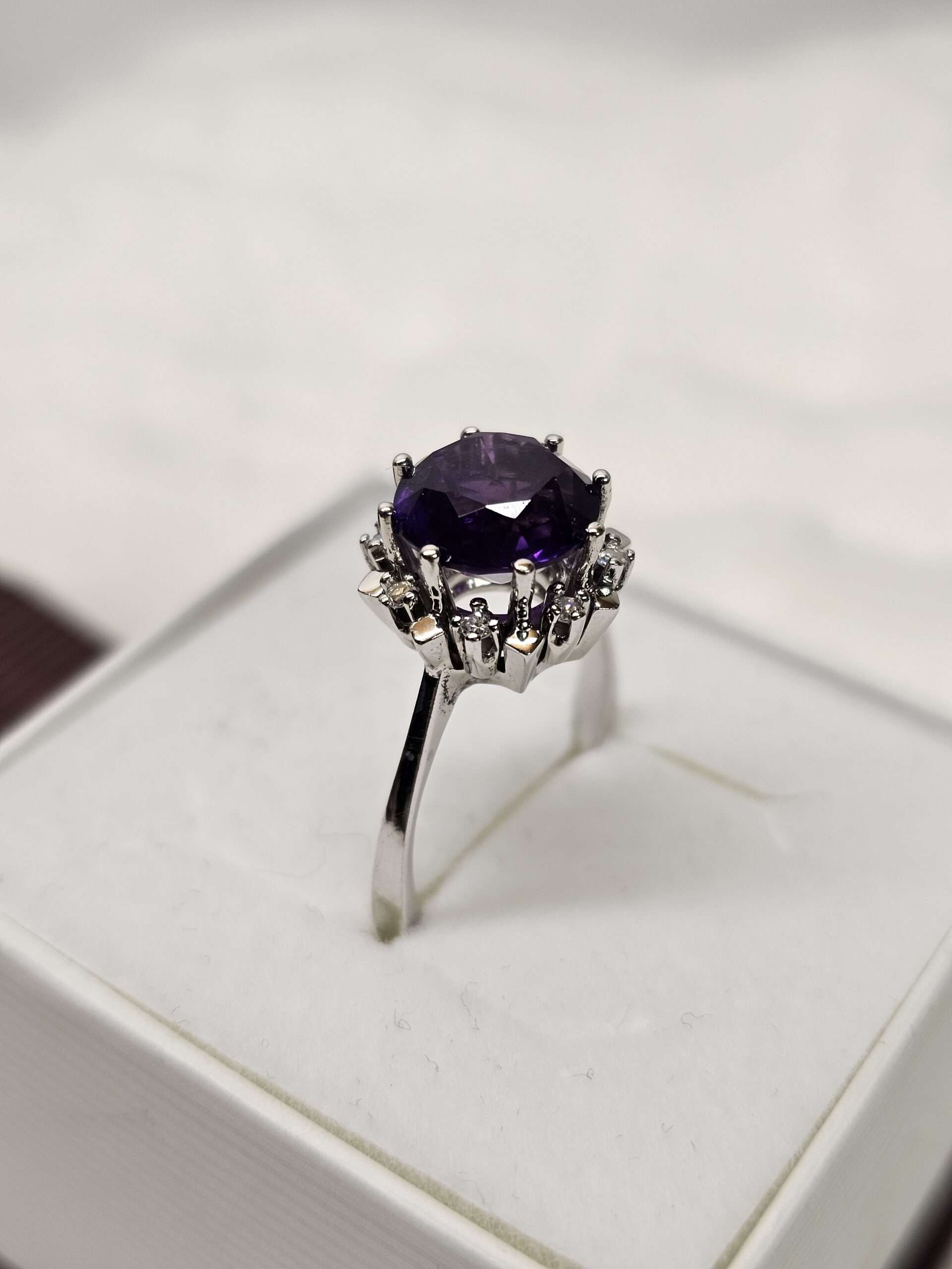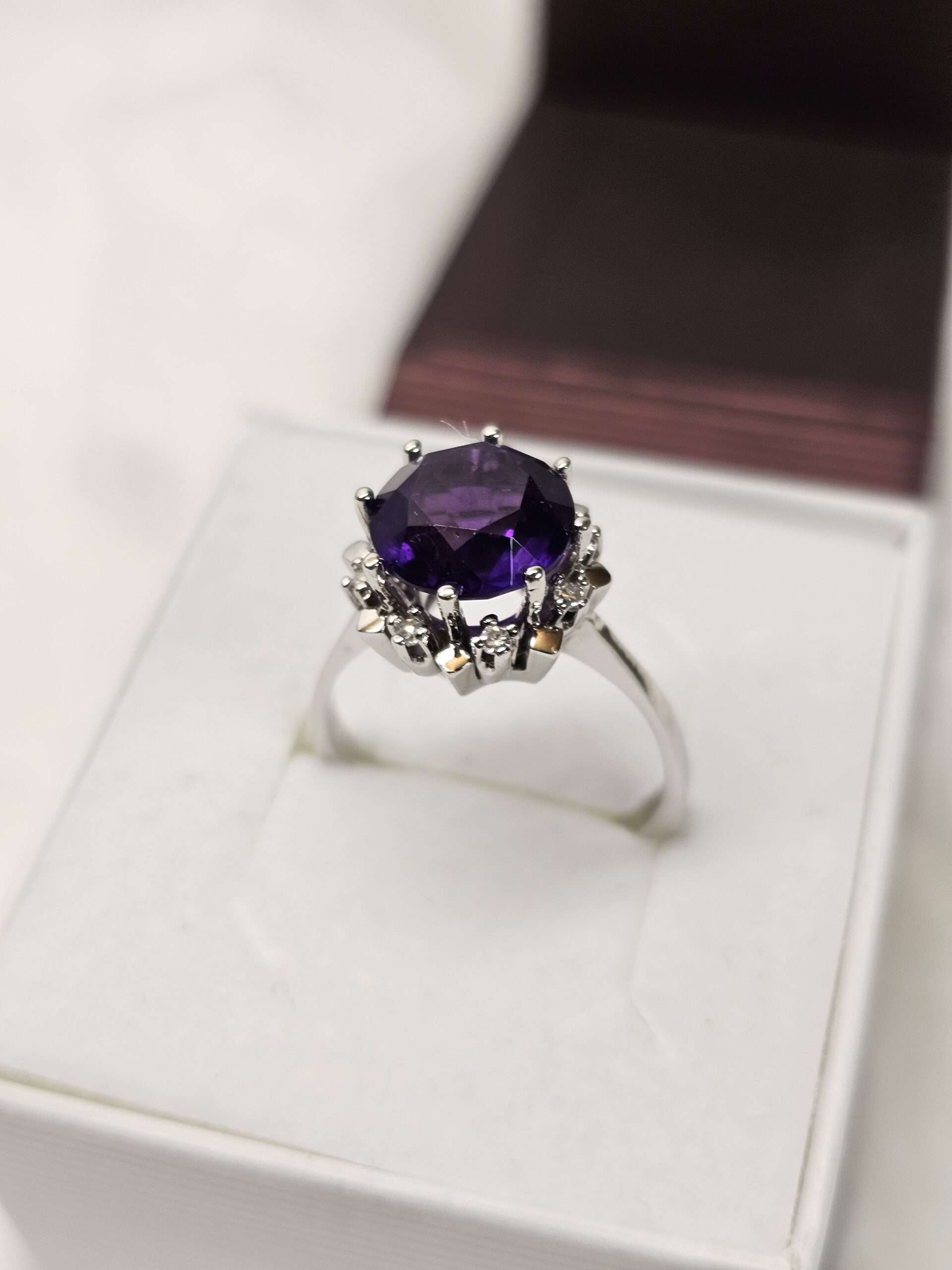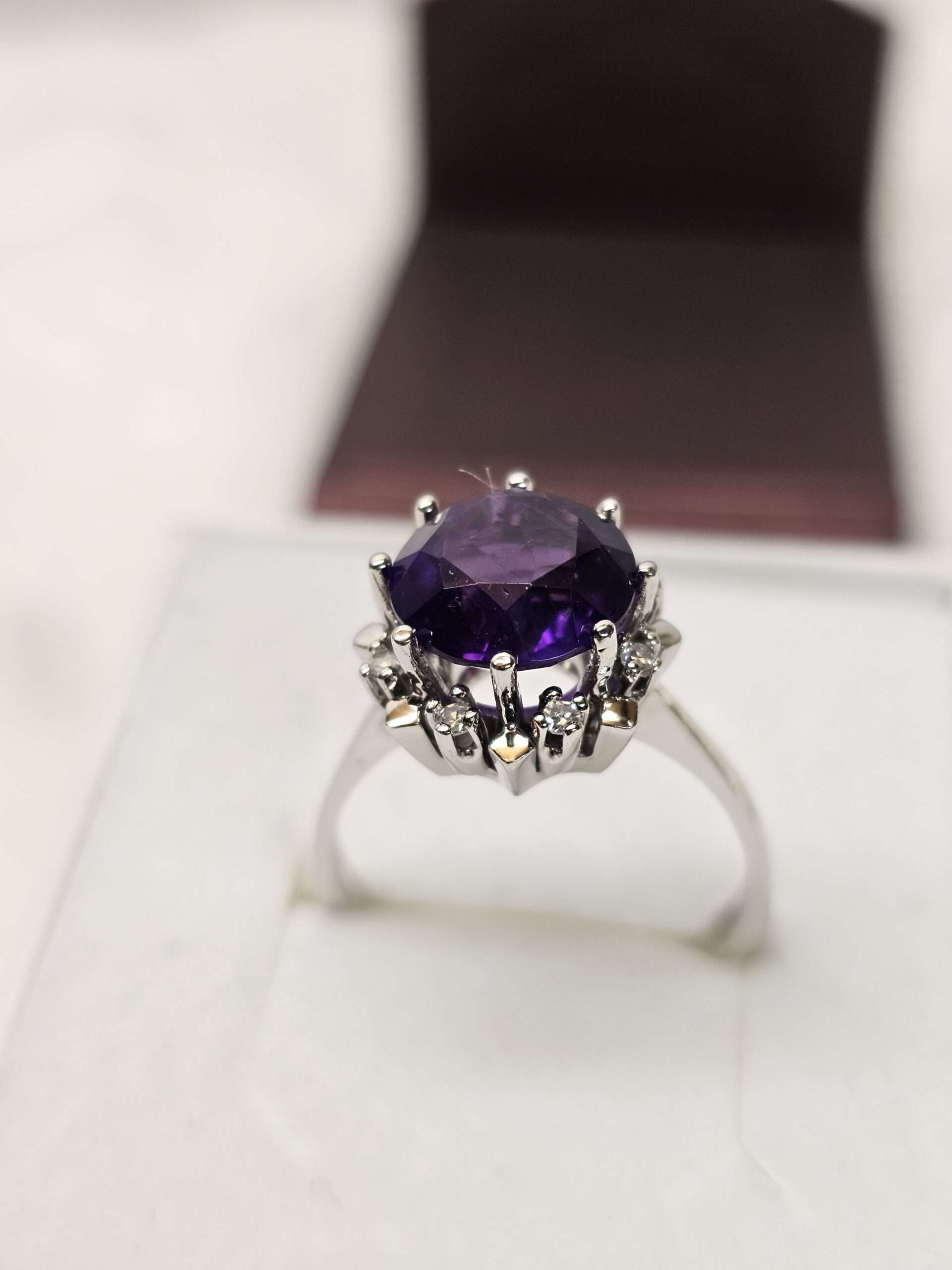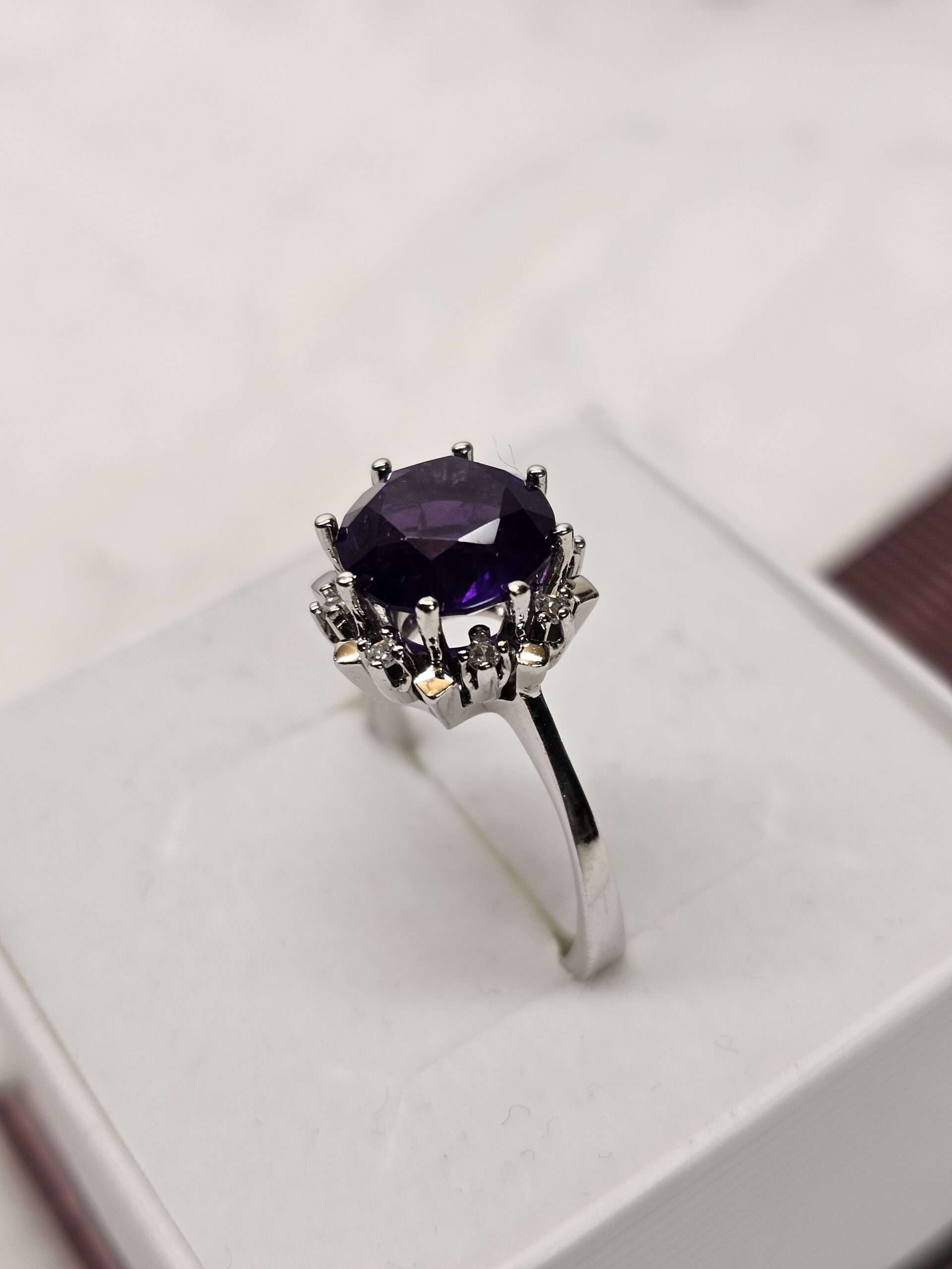 Wunderschöner Ring aus 585 Weißgold. Ein traumhaftes Vintage-Schmuckstück mittig mit einem Amethyst besetzt und mit 8 Stck. kleinen Diamantsteinchen geschmückt.