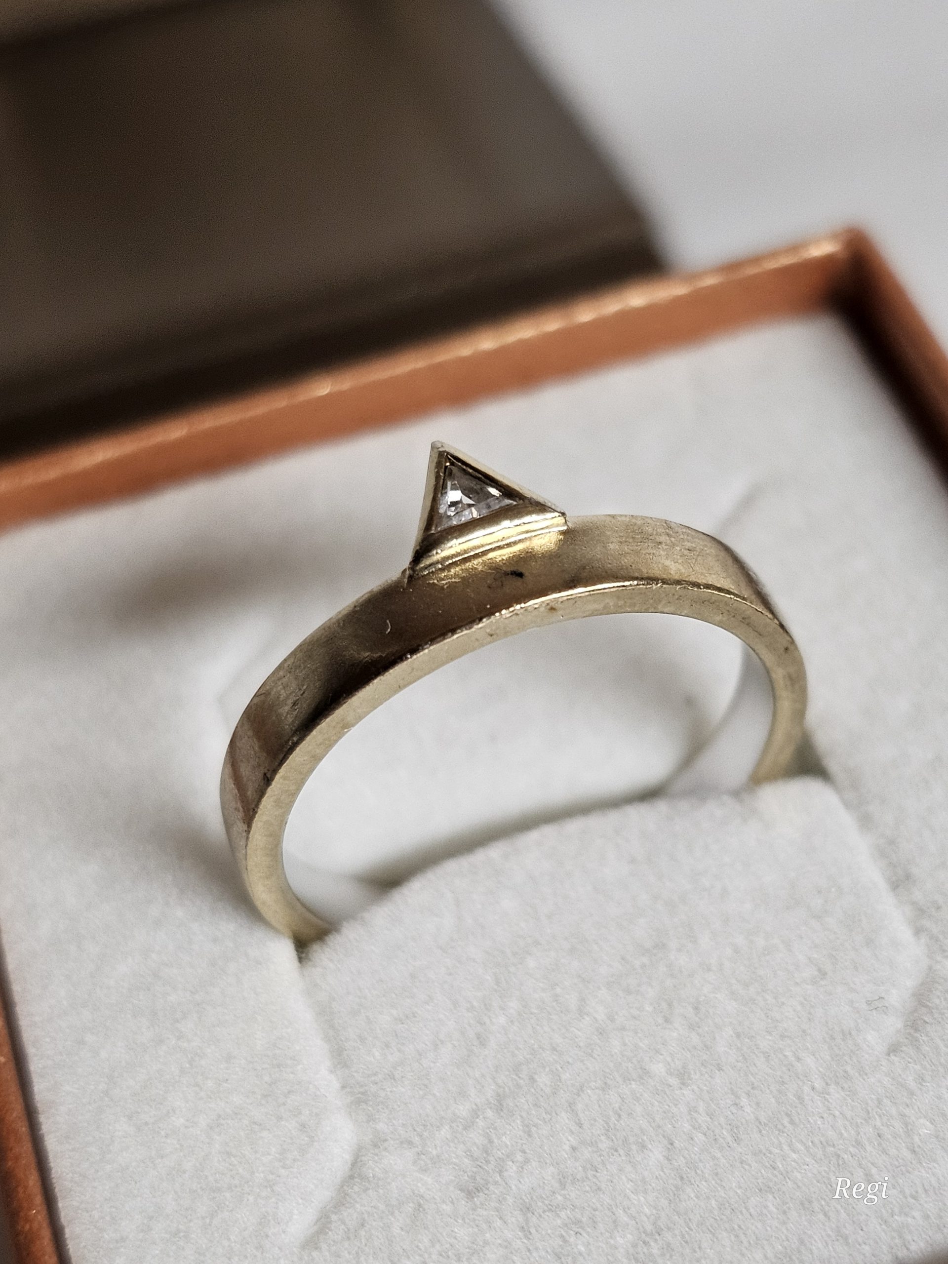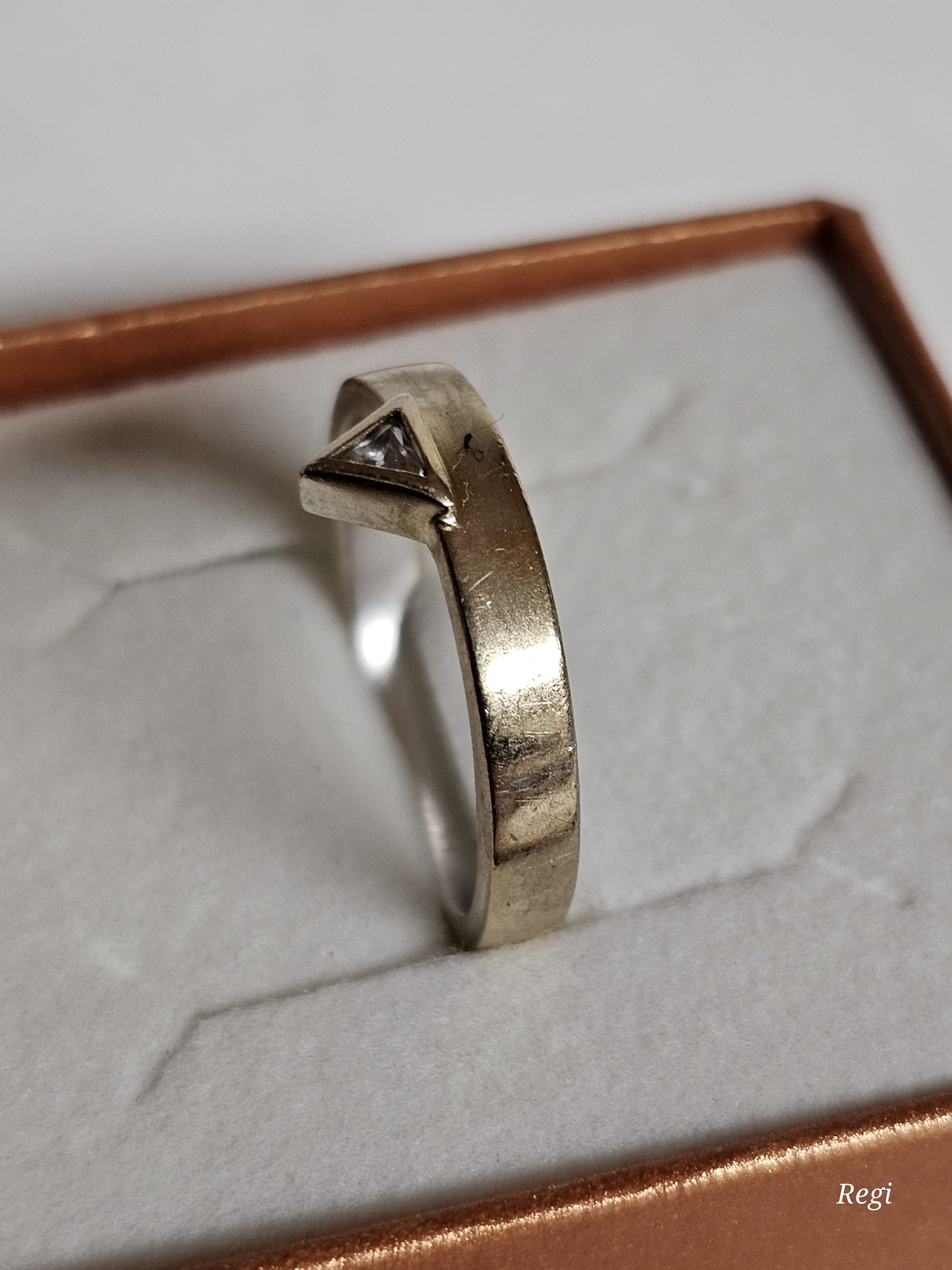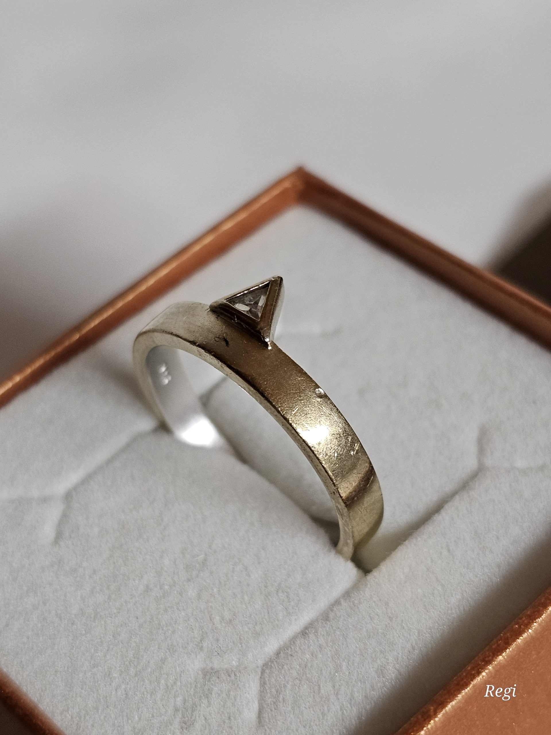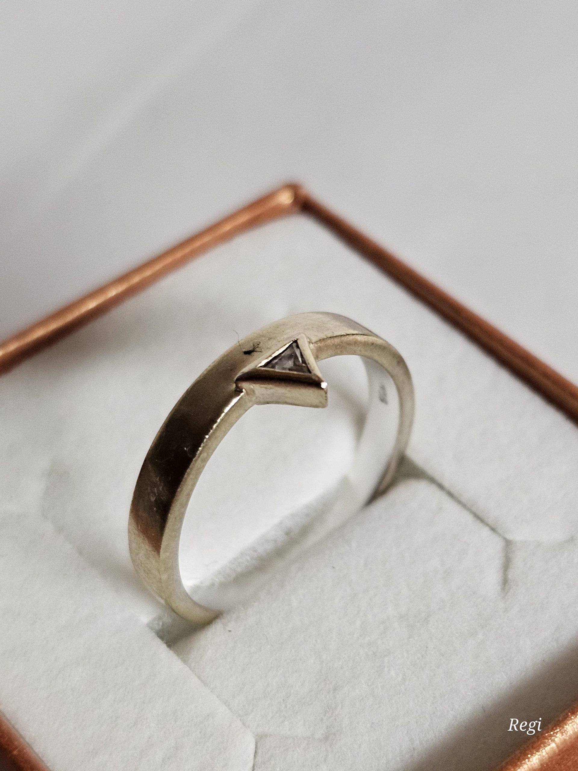 Ring Silber 925 vergoldet. Stylisch chic und mit einem klaren Kristall Dreieck besetzt.