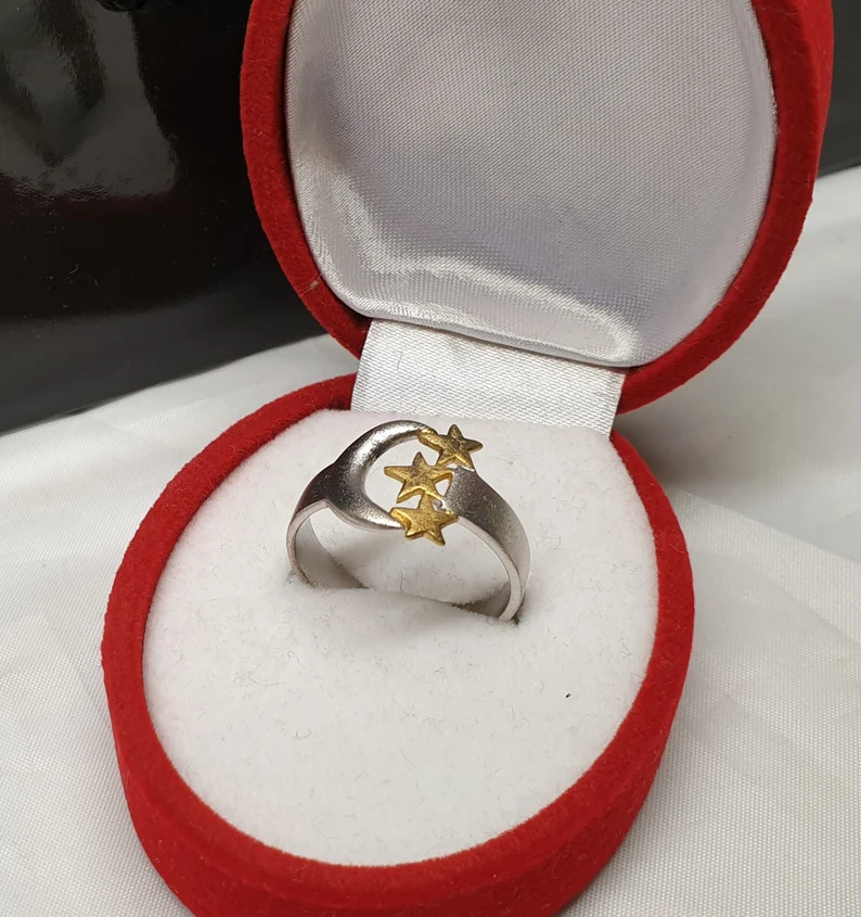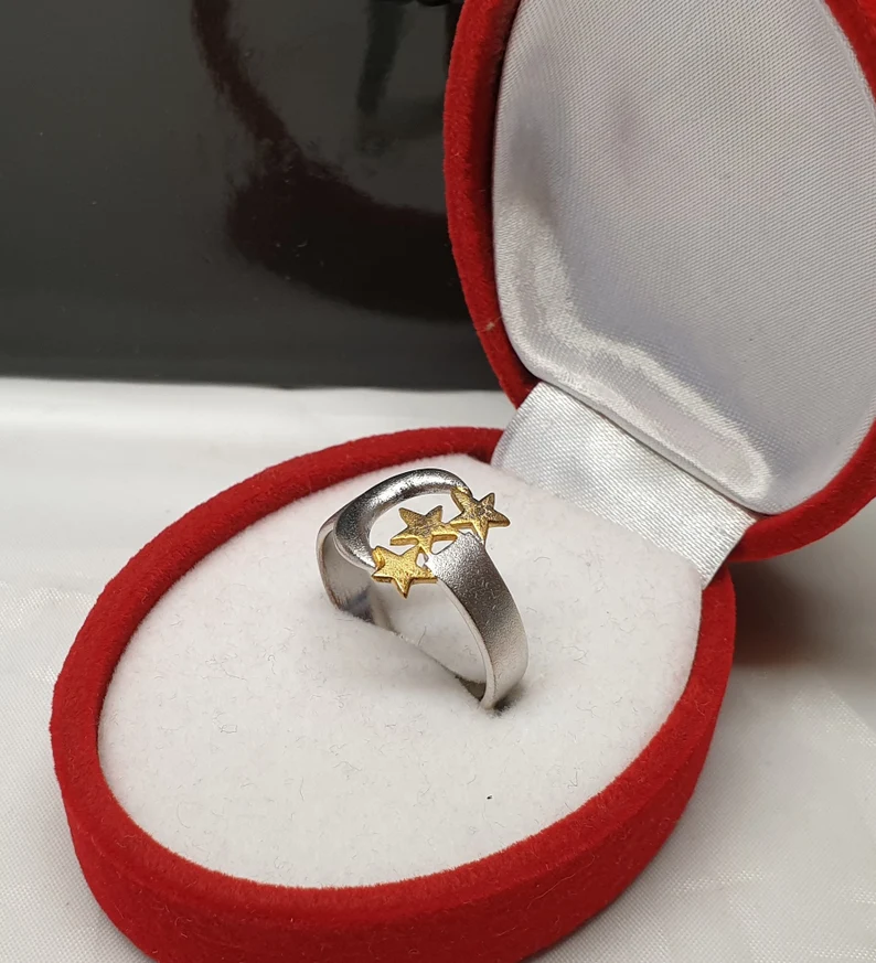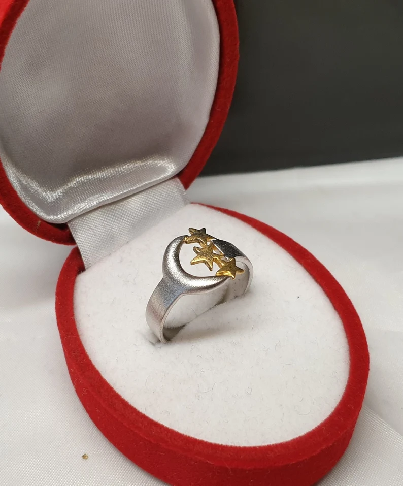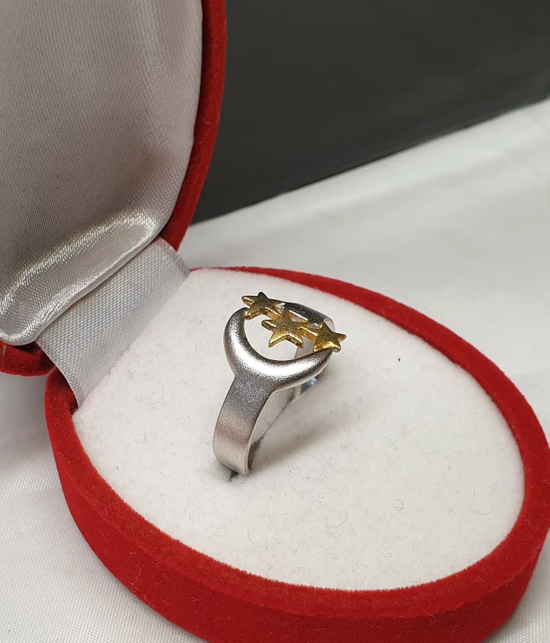 19,7 mm Ring Silberring Mond und Sterne Silber 925 teilvergoldet matt Vintage edel durchbrochenes Design SR1566