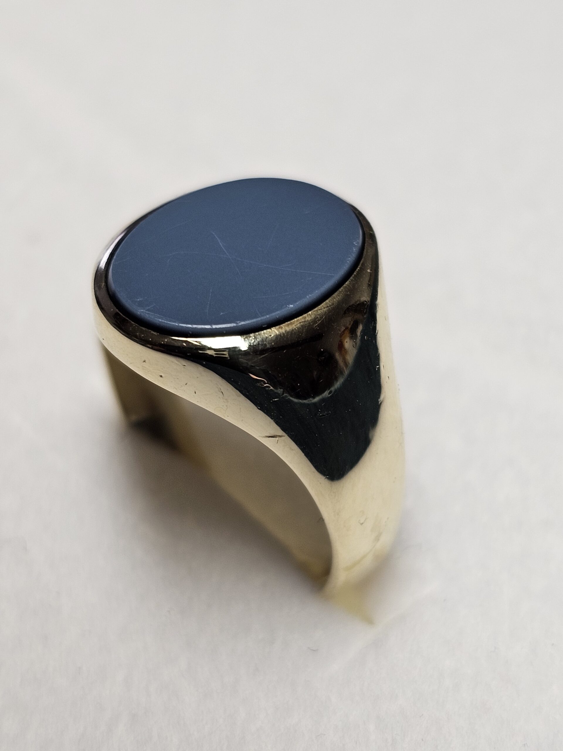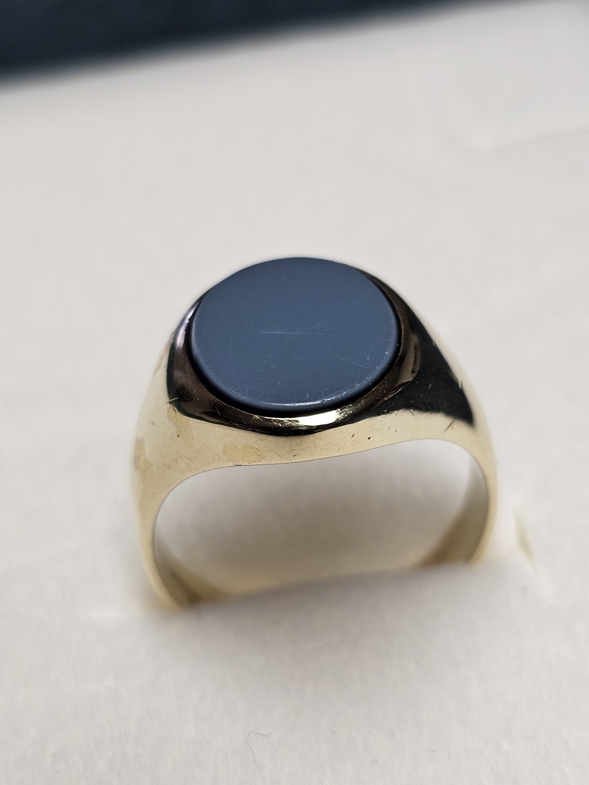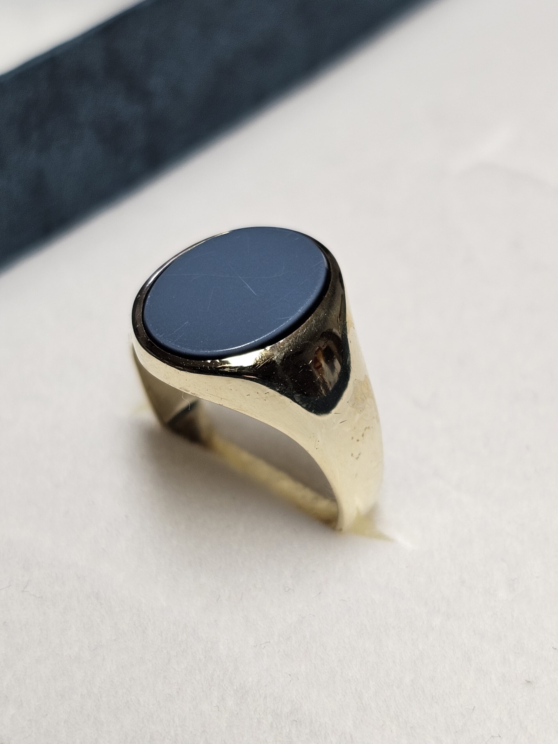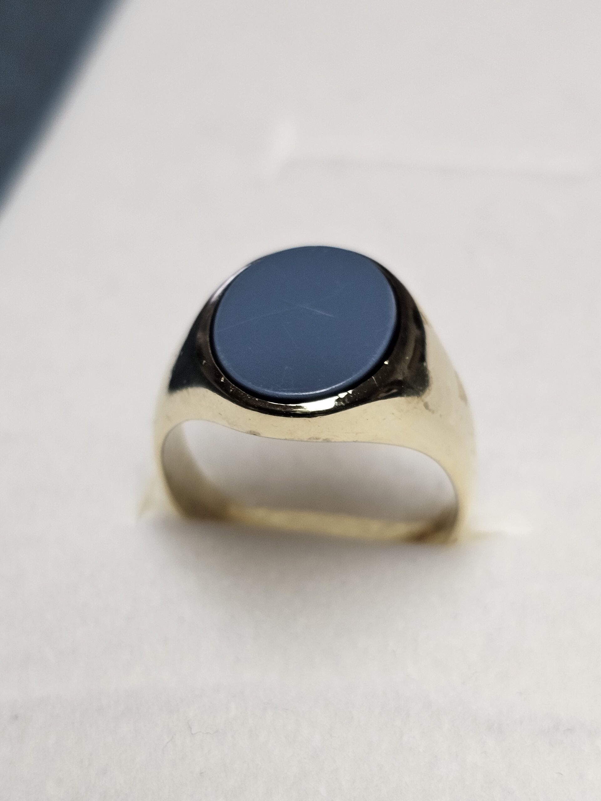 Nostalgischer Siegelring / Goldring Gold 585 mit einem Achat Lagenstein besetzt.