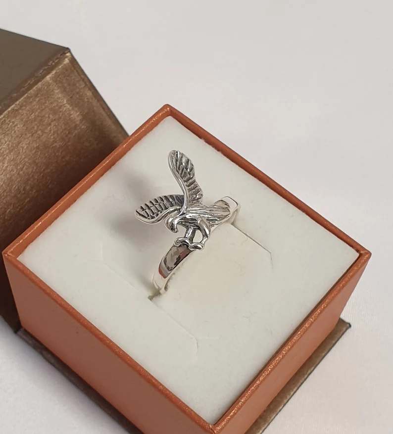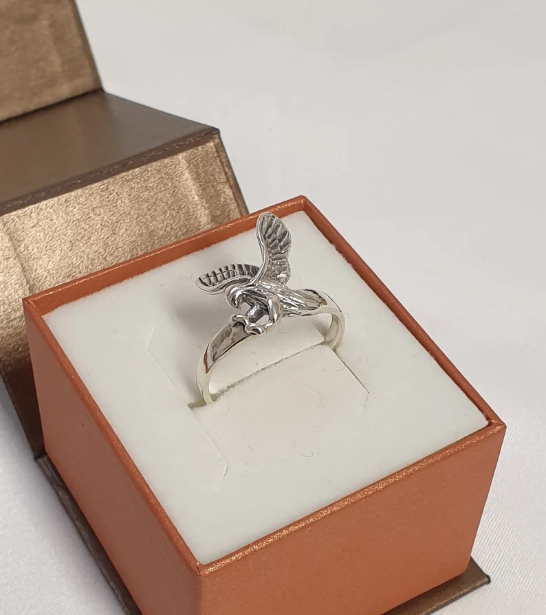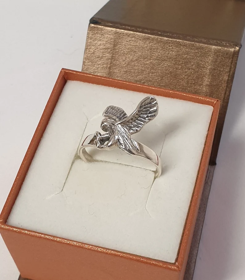 Toller Silberring aus Silber 925. Auf den Ringkopf ist eine Adler gearbeitet.