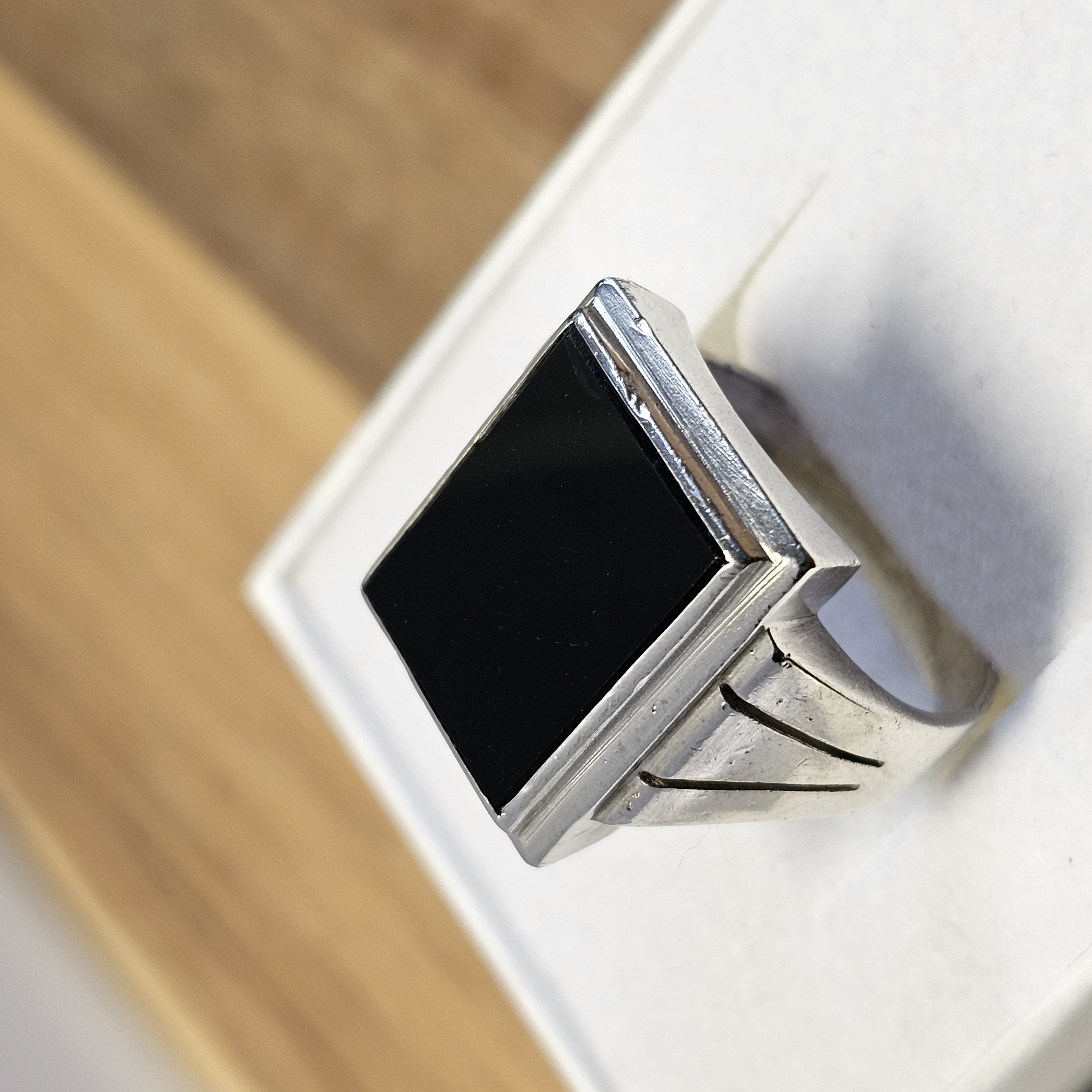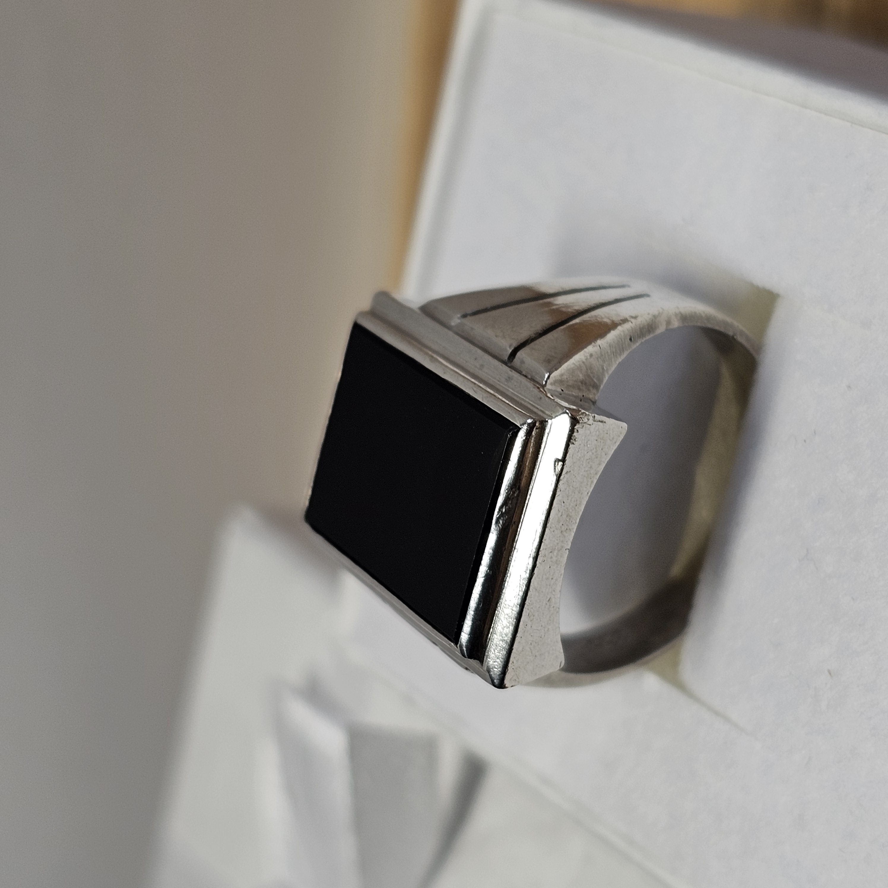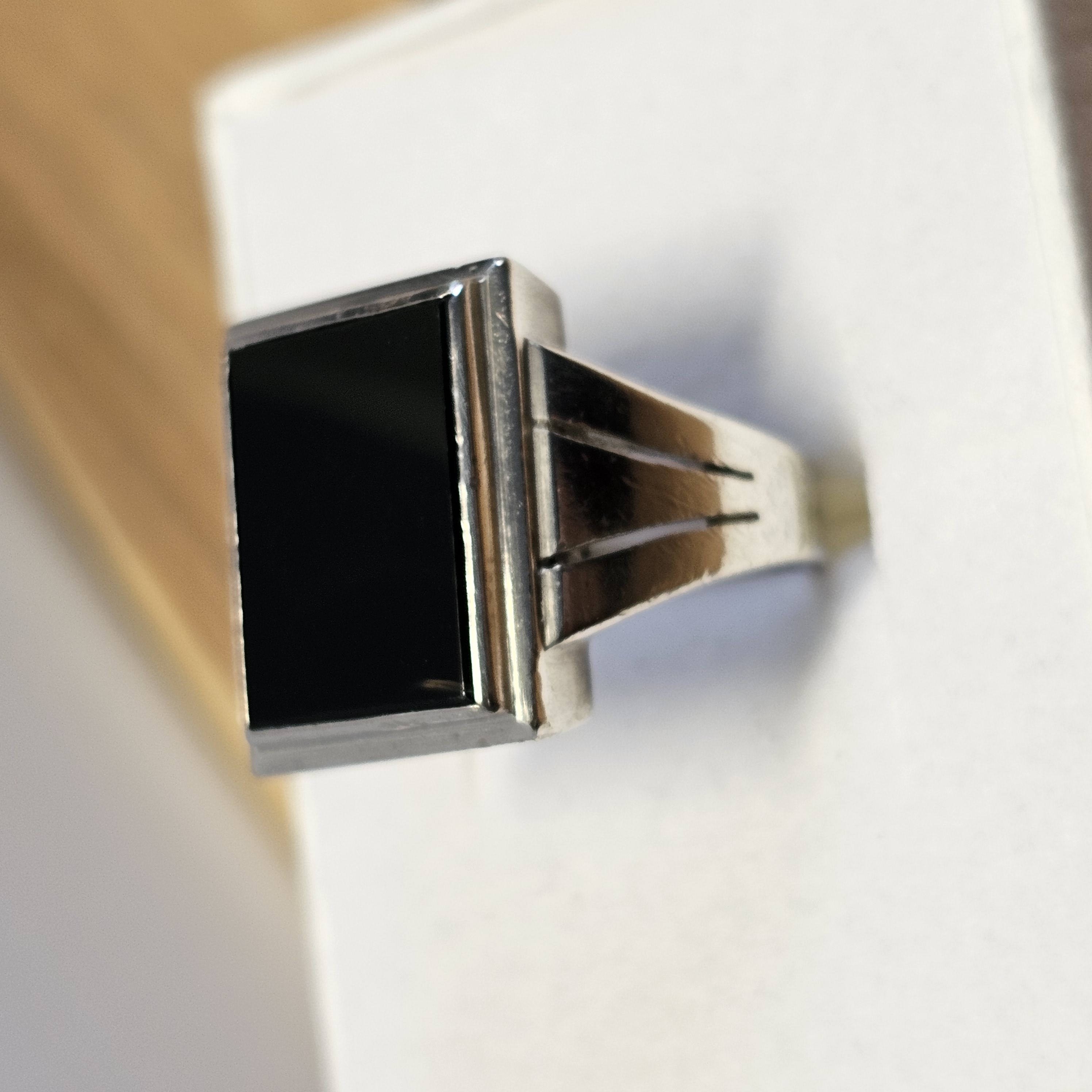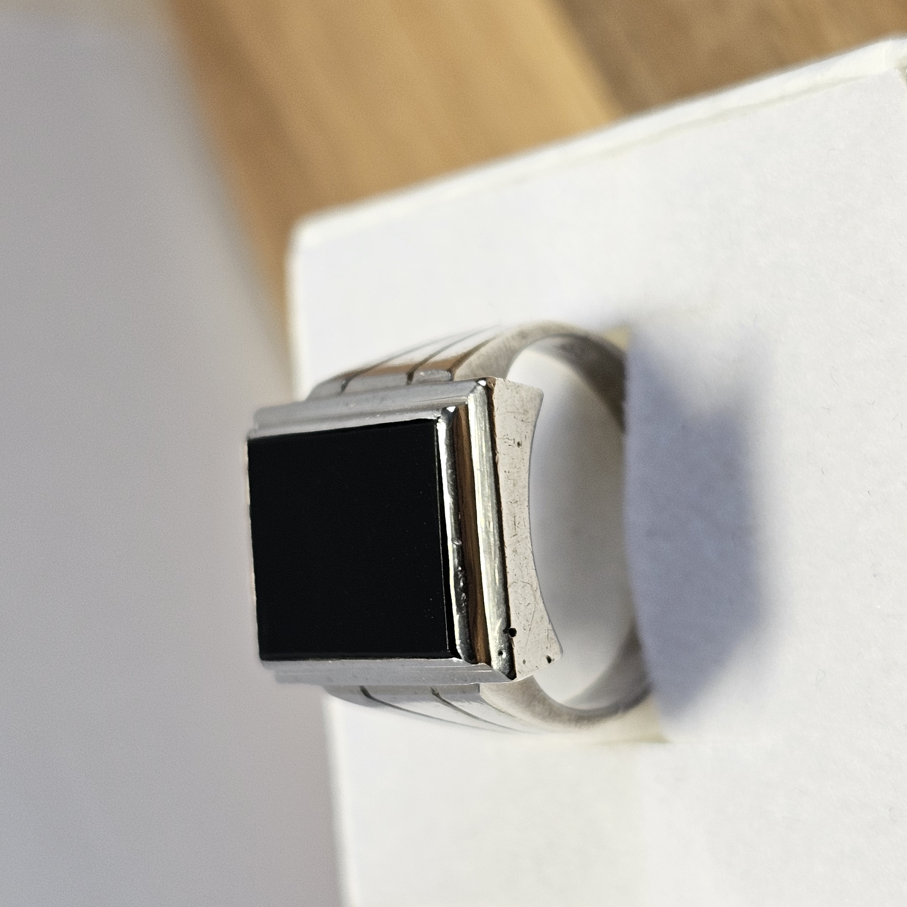 Nostalgischer Ring Silber 835 mit einem schwarzen Onyx.