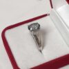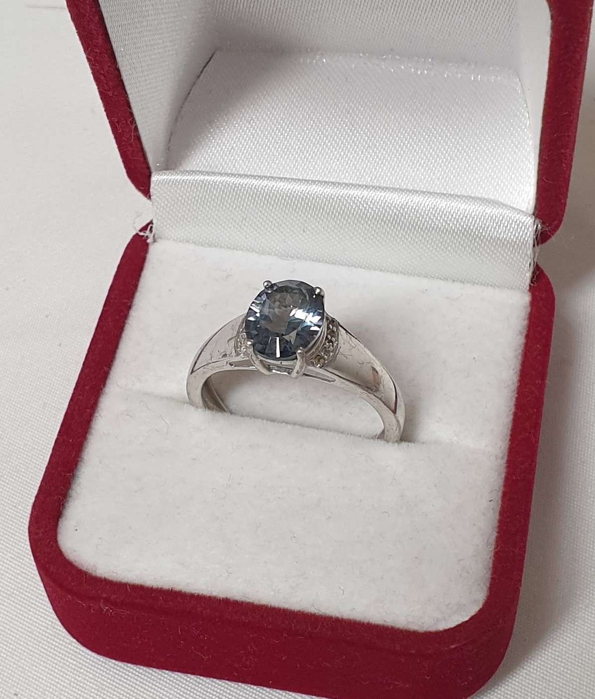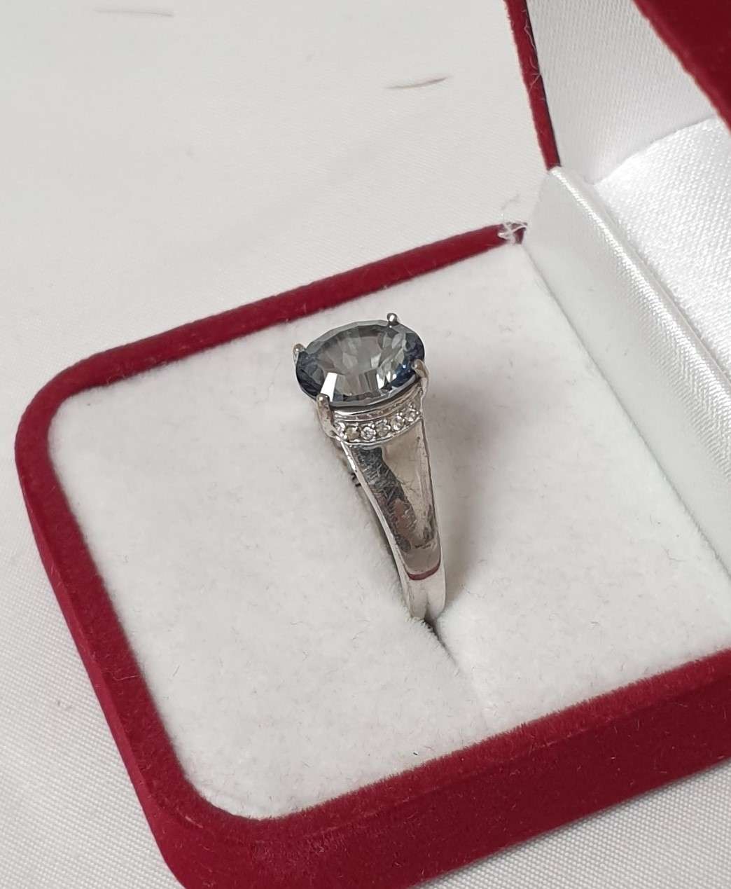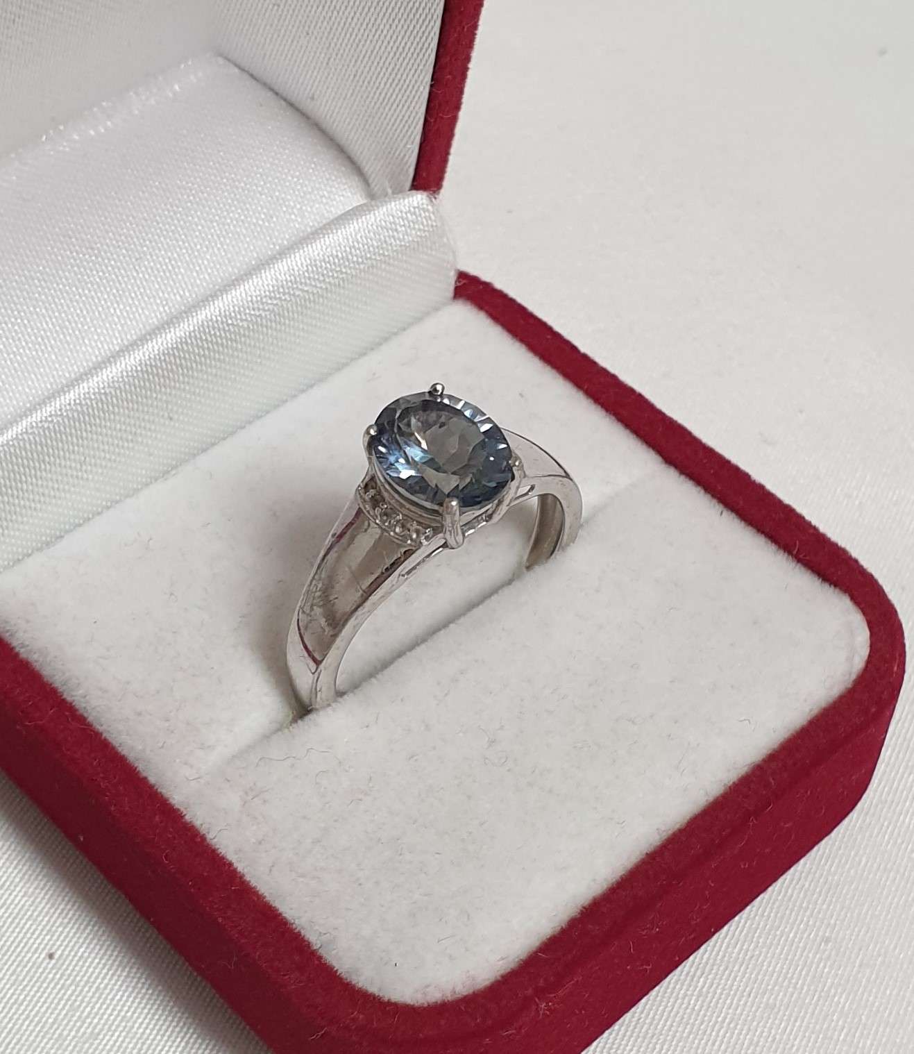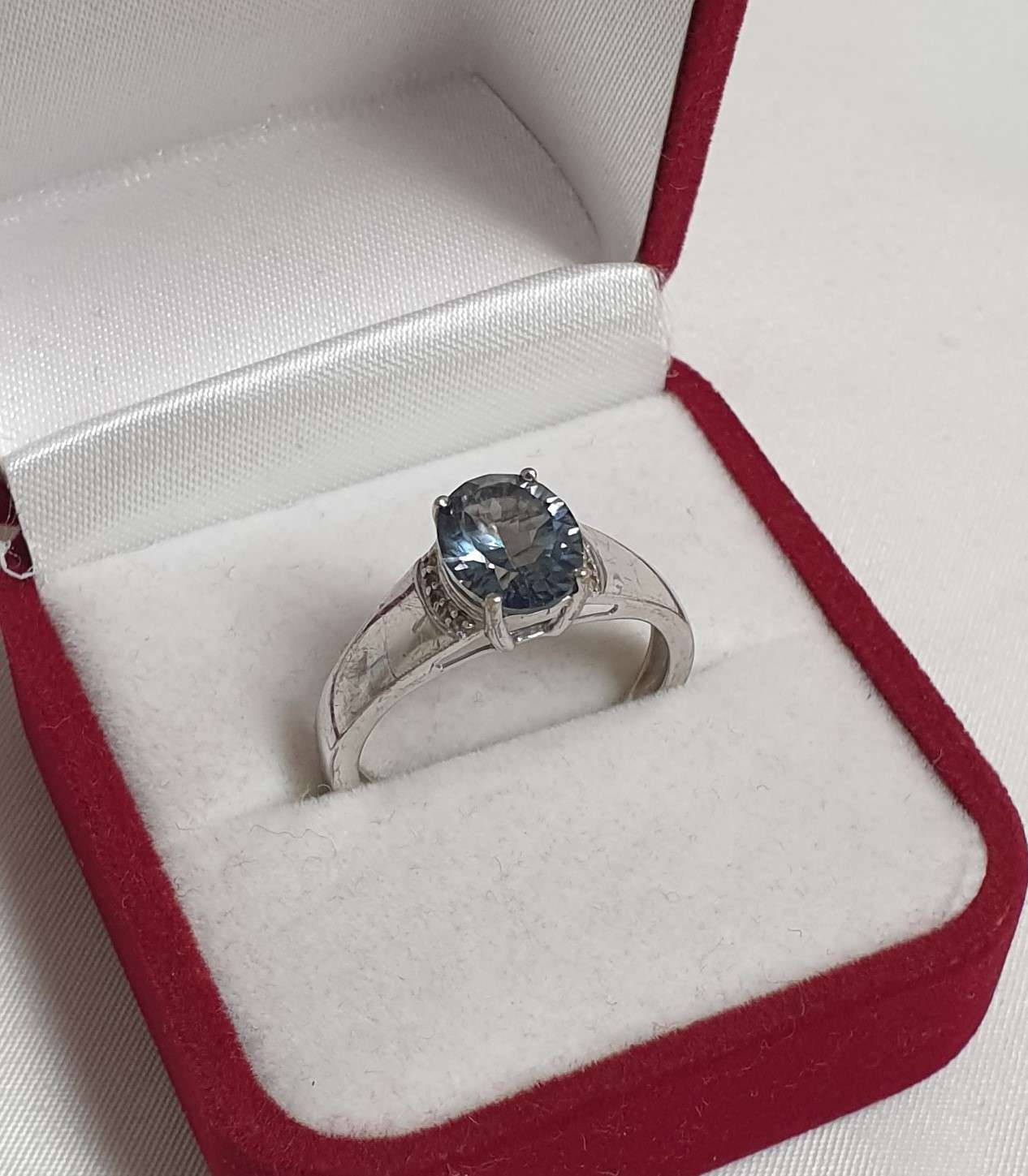 Toller Ring aus Silber 925 hergestellt, mittig ist ein blauer Kristall gefasst und links und rechts daneben sind kleine klare Kristallsteinchen gesetzt.