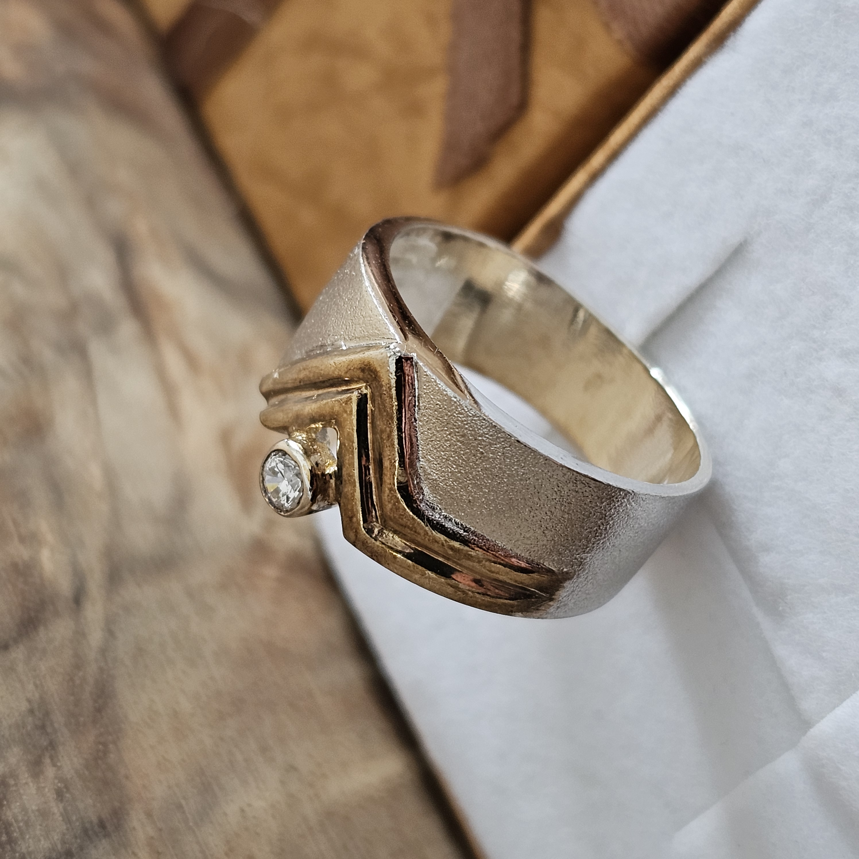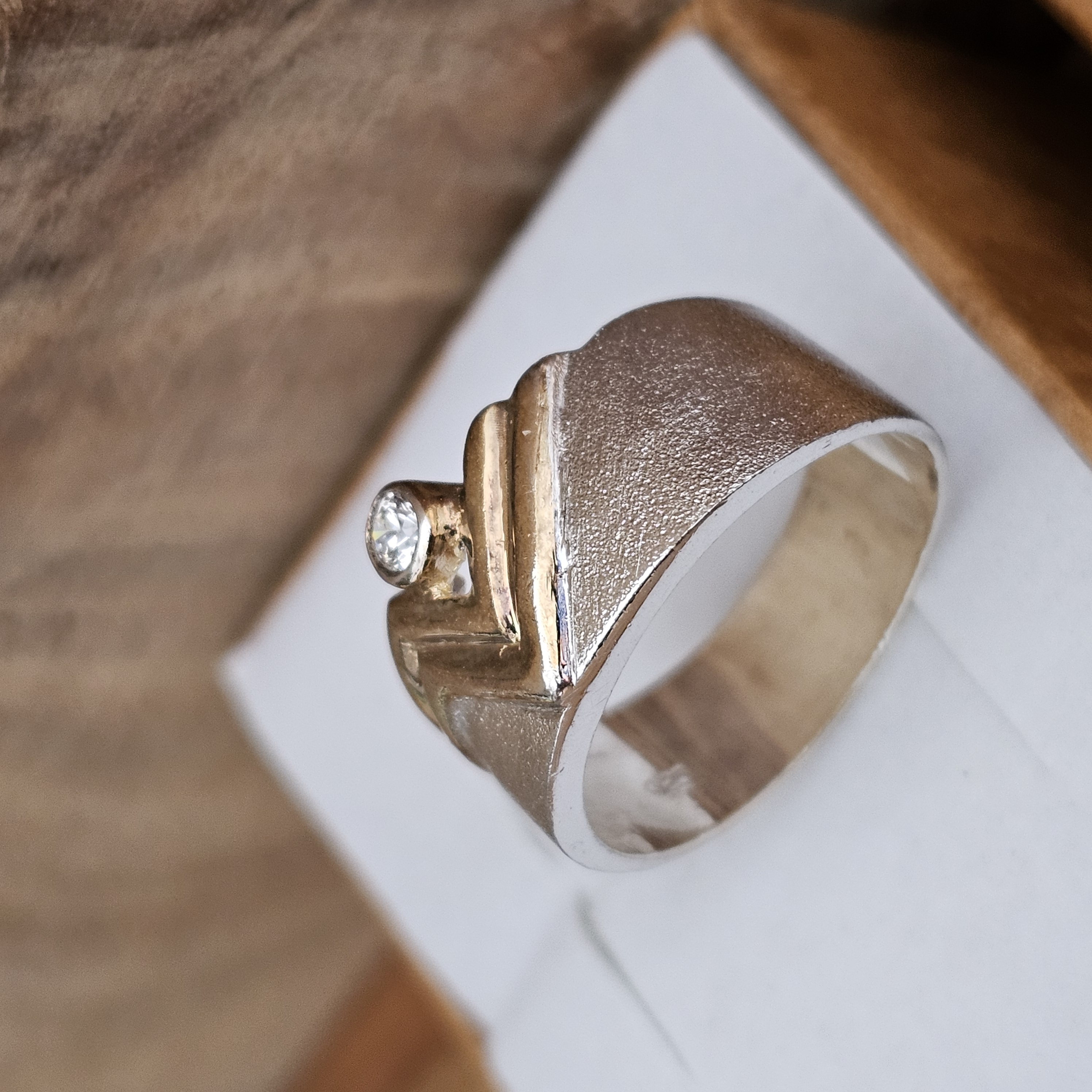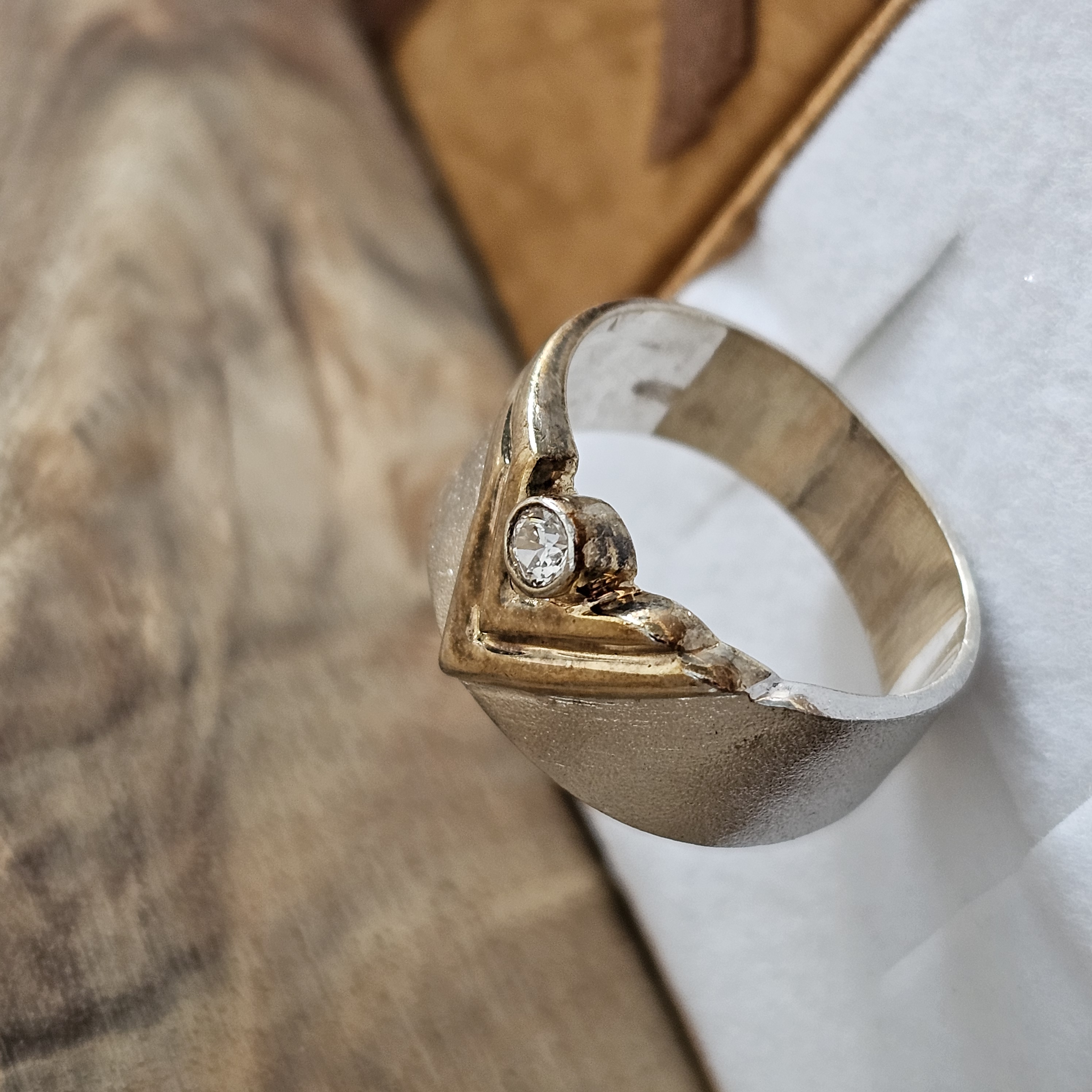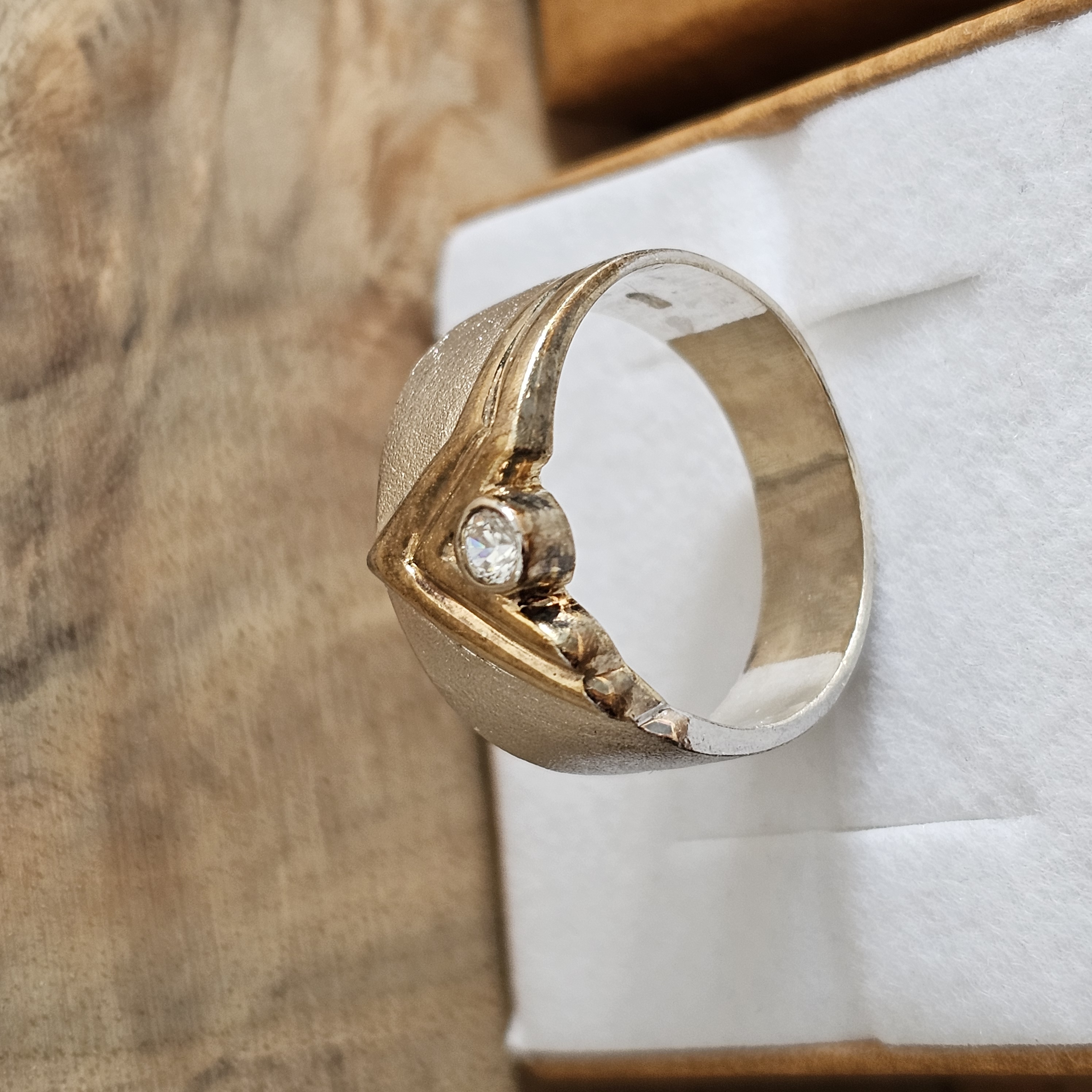 Edler Vintage Ring Silber 925 matt mit Teilvergoldungen auf dem Ringkopf.