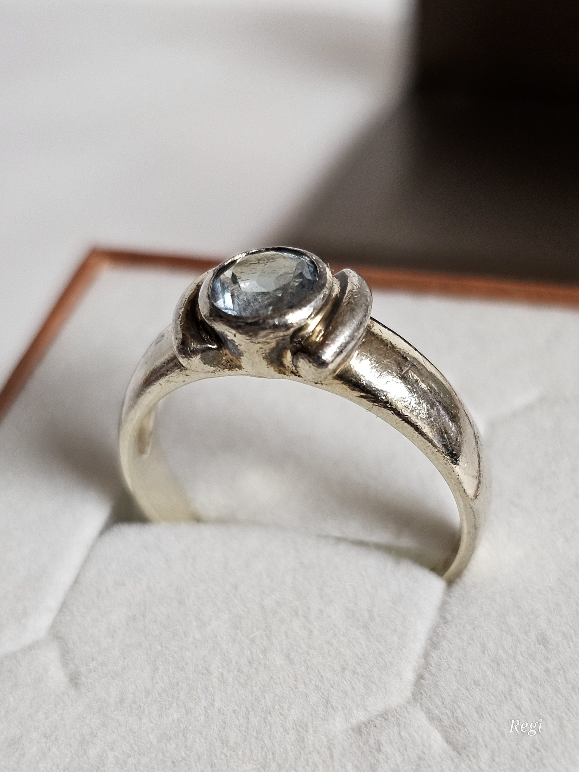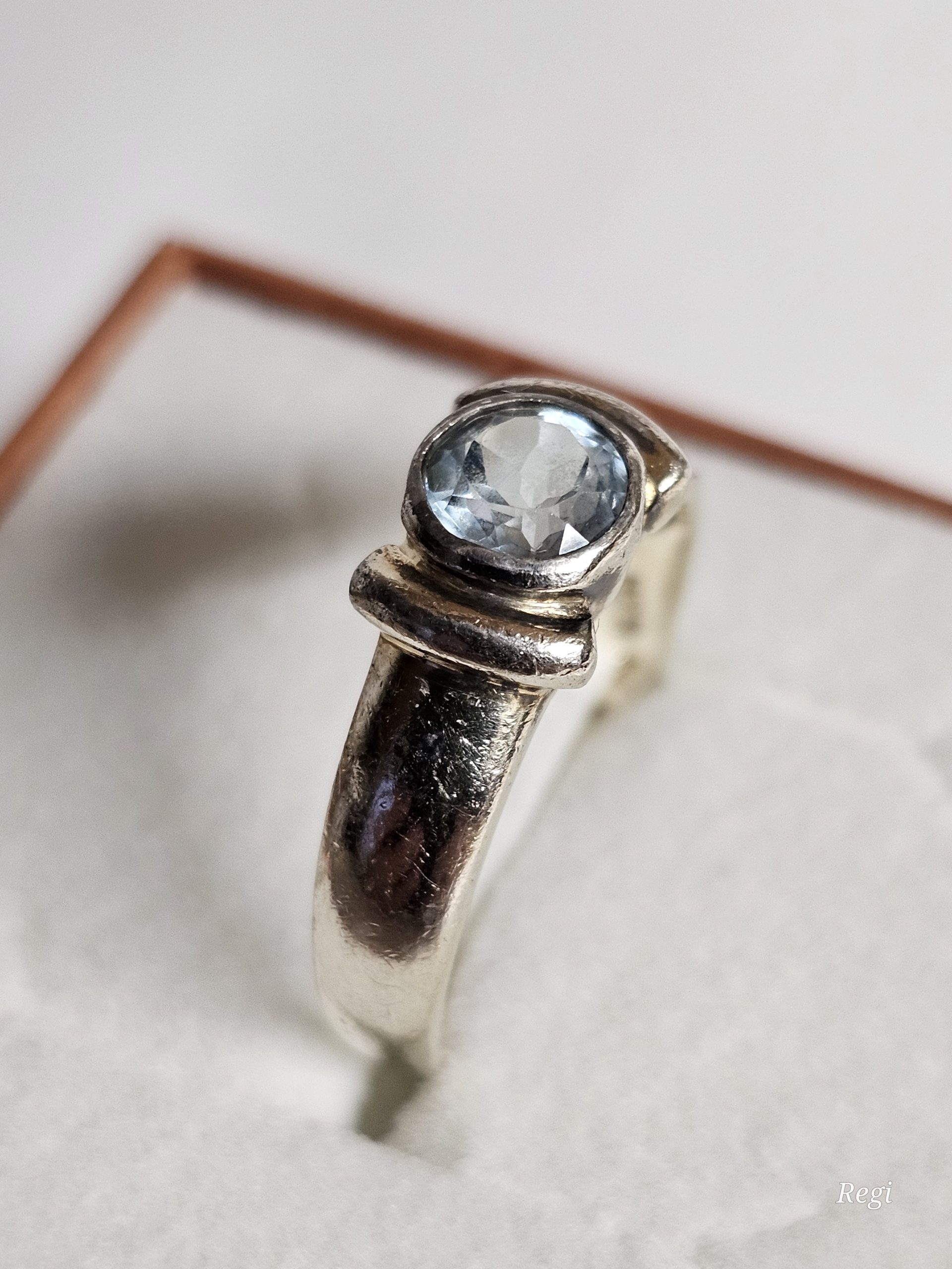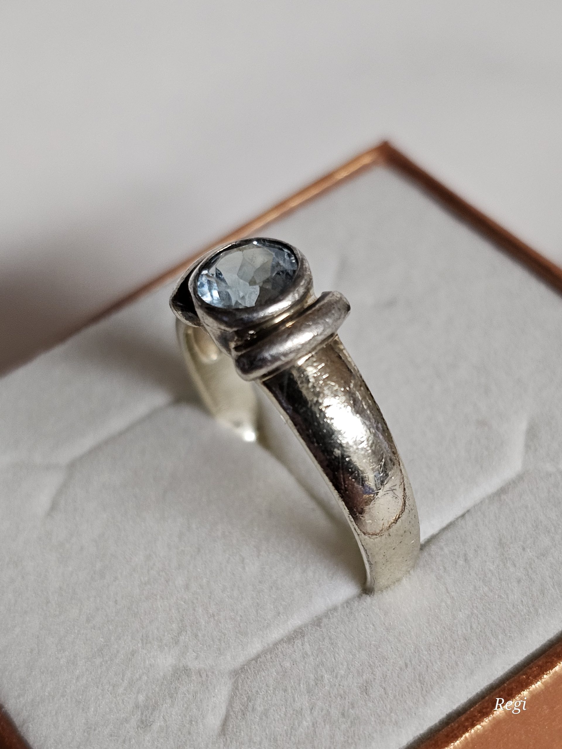 Ring aus Silber 925. Das schöne Stück ein elegantes Ringkopf-Design und ist besetzt mit einem Blautopas.