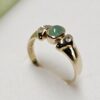 Schöner Vintage-Ring 585 Gold, geschmückt mit einem Smaragd Cabochon mittig und zwei kleinen Kristallsteinchen.