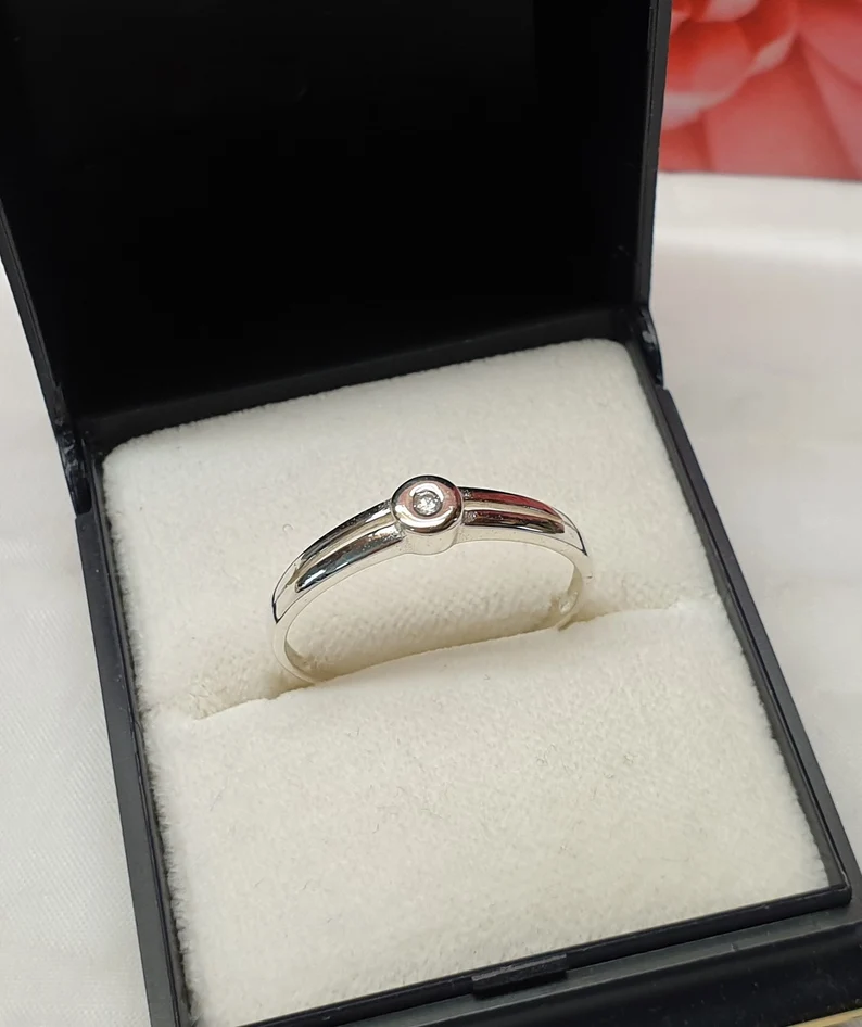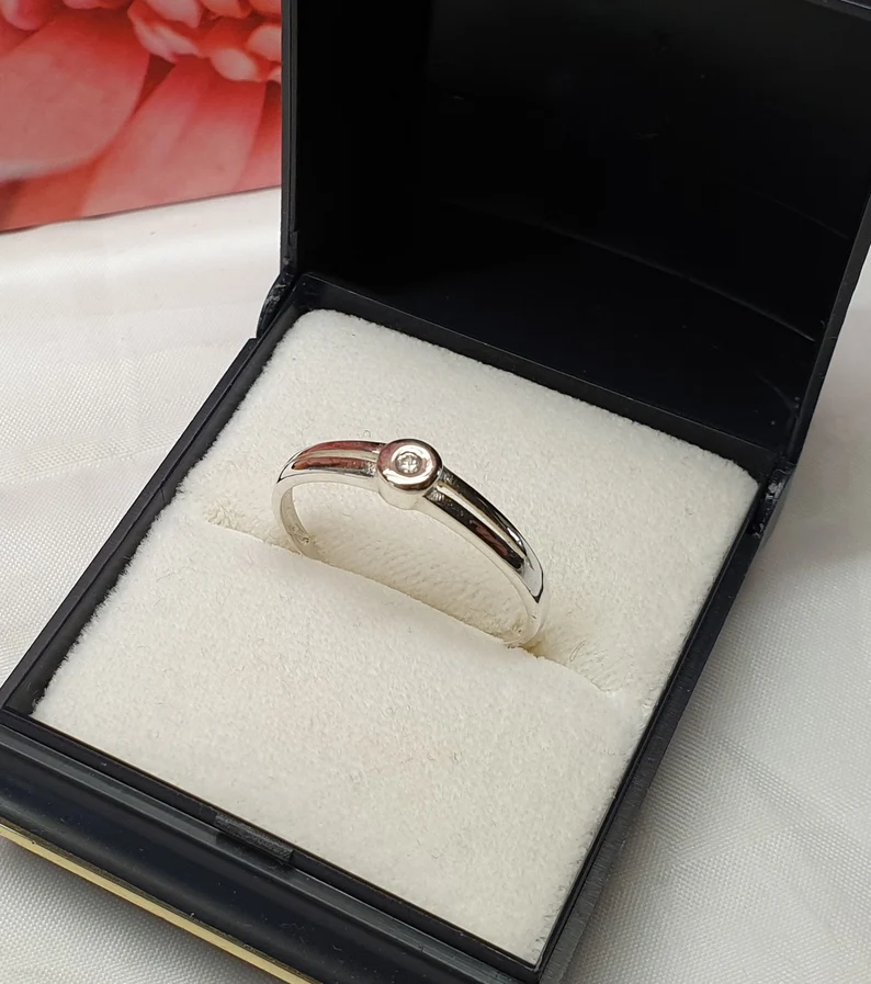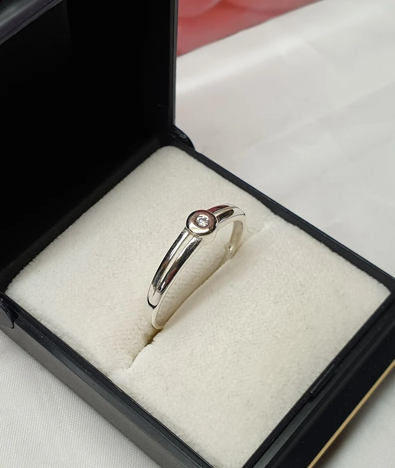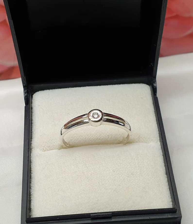 Feiner, edler Vintage-Ring Silber 925 mit einem klaren Kristallsteinchen.