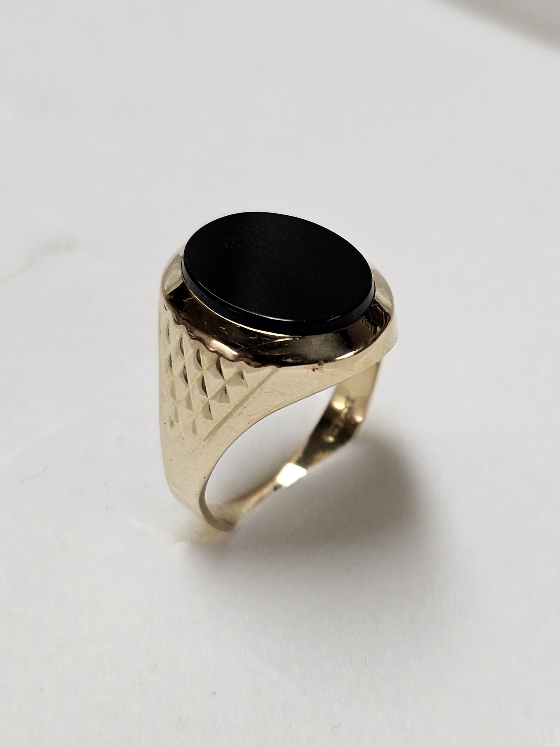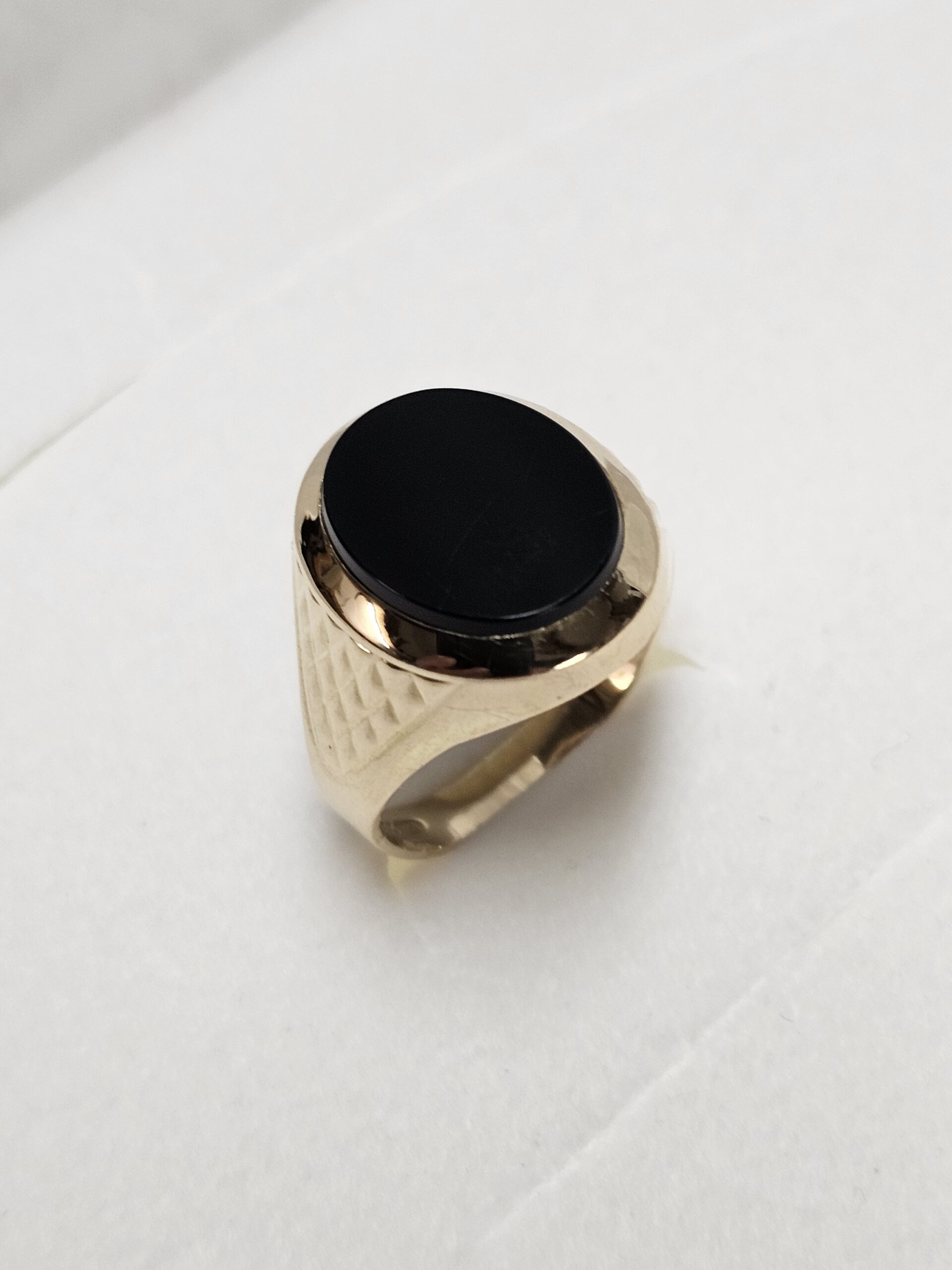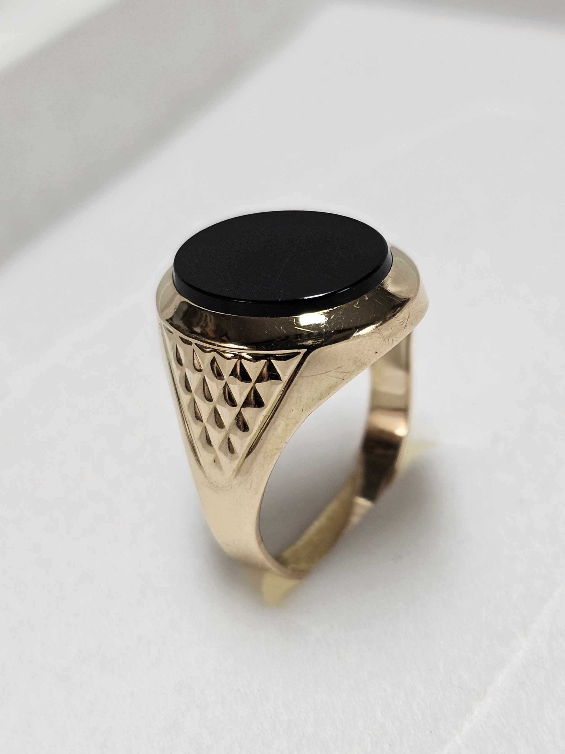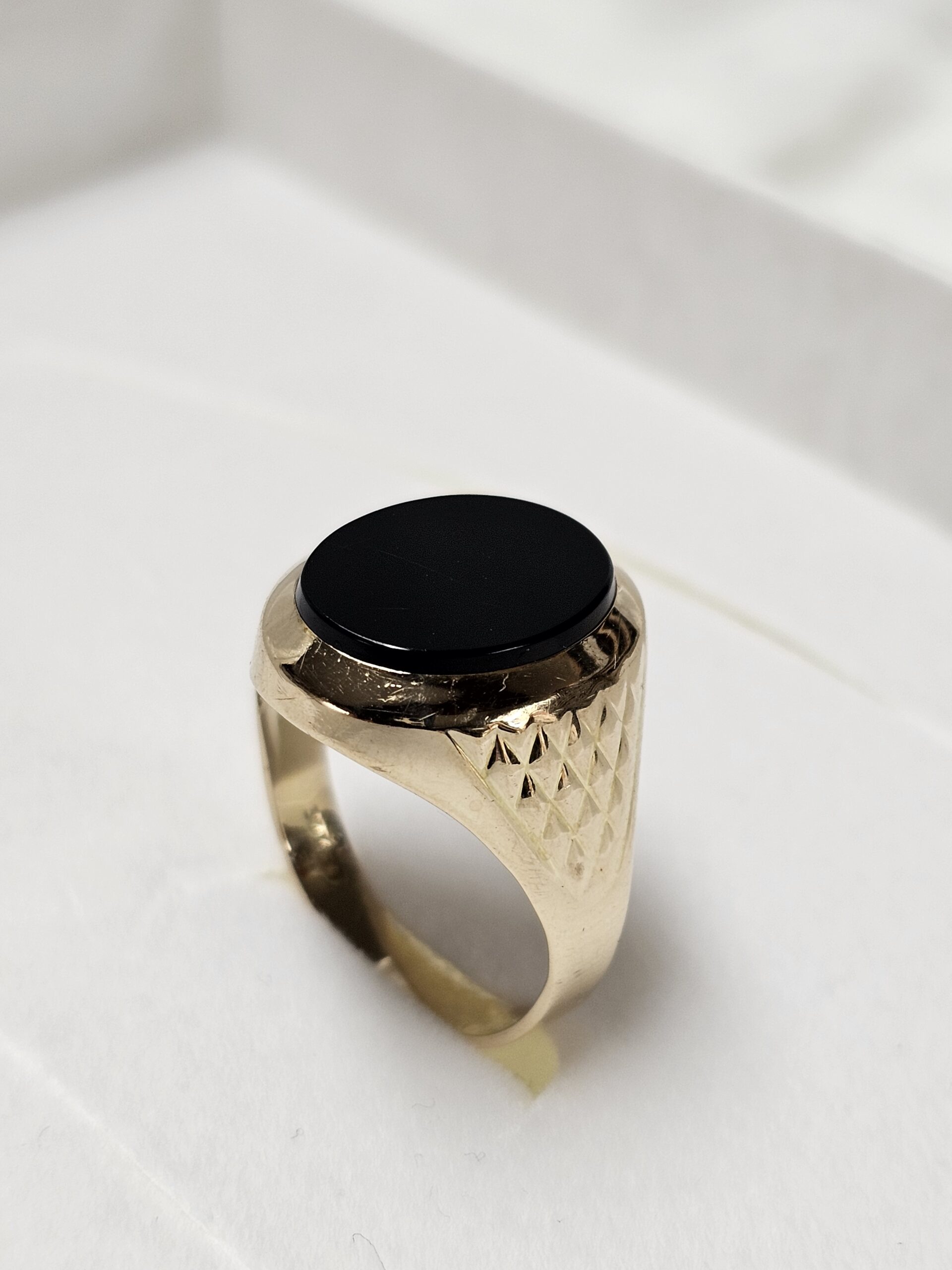 Eleganter Ring / Siegelring aus Gold 333 mit Onyx Lagenstein schwarz. Tolles Design – ein wunderschönes Schmuckstück.