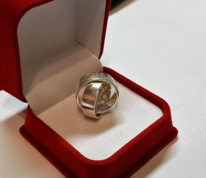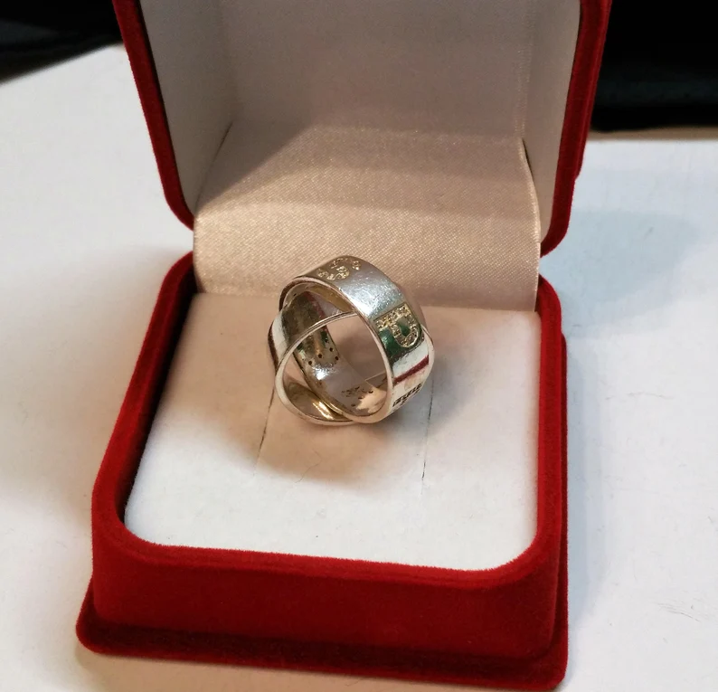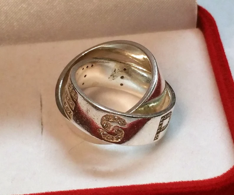 Ring / Silberring, 80er Jahre Doppelring aus 925 Silber und Kristalle.