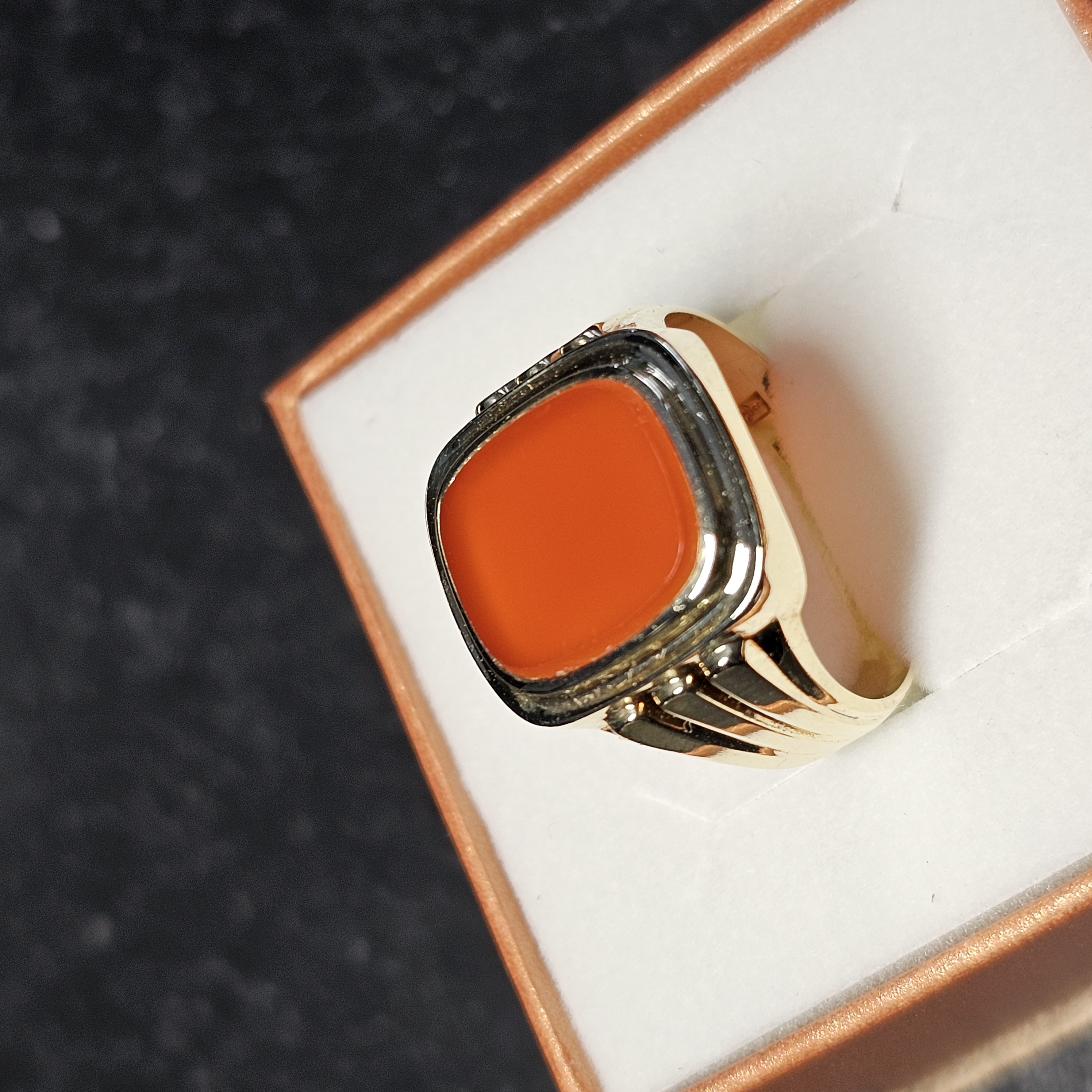 Goldring / Sieglering Gold 585 bestückt mit einer Karneol-Platte.