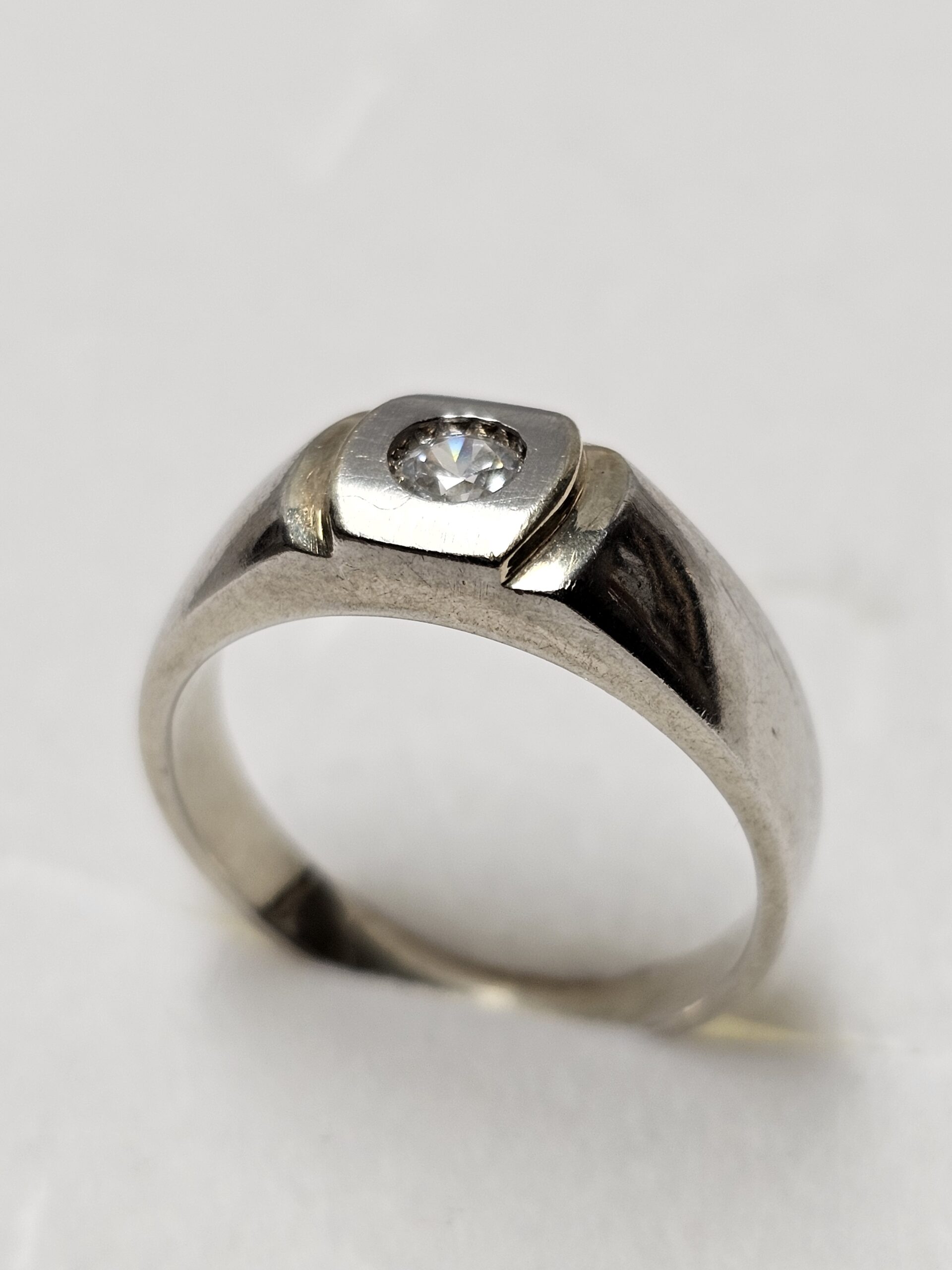 Edler Vintage Ring Silber 925 mit Teilvergoldungen auf dem Ringkopf seitlich neben dem Stein.