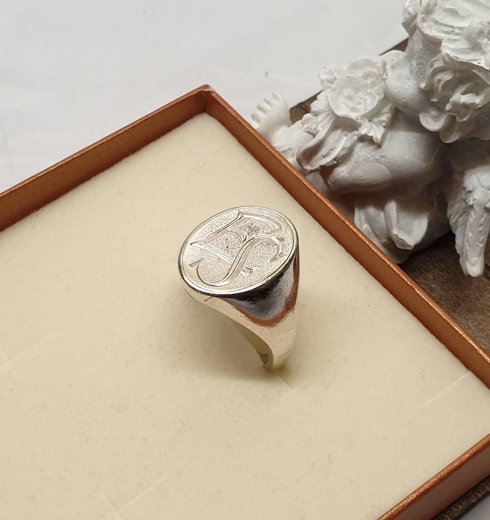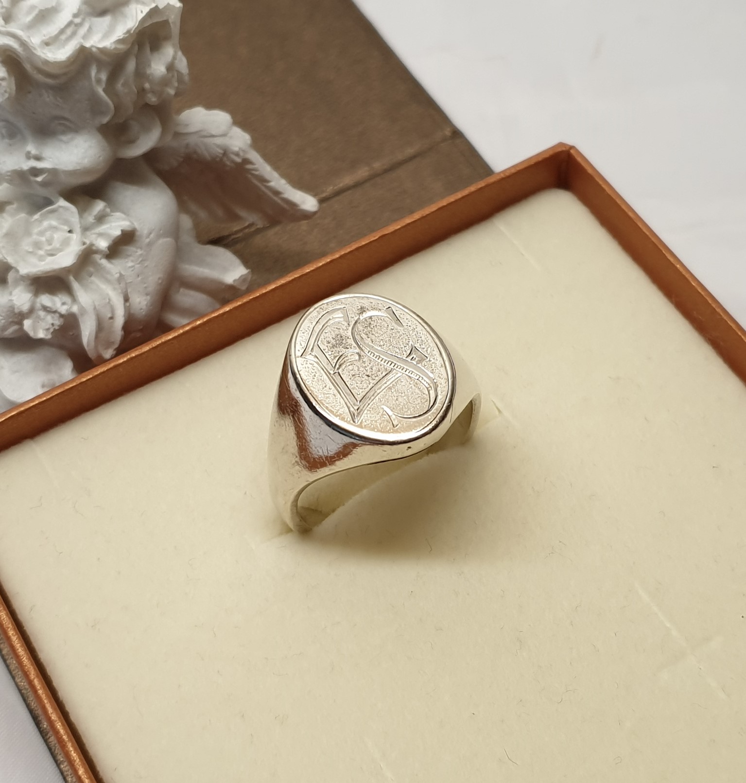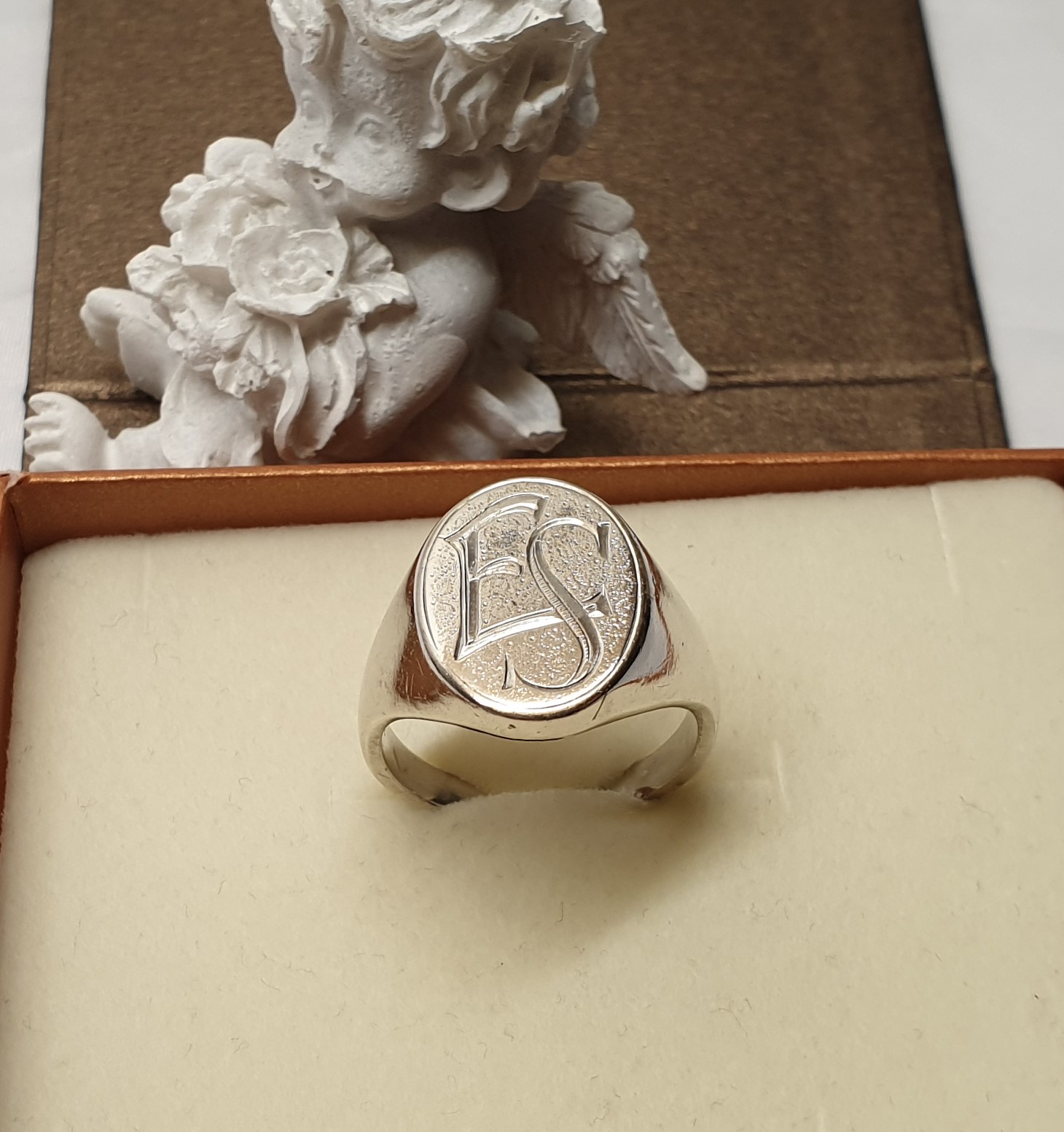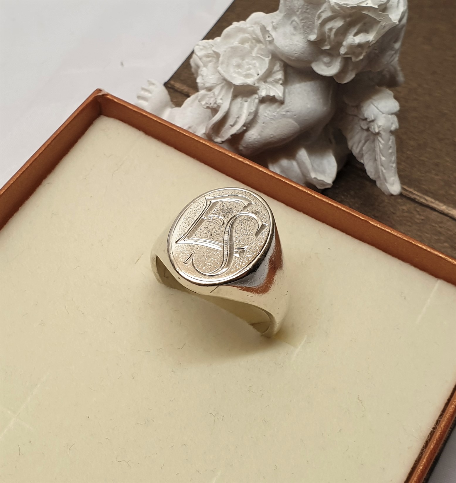 21,7 mm Ring Siegelring Silber 835 Initialen Buchstaben „ES“ Vintage elegant SR1250