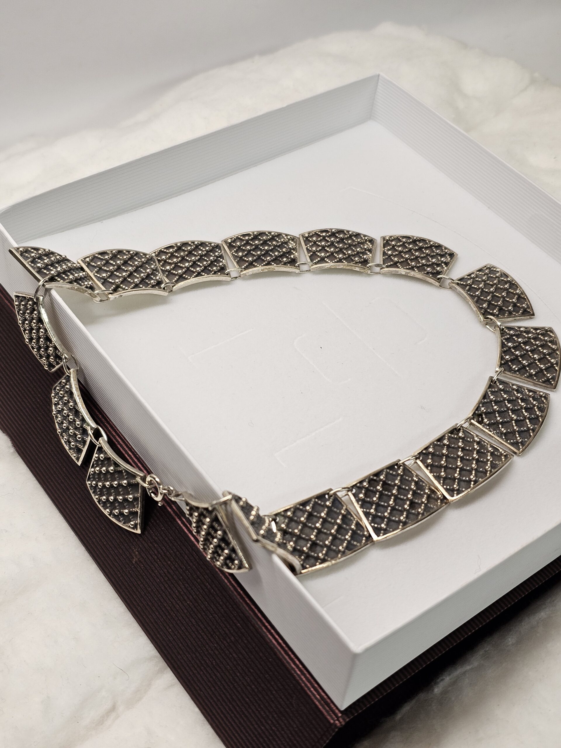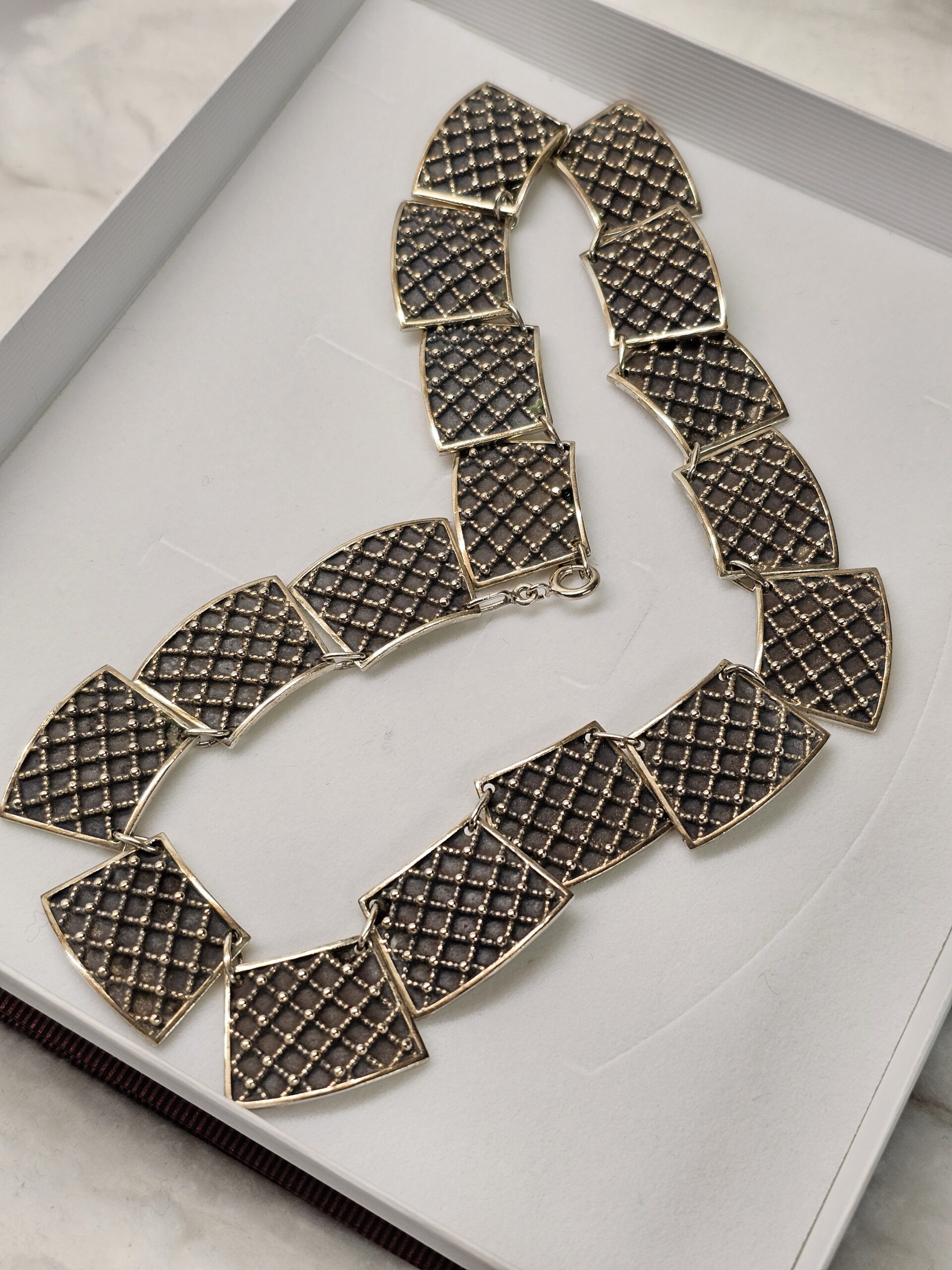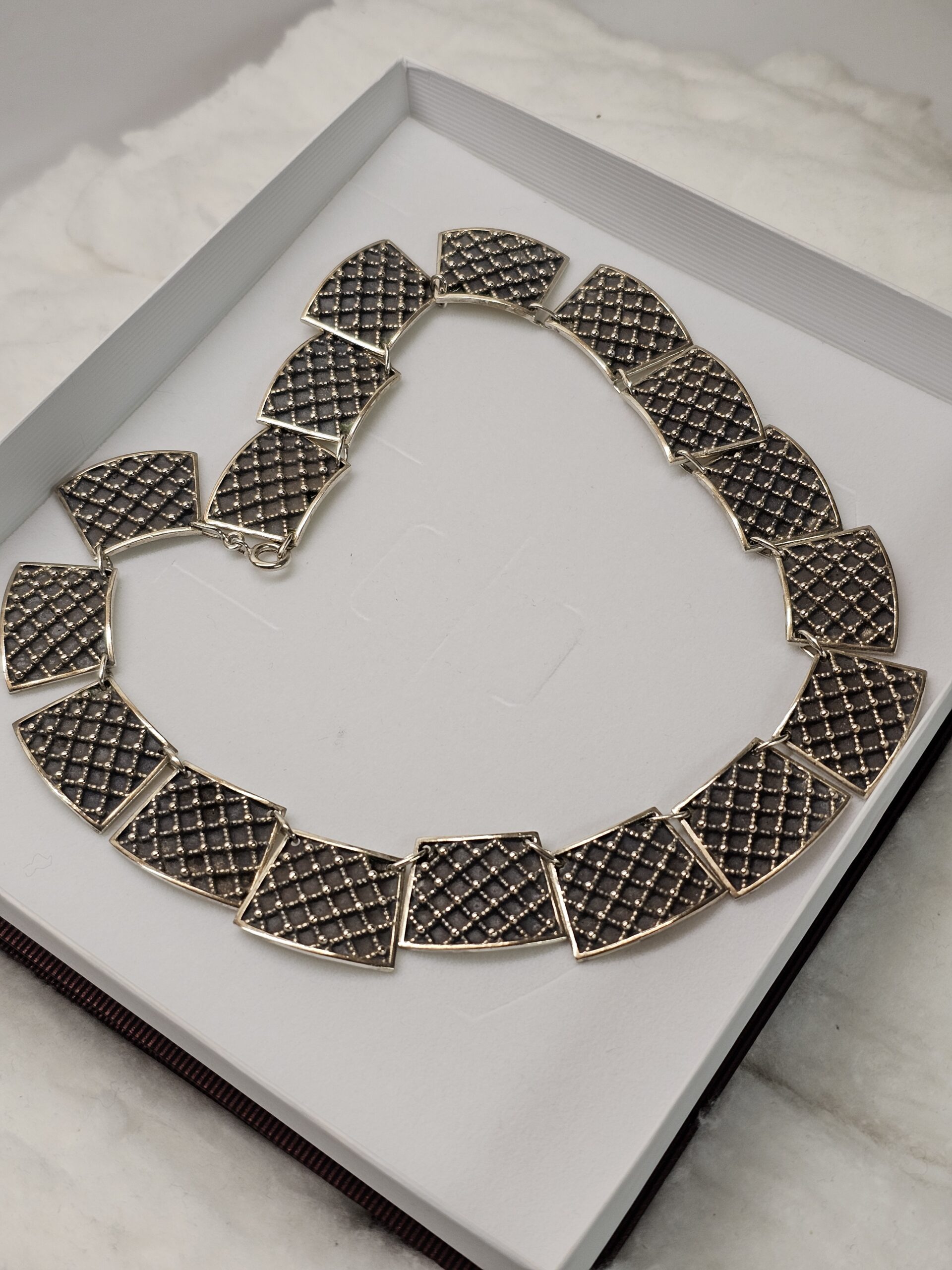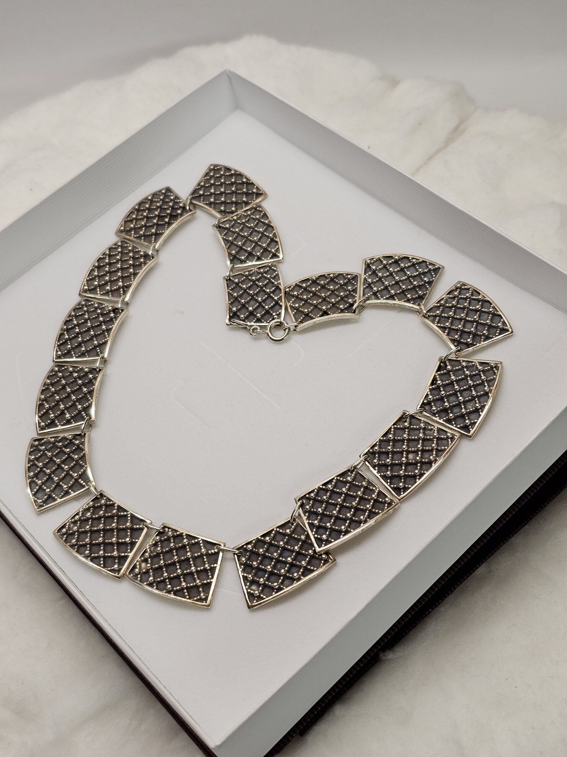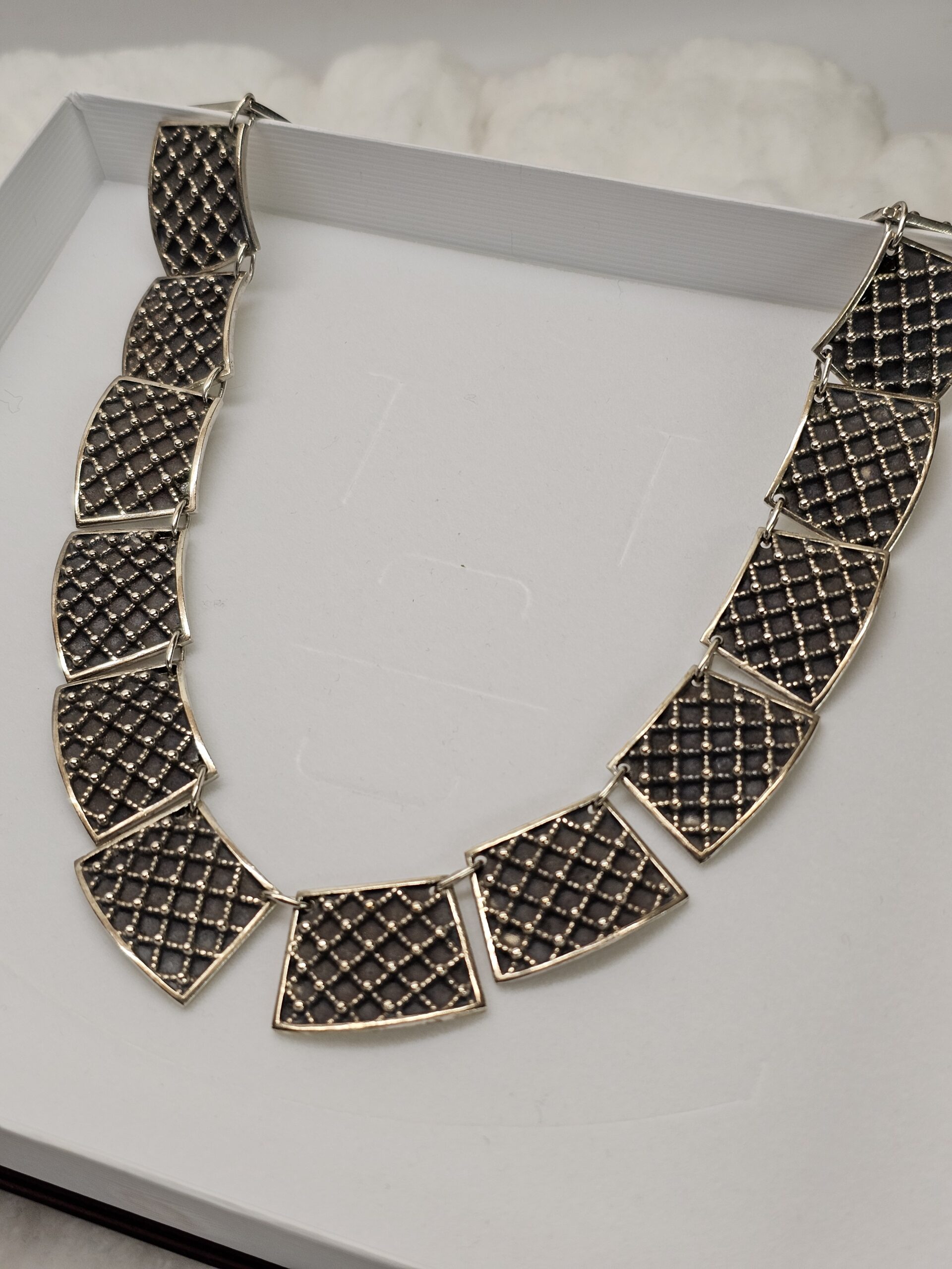 Sehr schöne Halskette / Gliederkette. Silberne massiv gearbeitete und nostalgisch gestaltete Plättchen sind wunderbar als Glieder zusammengefügt.
