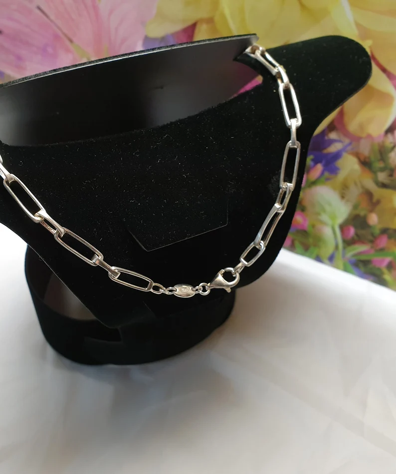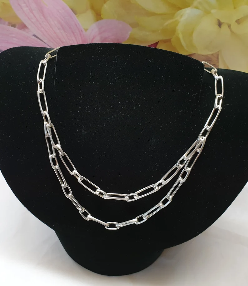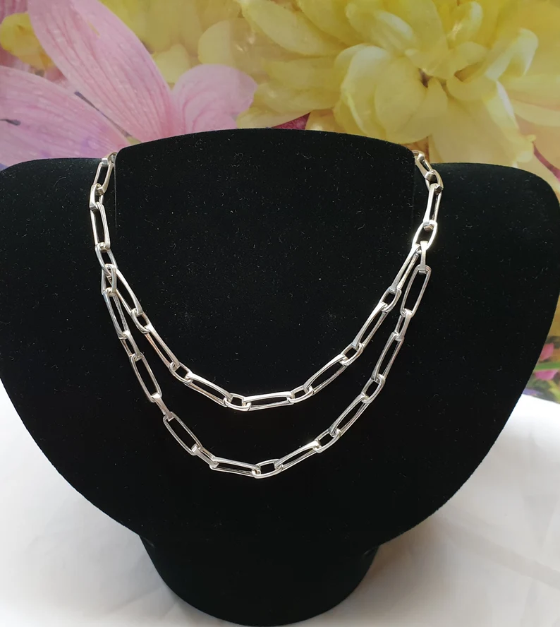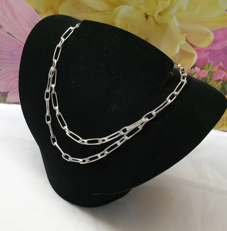 Schöne Gliederkette Silber 925, die vorne in eine Doppelkette verläuft.