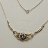 Traumhaft schönes  Collier / Halskette American Doublé vergoldet. Das Mittelstück ist mit einem schönen Ornament ausgearbeitet, mittig sitzt ein blauer Kristallstein.