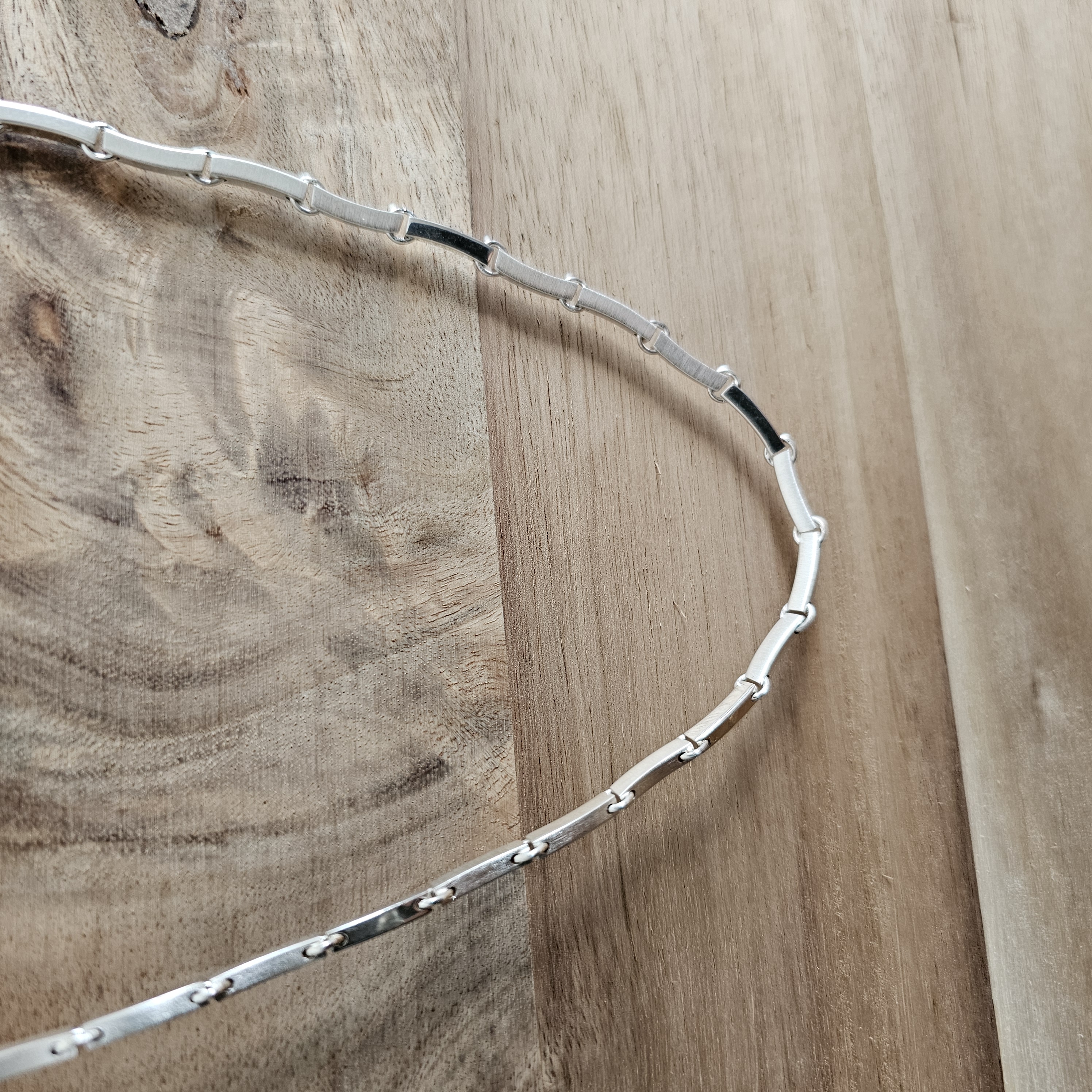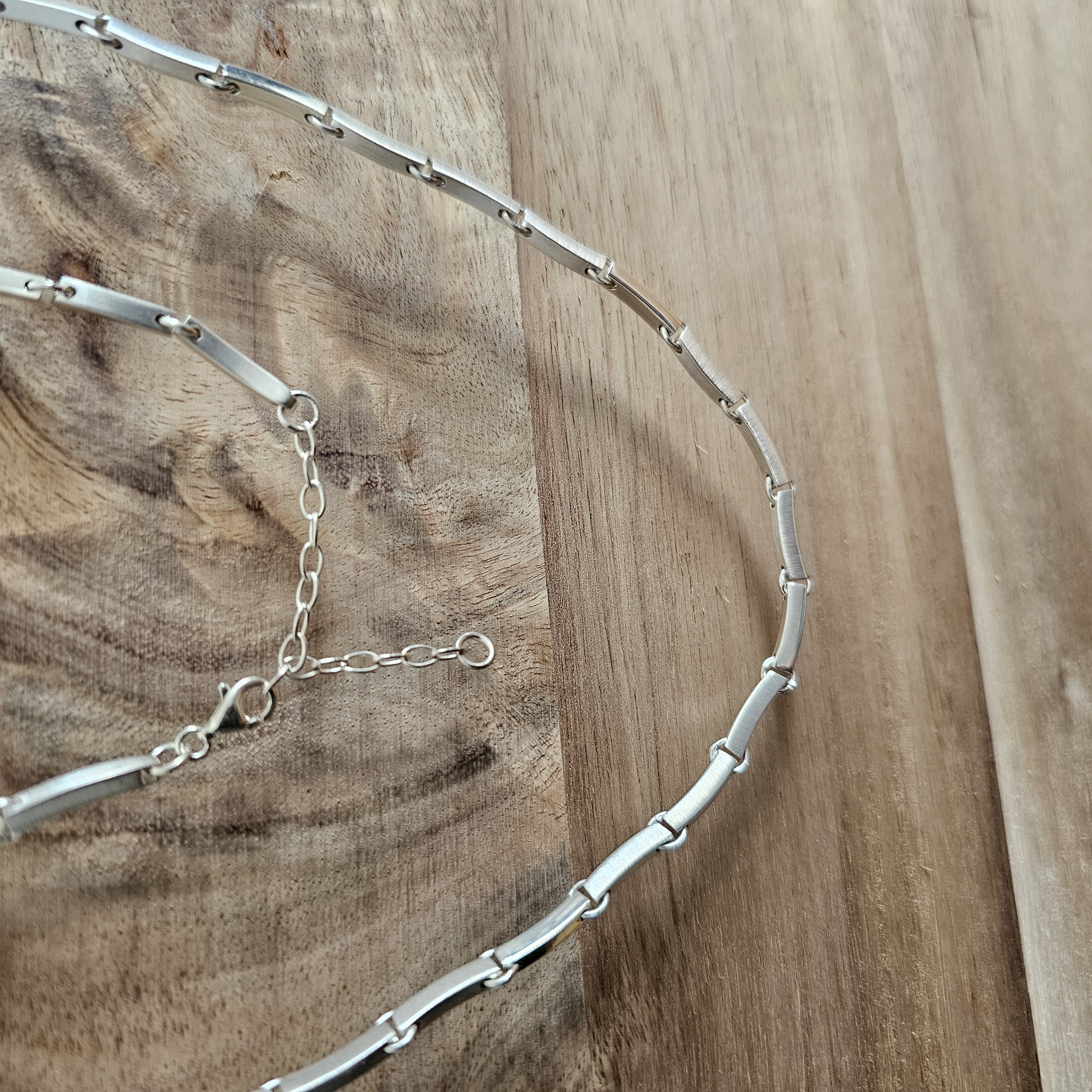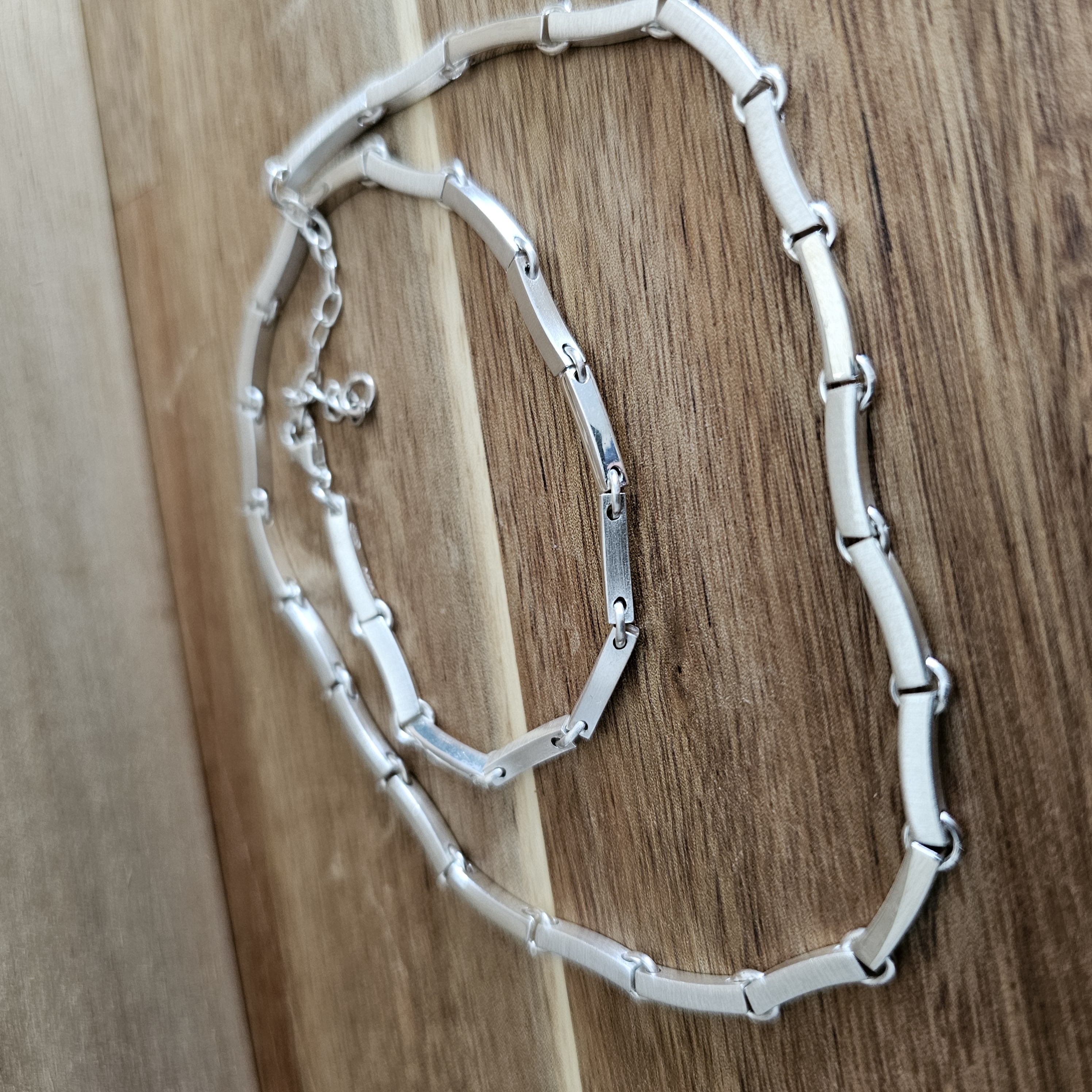 Sehr schöne Gliederhalskette aus Silber 925 gefertigt. Die leicht geschwungenen Glieder/Elemente sind im Design teils matt und teils glänzend gestaltet.