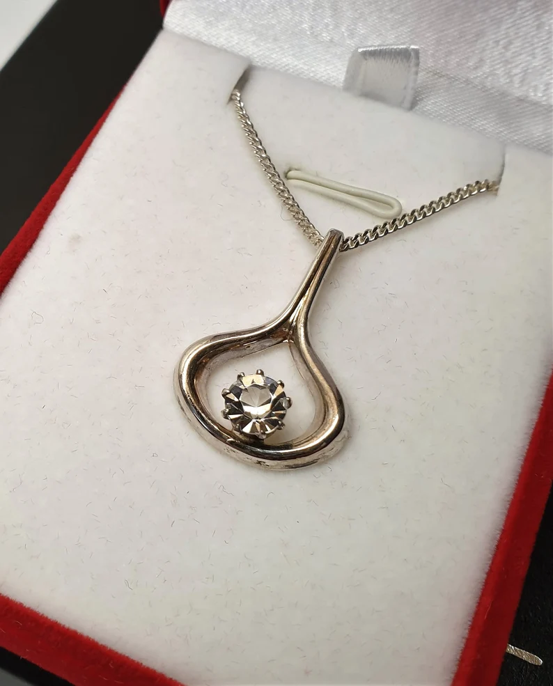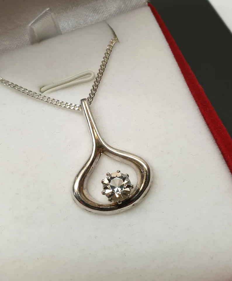 *Schöner 835er Silberanhänger mit Kristallstein und Silberkette*