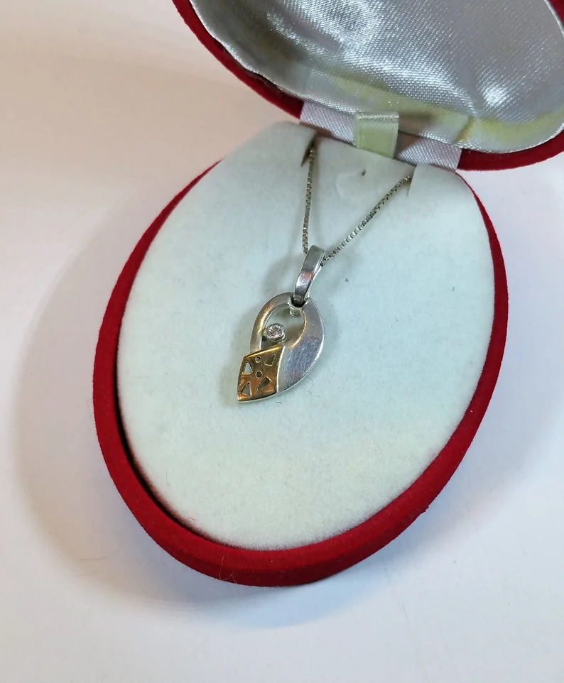 Schöner Anhänger aus 925 Silber mit Teilvergoldung und Kristallstein.