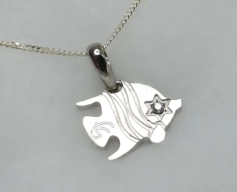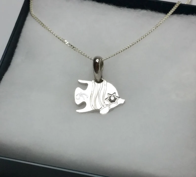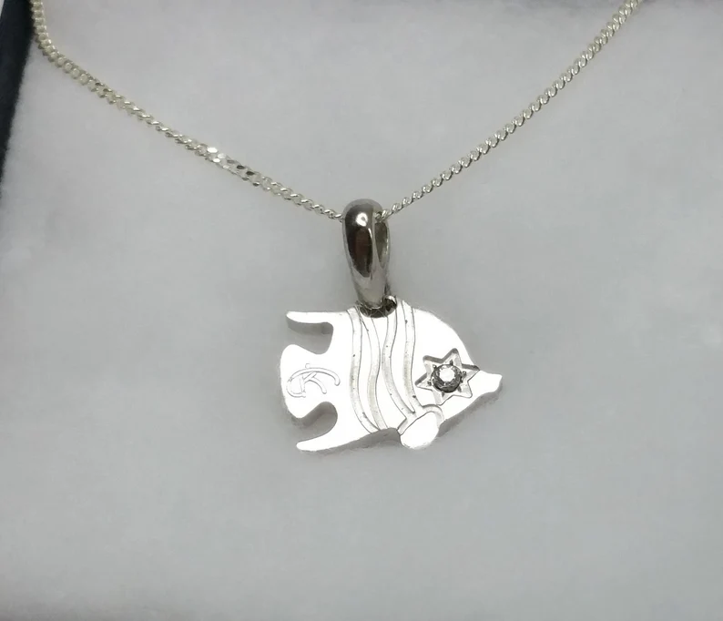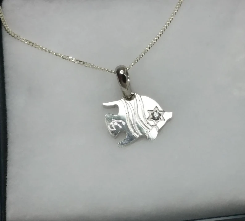Schöner Anhänger Fisch aus Silber 925, mit einem Kristall als Auge.