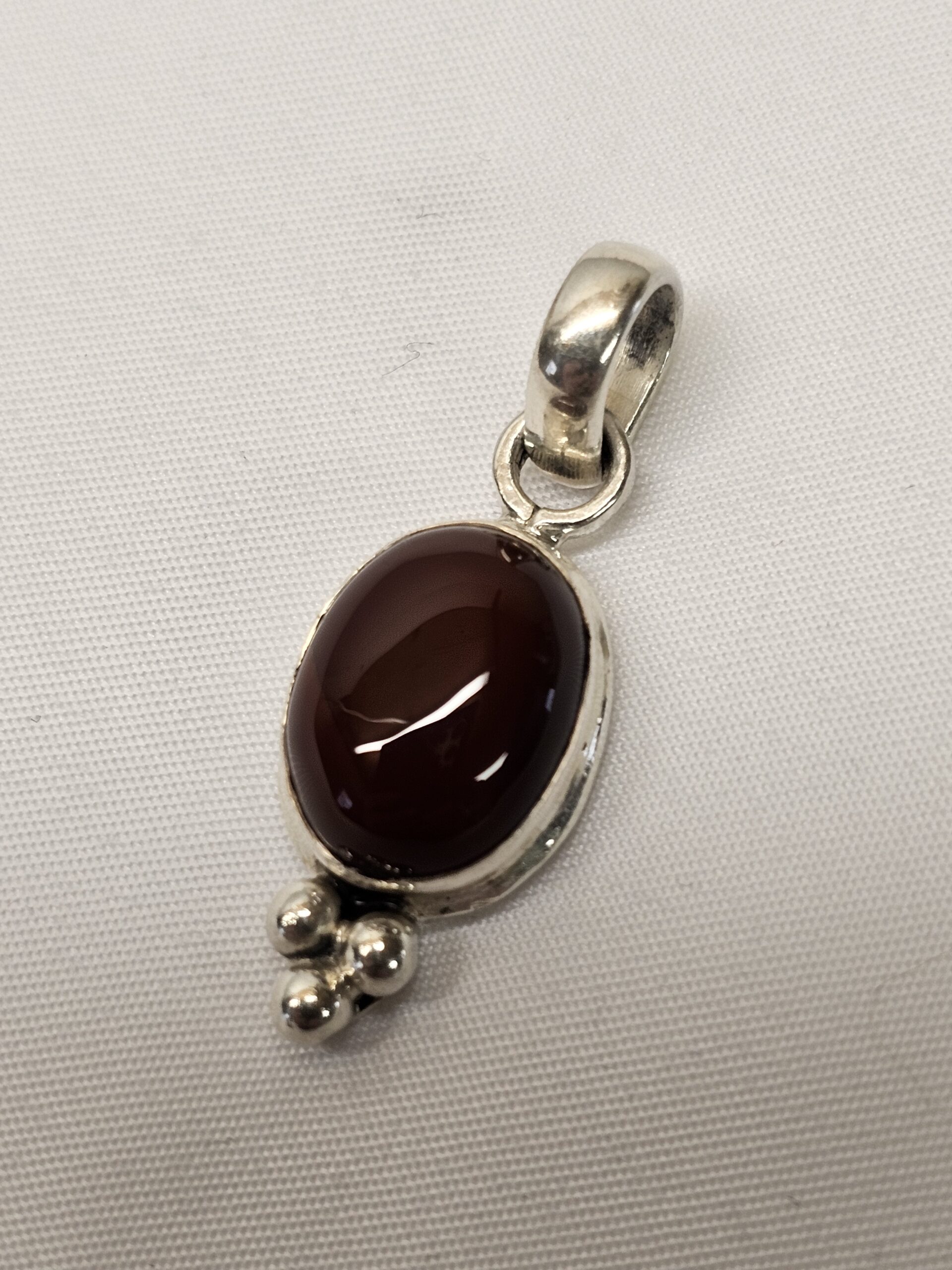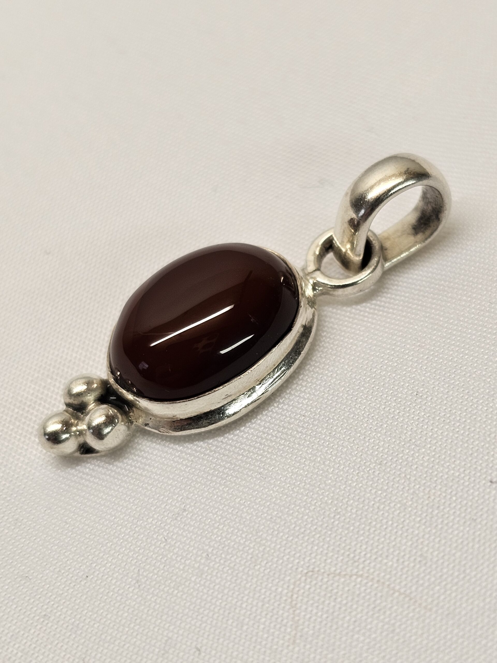 Nostalgischer Anhänger Silber 925 mit eine braunen Achat. Der Stein hat leider einen leichten Riss im unteren Bereich, der aber nicht sehr auffällt.