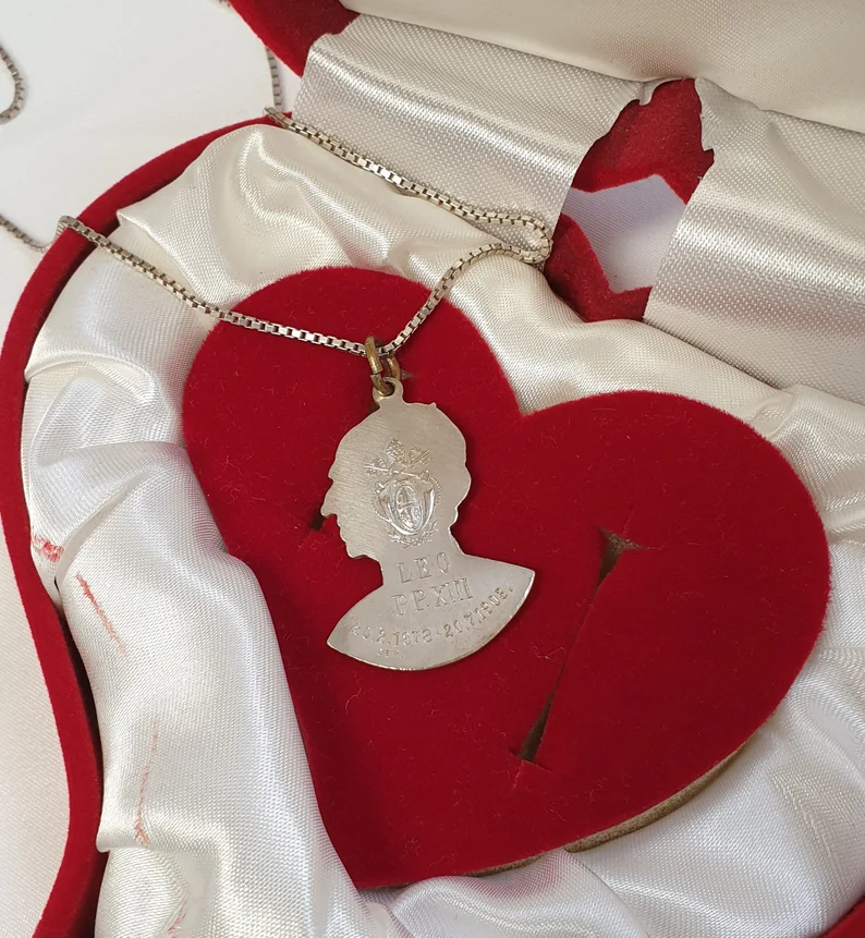Ein schöner Anhänger Papst Leo P.P. XIII 20.2.1878 – 20.7.1903 Aufschrift auf der Rückseite mit Wappen.