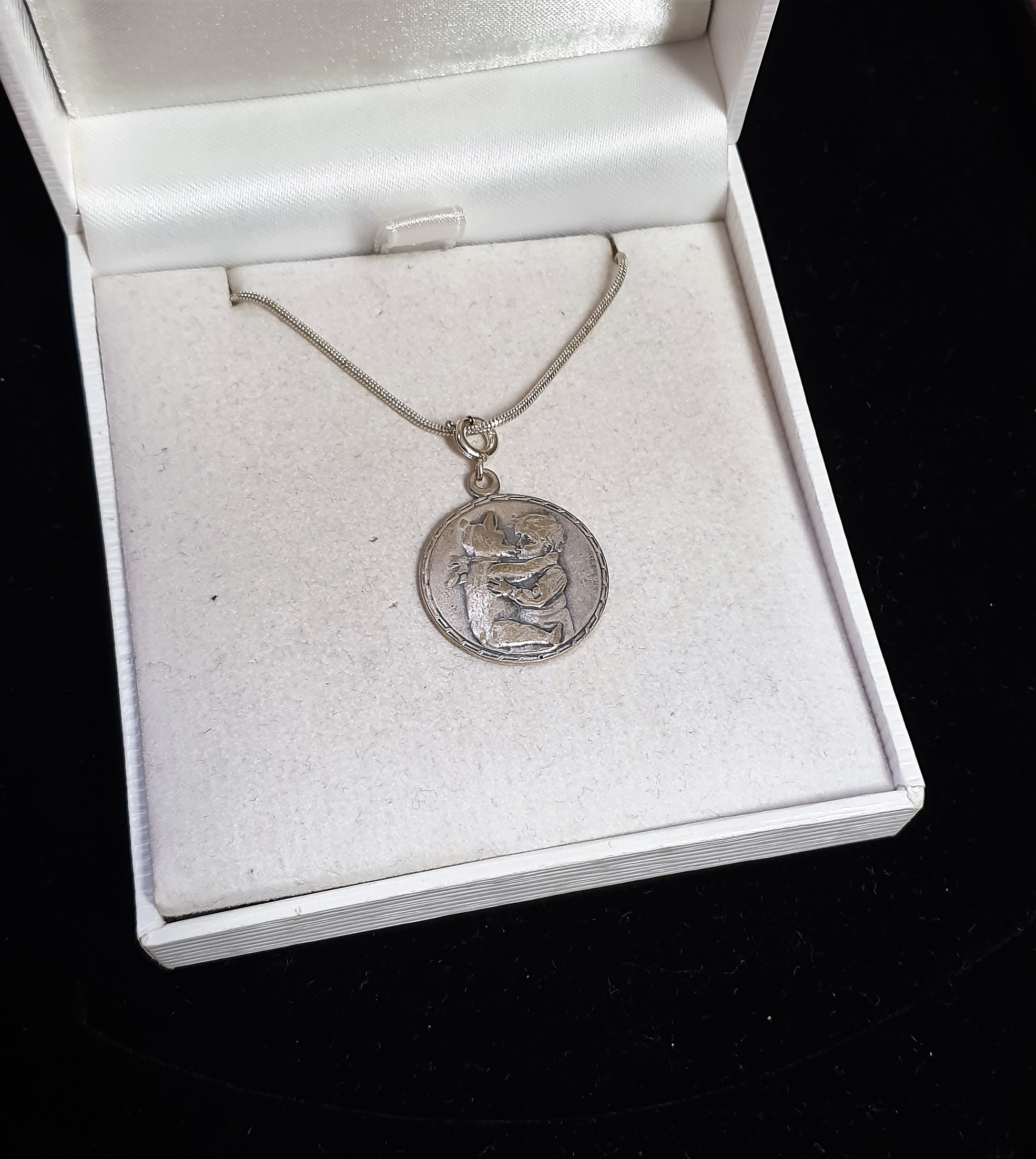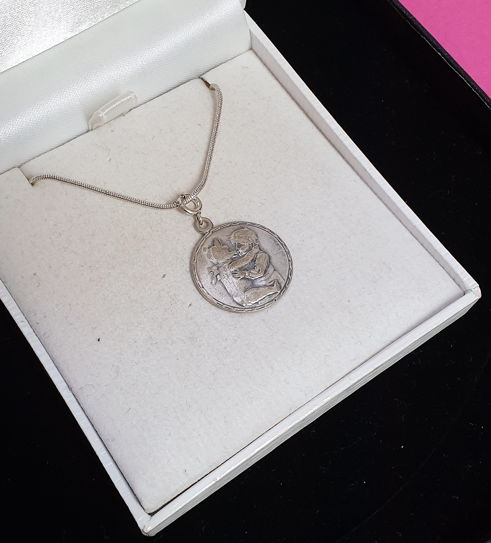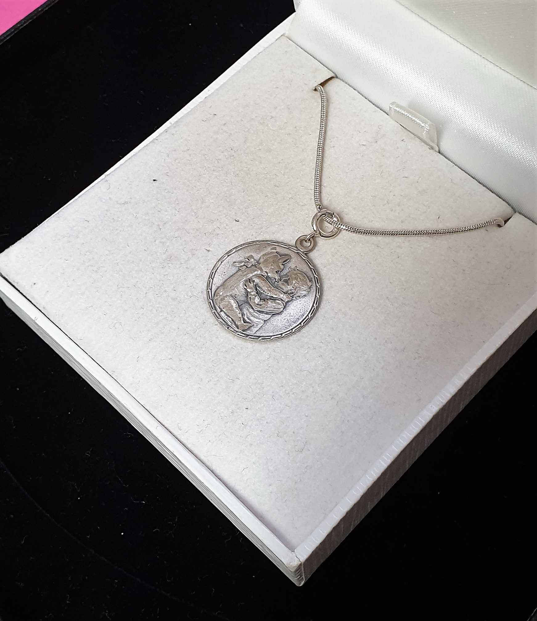 Nostalgischer runder Anhänger Kind mit Bär / Teddybär aus Silber 835 (geprüft, nicht gepunzt).
