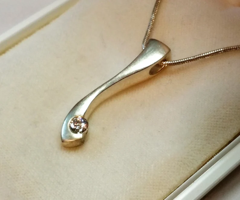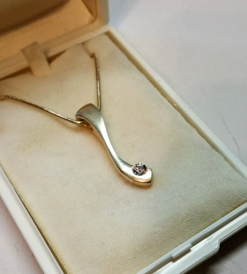 Eleganter Halsketten-Anhänger Silber 925 mit 1 klaren Kristallsteinchen. Tolles Design, massiv gearbeitet.