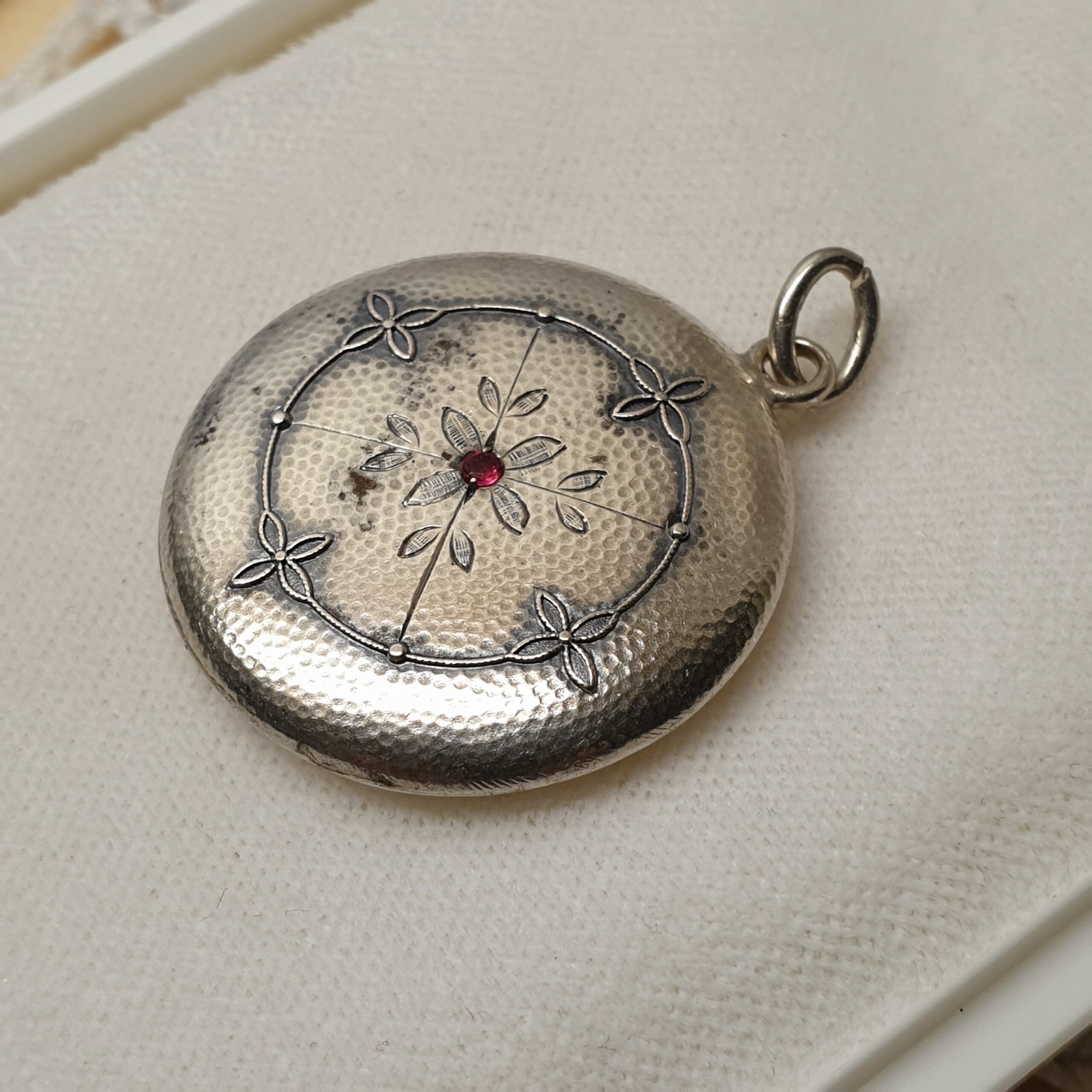 Schönes, sehr altes Stück, Anhänger aus Silber 800 (geprüft, nicht gepunzt), mit einem rosa Farbstein.