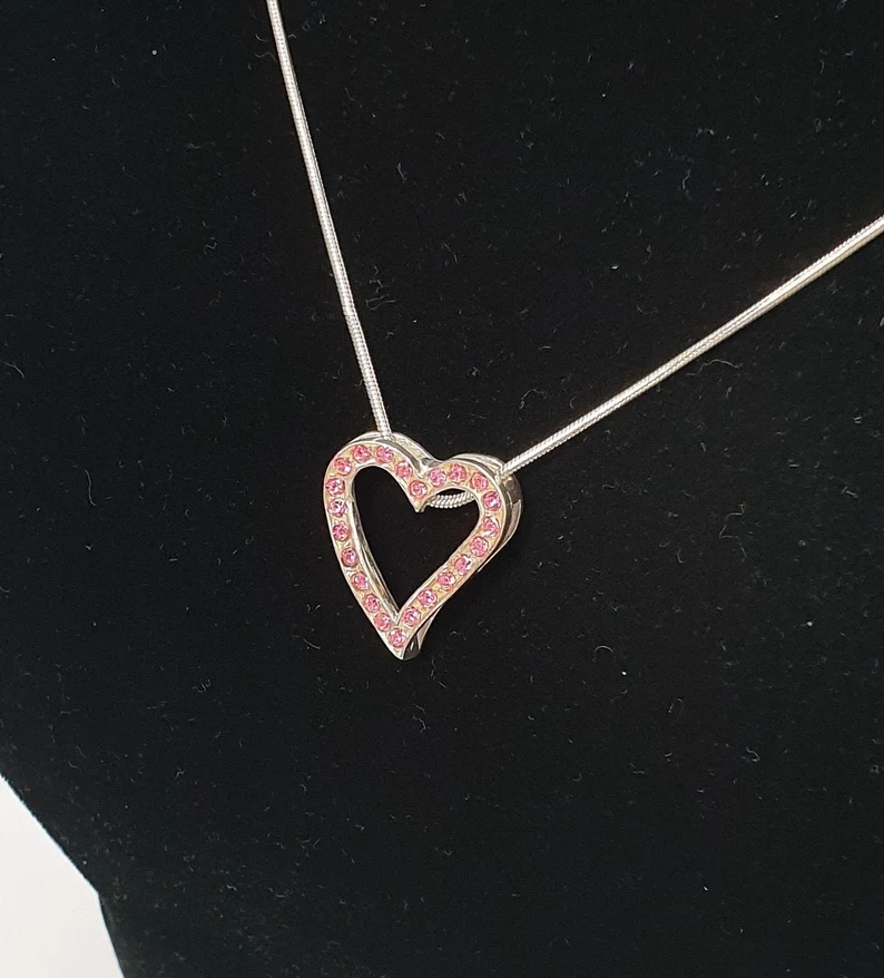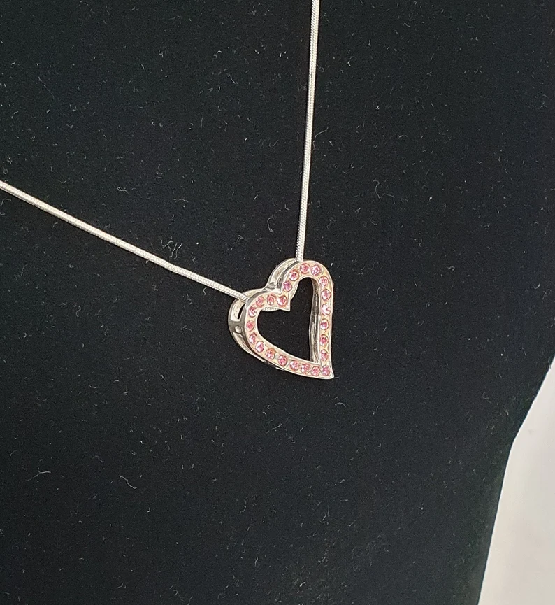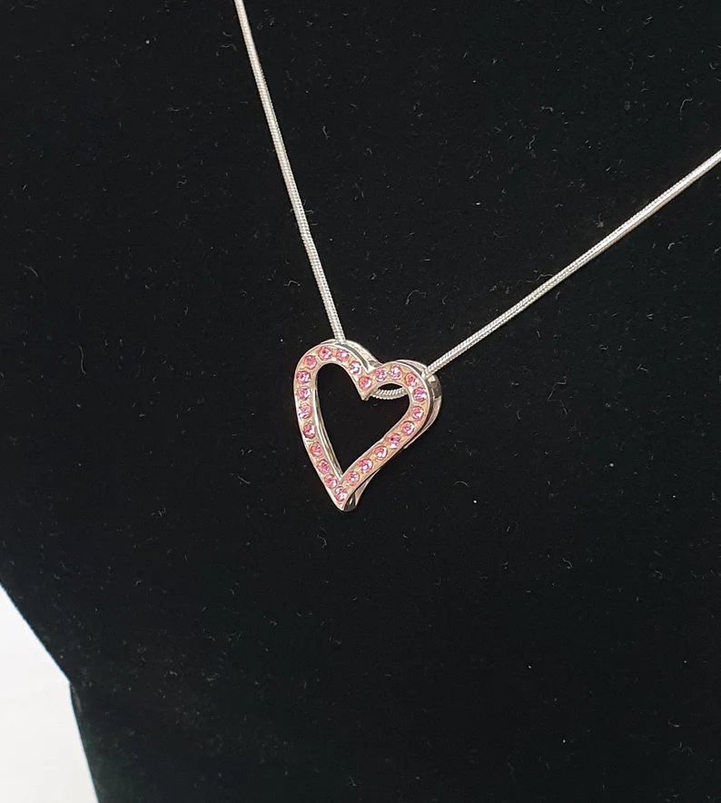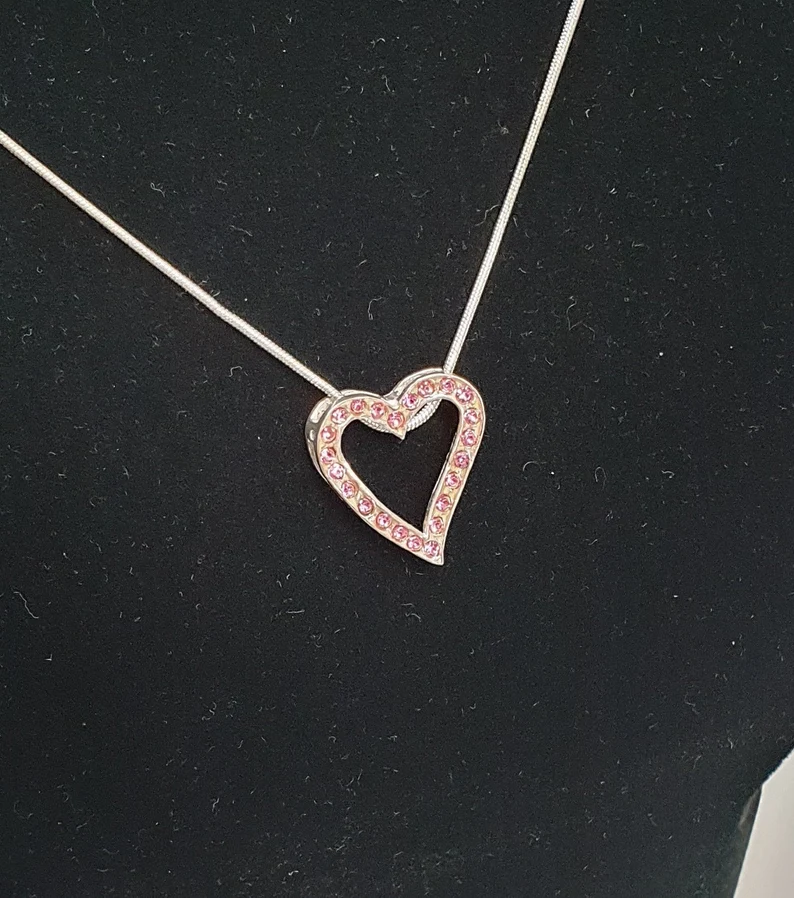 Sehr schöner Herz-Anhänger, mit pink/rosa Kristallsteinchen. Wunderschön!