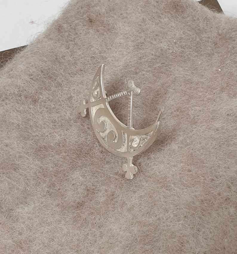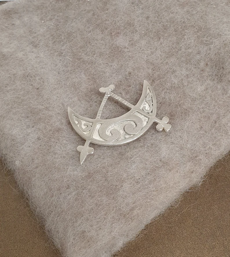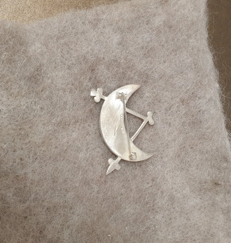Anstecknadel/Brosche Mond mit Zirkel aus Sterling Silber.