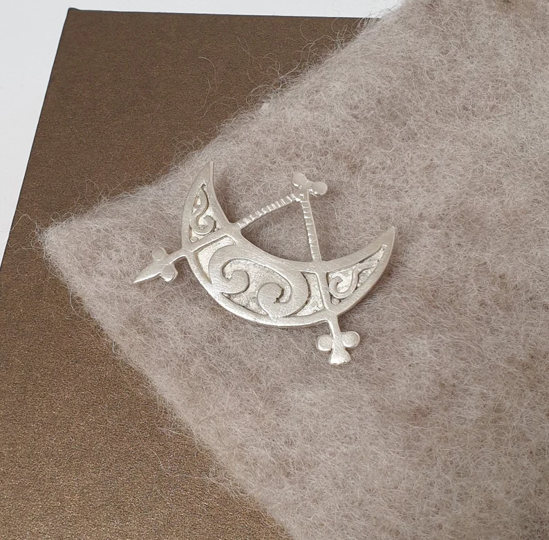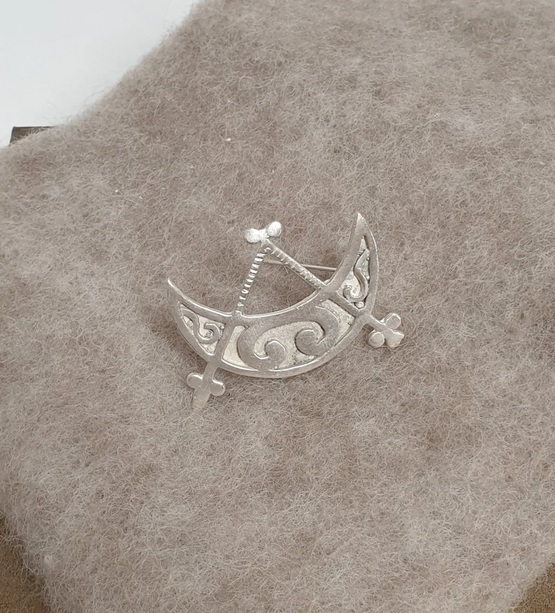 Antike Brosche Anstecknadel Edinburgh Mond und Zirkel Silber Silberschmiede Kunst selten rar SB390