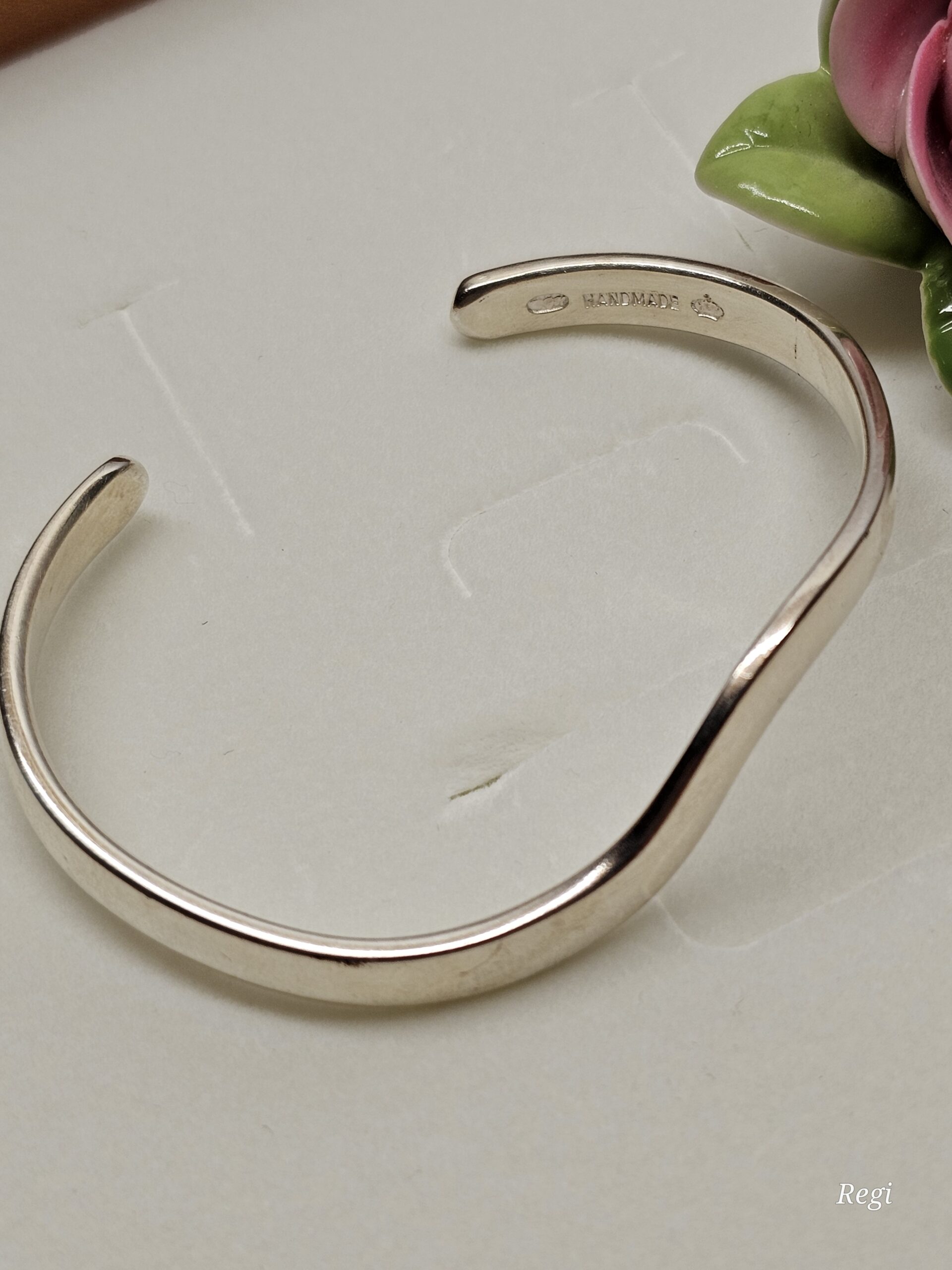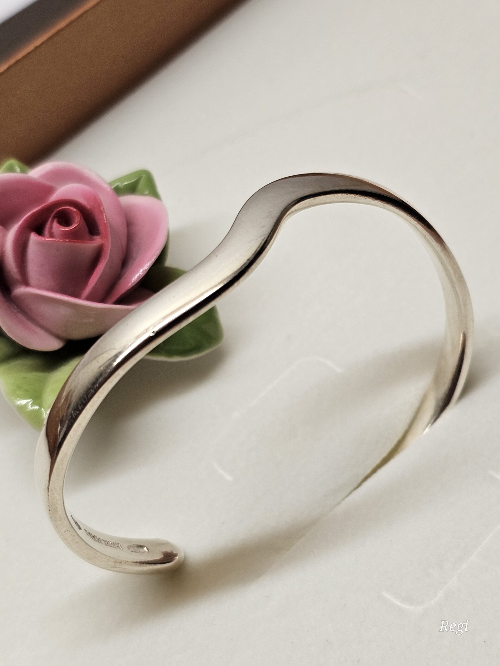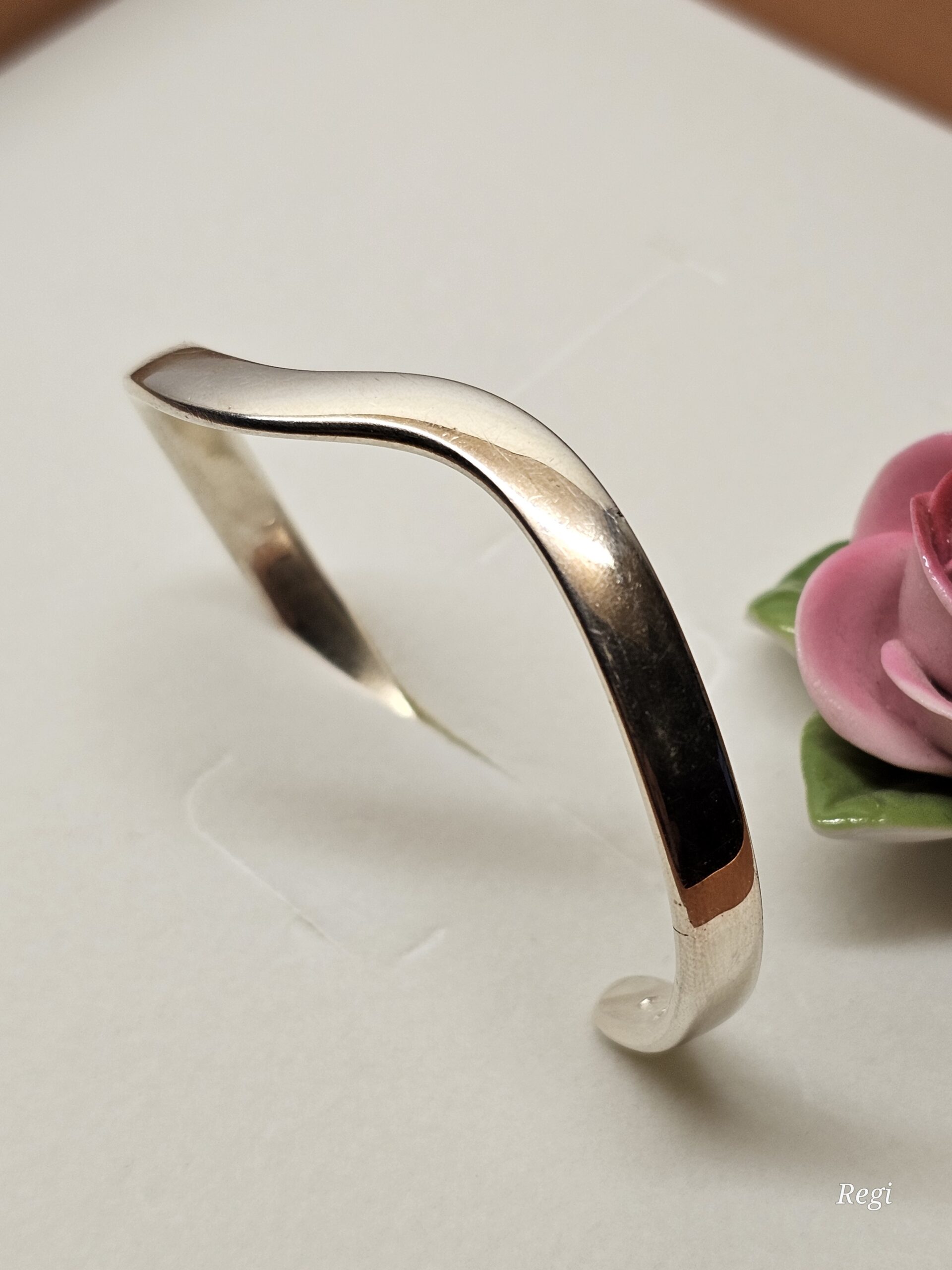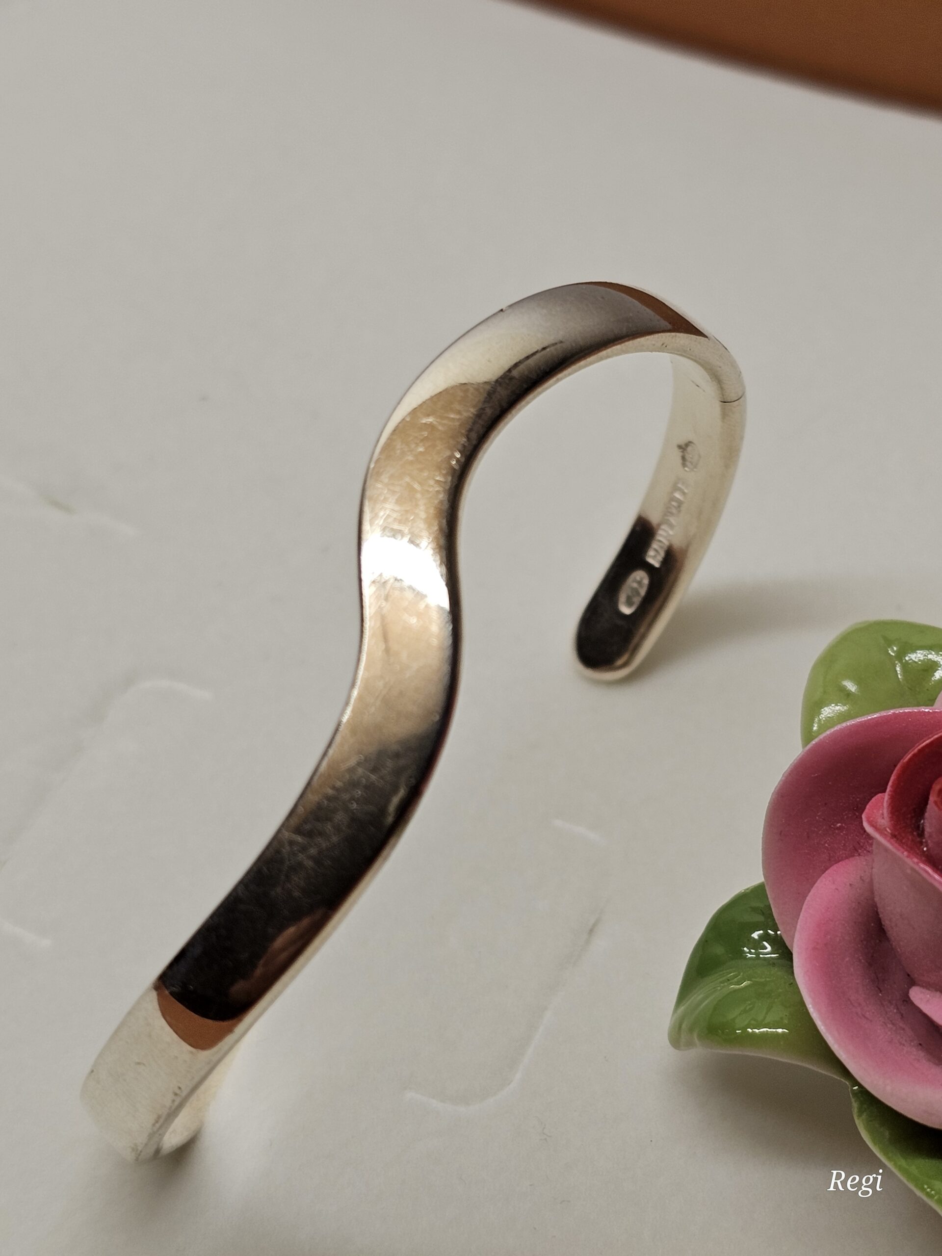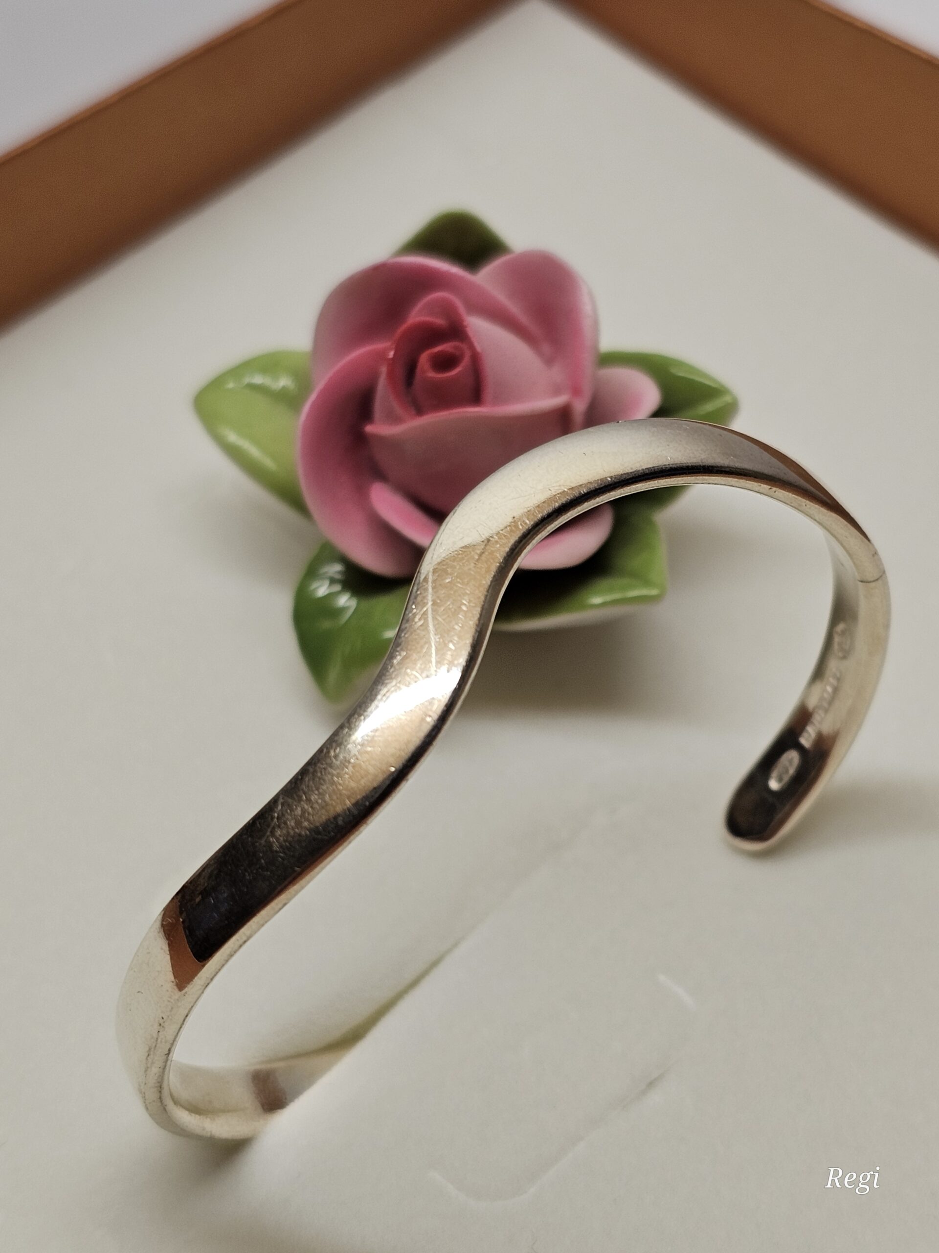 Eleganter Armreif / Silberarmreif aus Silber. Der Armreif ist mit 10 k Weißgold überzogen. Wunderschönes wellenförmiges Design.