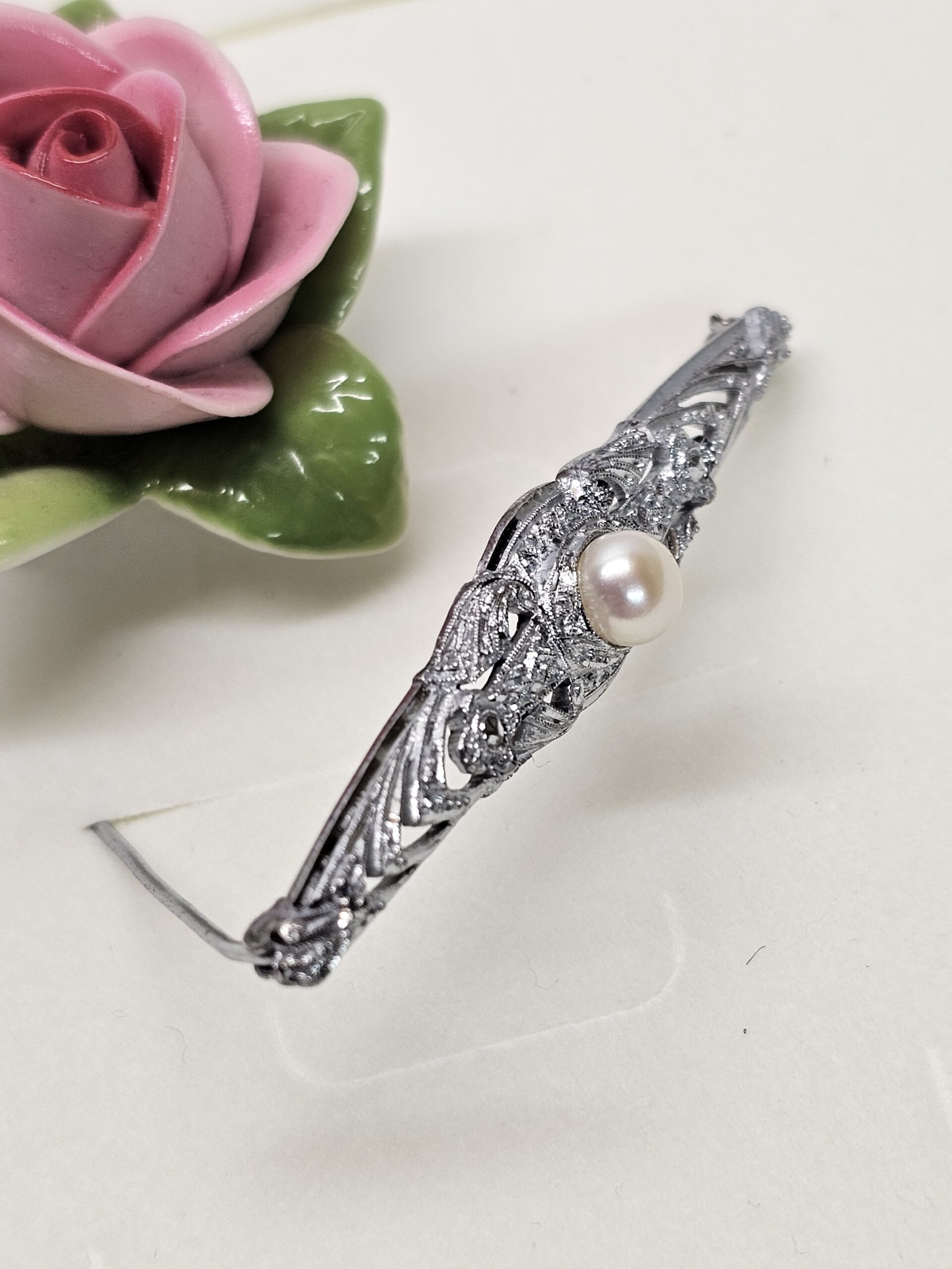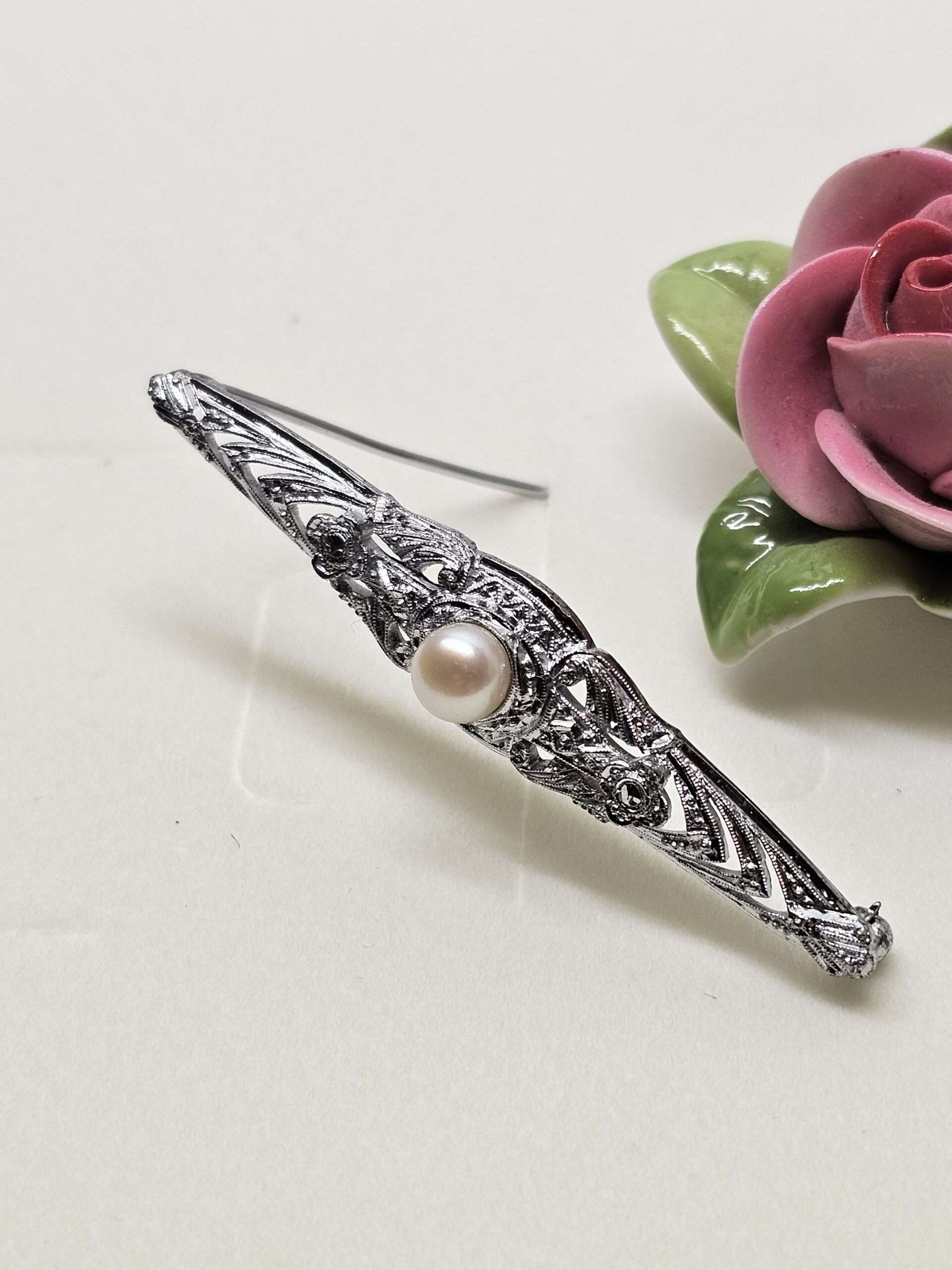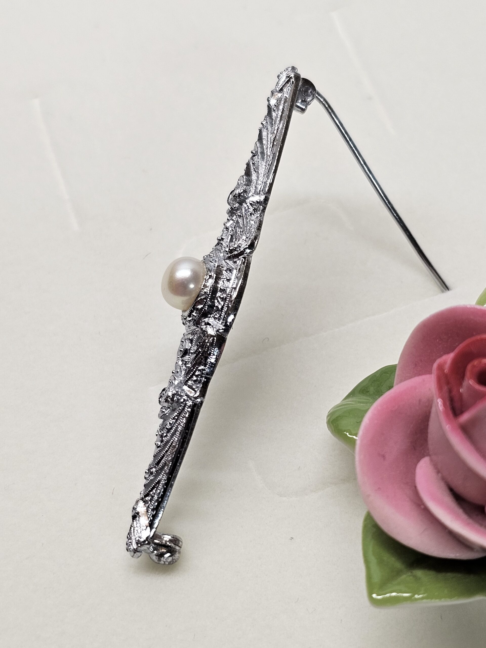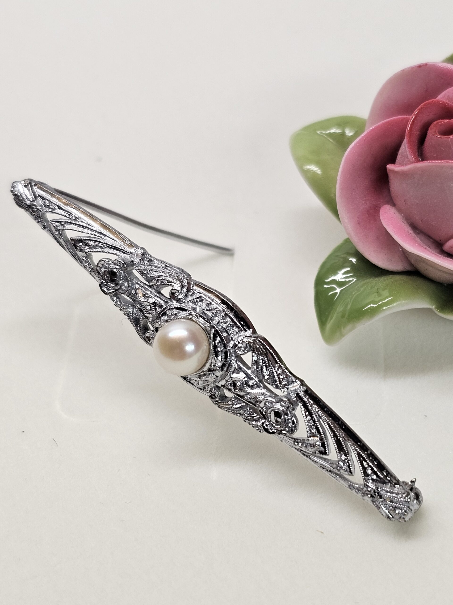 Art Deco Anstecknadel Brosche Silber 835 Perle & Markasiten kunstvoll glänzend Shabby Vintage elegant SB546