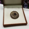 Art Deco Brosche Anstecknadel Silber 800 vergoldet Pyrit lila Kristall Shabby Vintage SB333