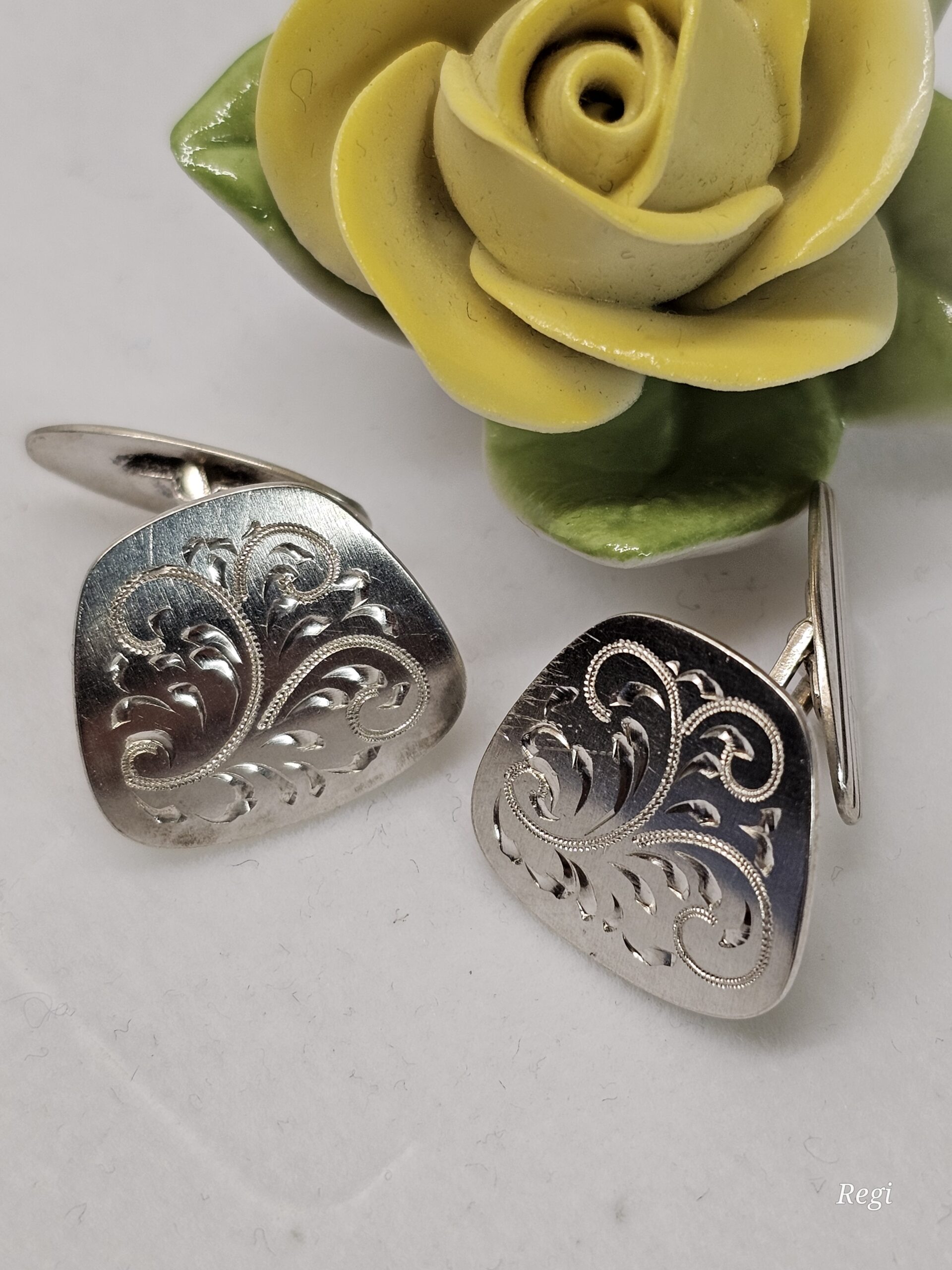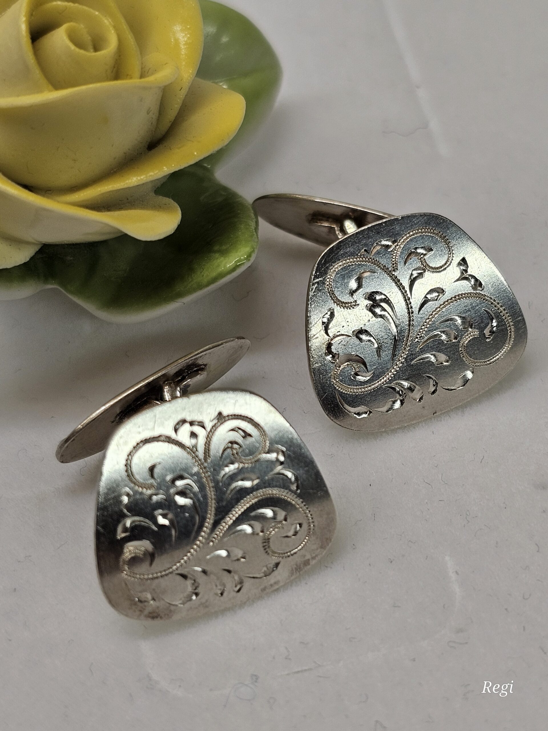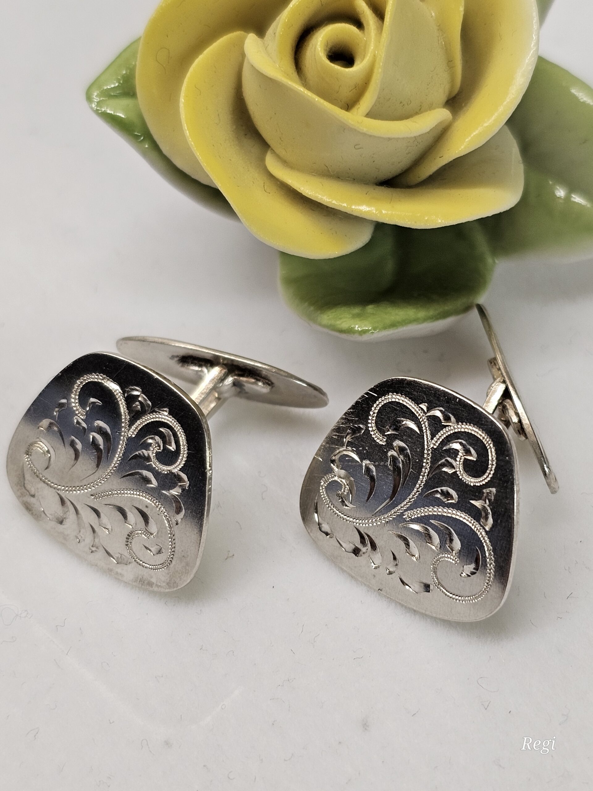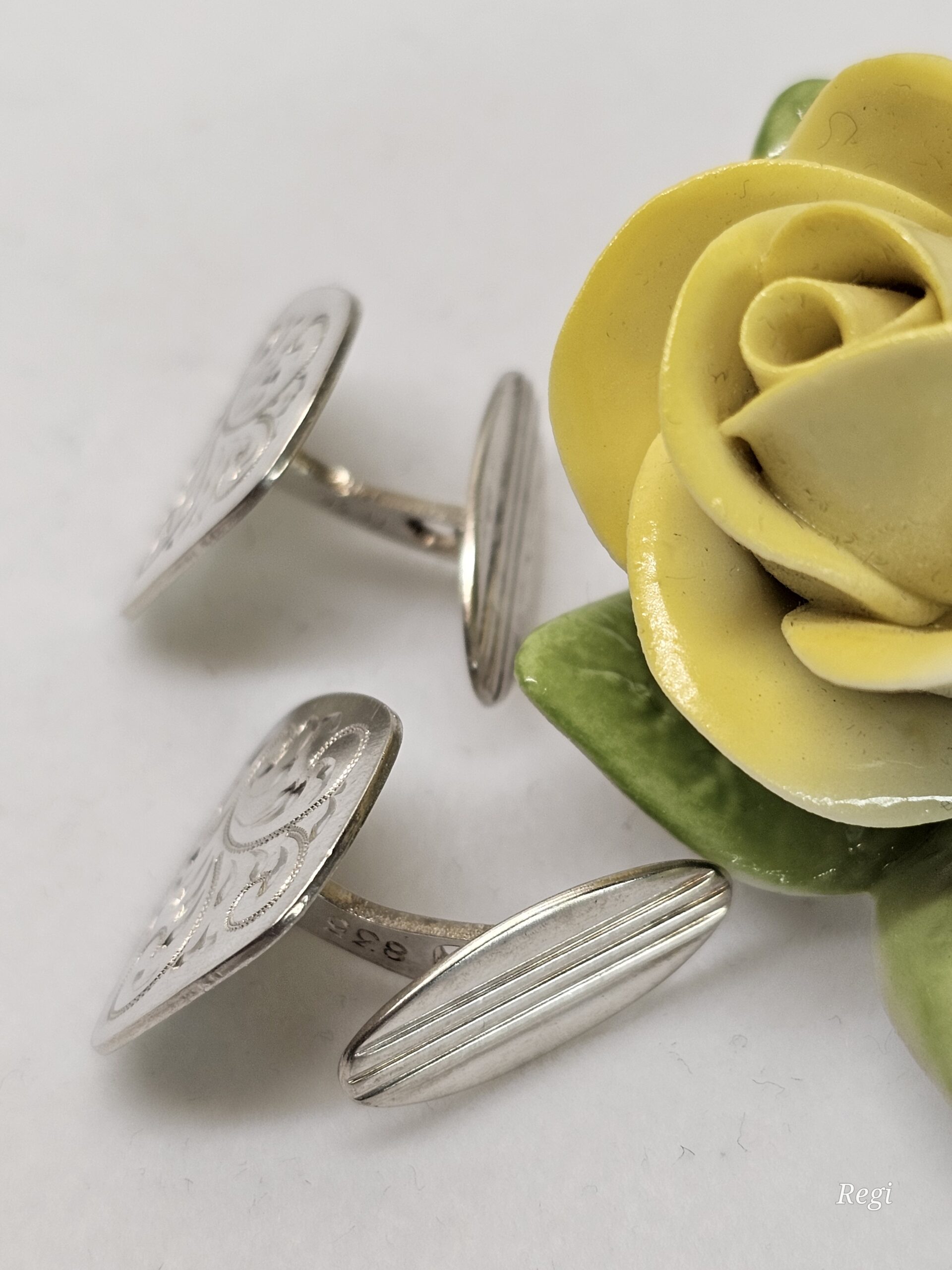 Shabby Vintage nostalgische Manschettenknöpfe aus Silber 835 mit ziseliert gestaltetem Design.