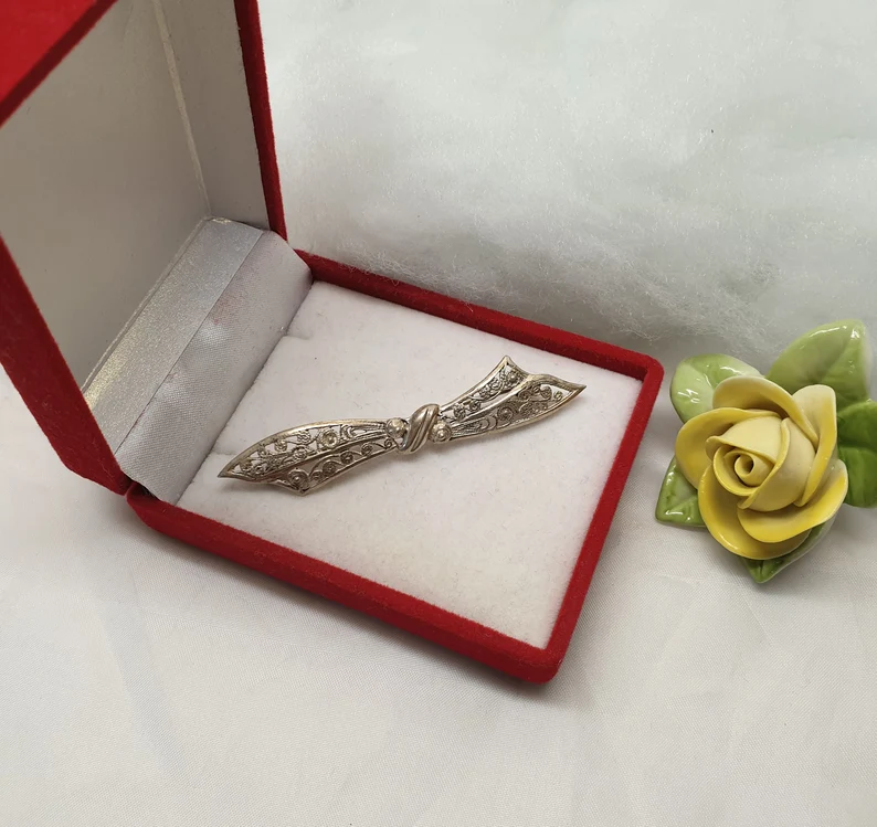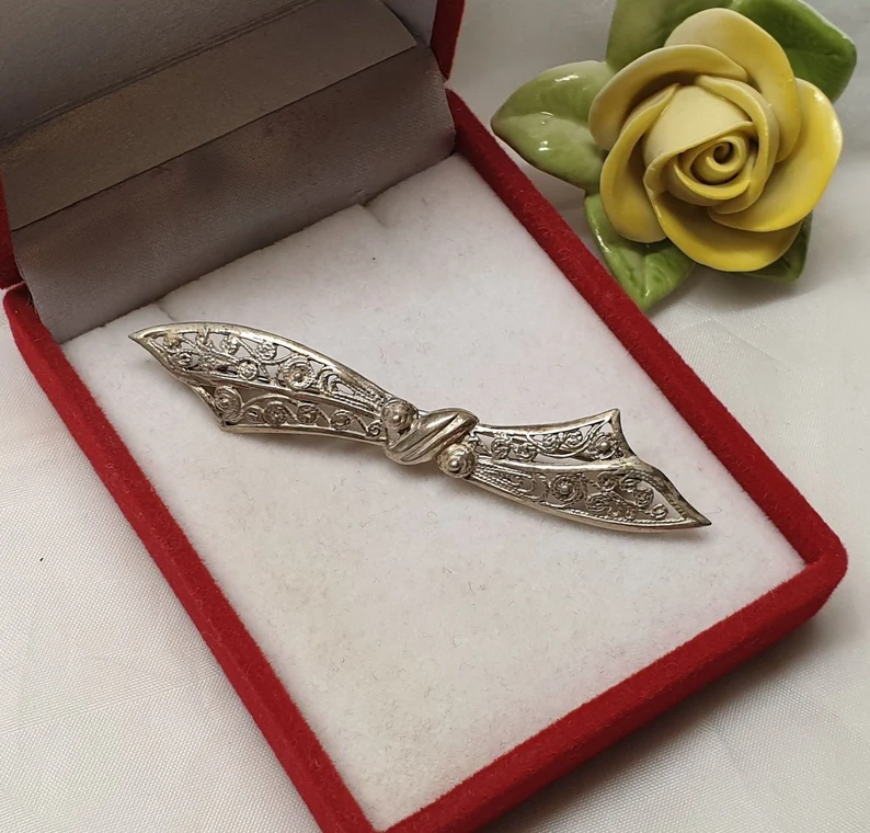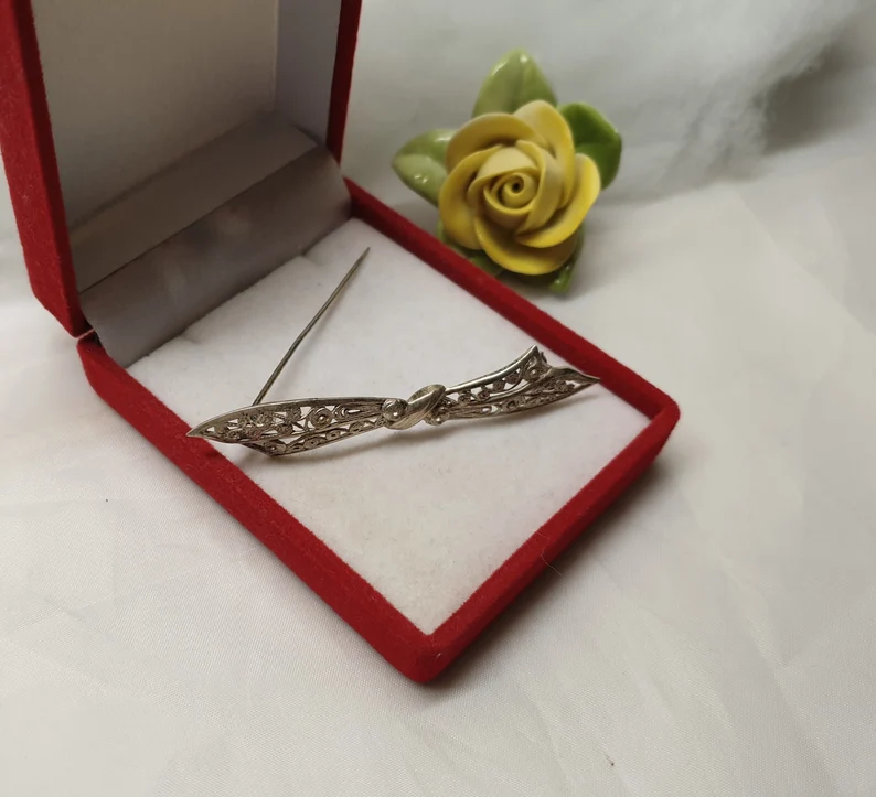 Eine wunderschöne nostaligsche Art Deco Brosche in Form einer Schleife aus Silber 835.