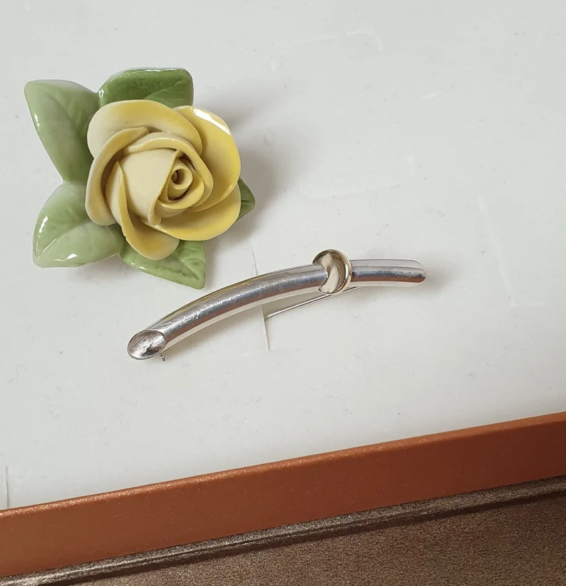 Designer Brosche / Anstecknadel Silber 925, mit einem vergoldeten Element verziert.