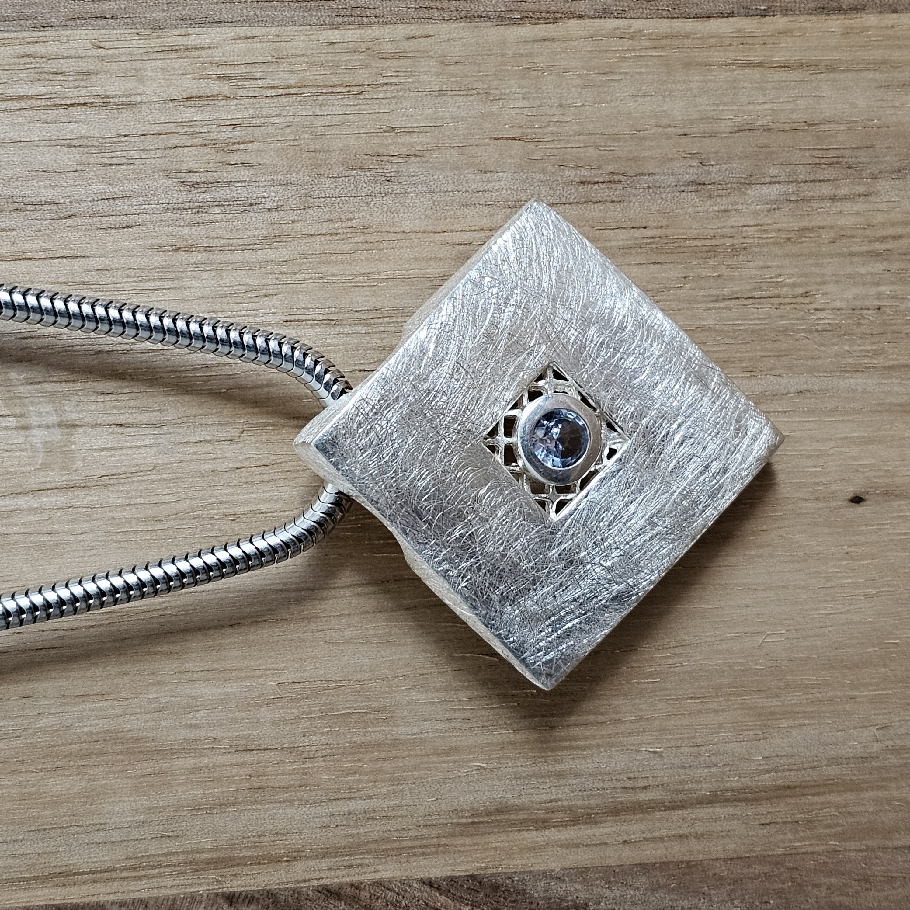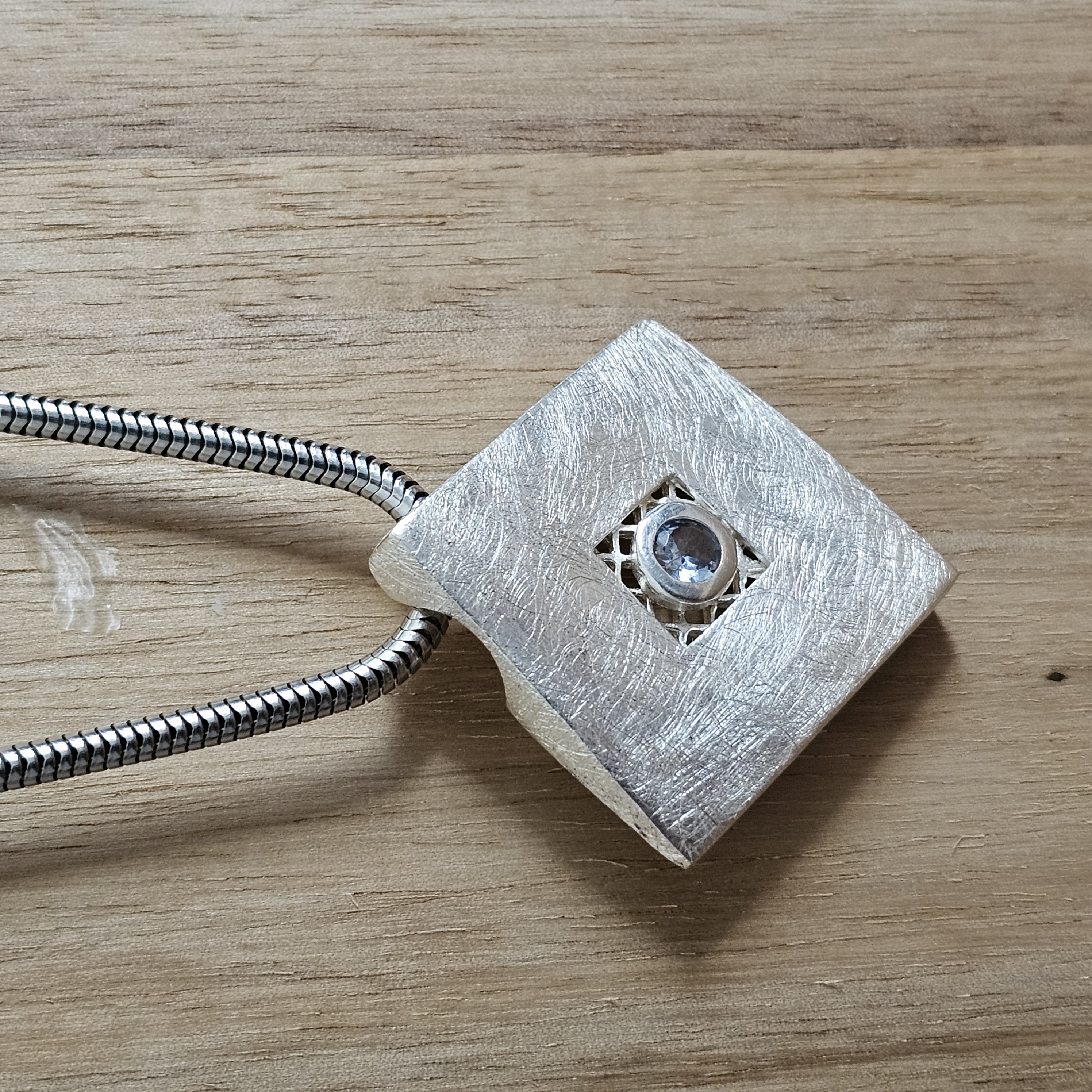 Extravaganter Anhänger ohne Kette Silber 925 gebürstet Topas Blautopas Design Vintage Eleganz SKA1326