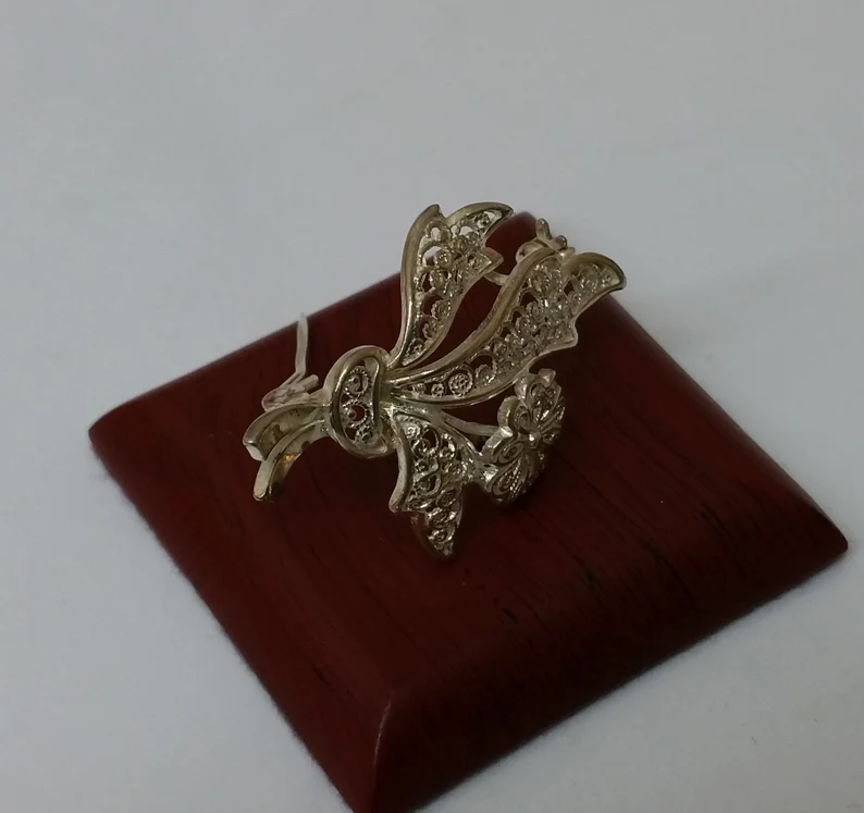 Hübsche filigran Art Deco Brosche aus Silber 800 in Form eines Blumenstraußes / Bouquets.