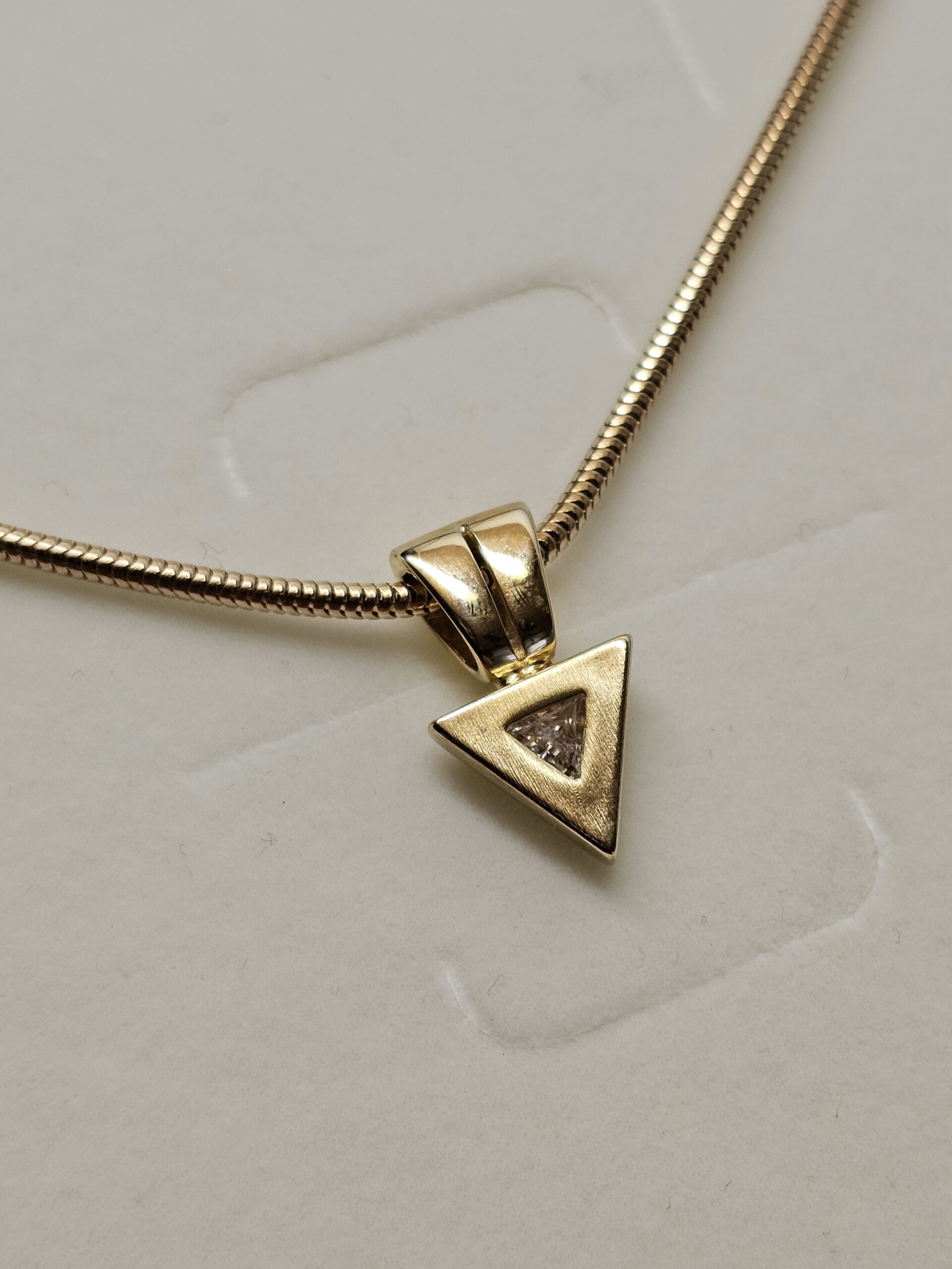 Hübscher Anhänger Dreieck / Pfeil aus Gold 333, besetzt mit einem klaren Kristallstein.