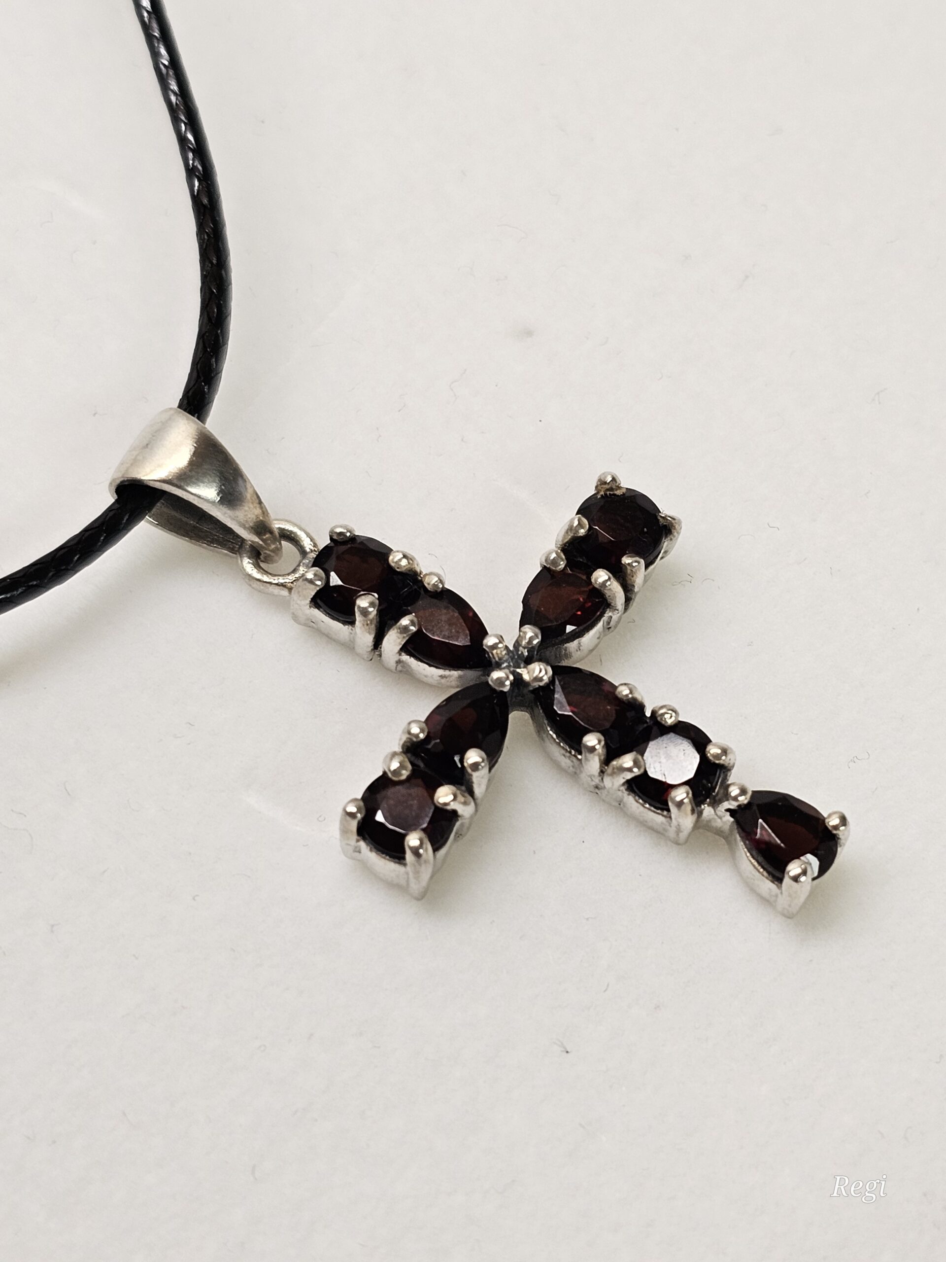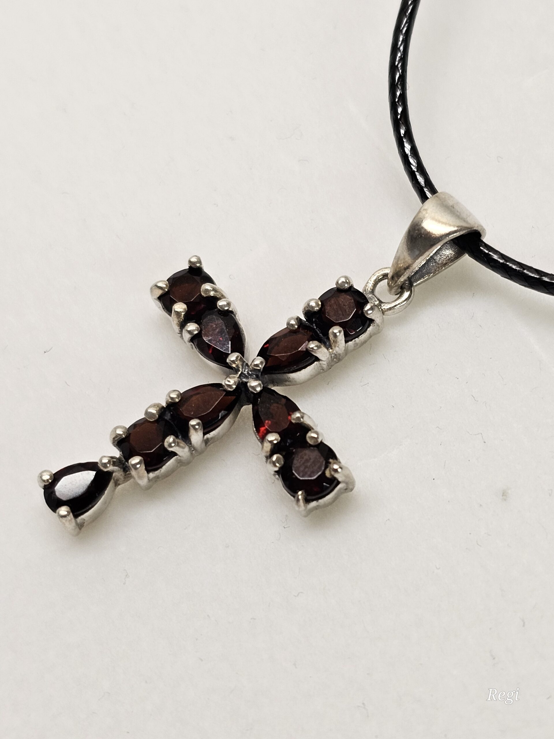 Toller Kreuz-Anhänger mit edlen roten Kristallsteinen.