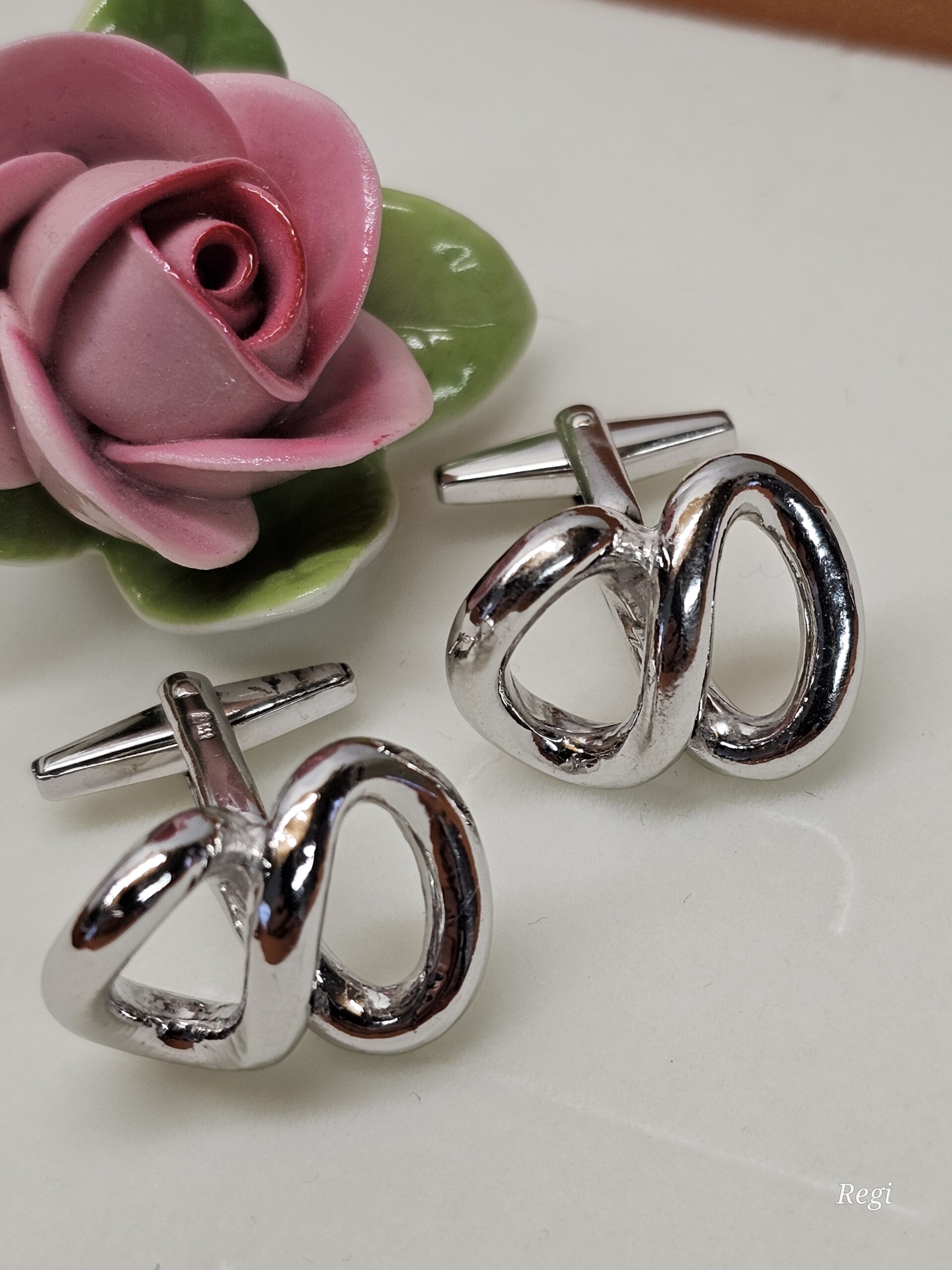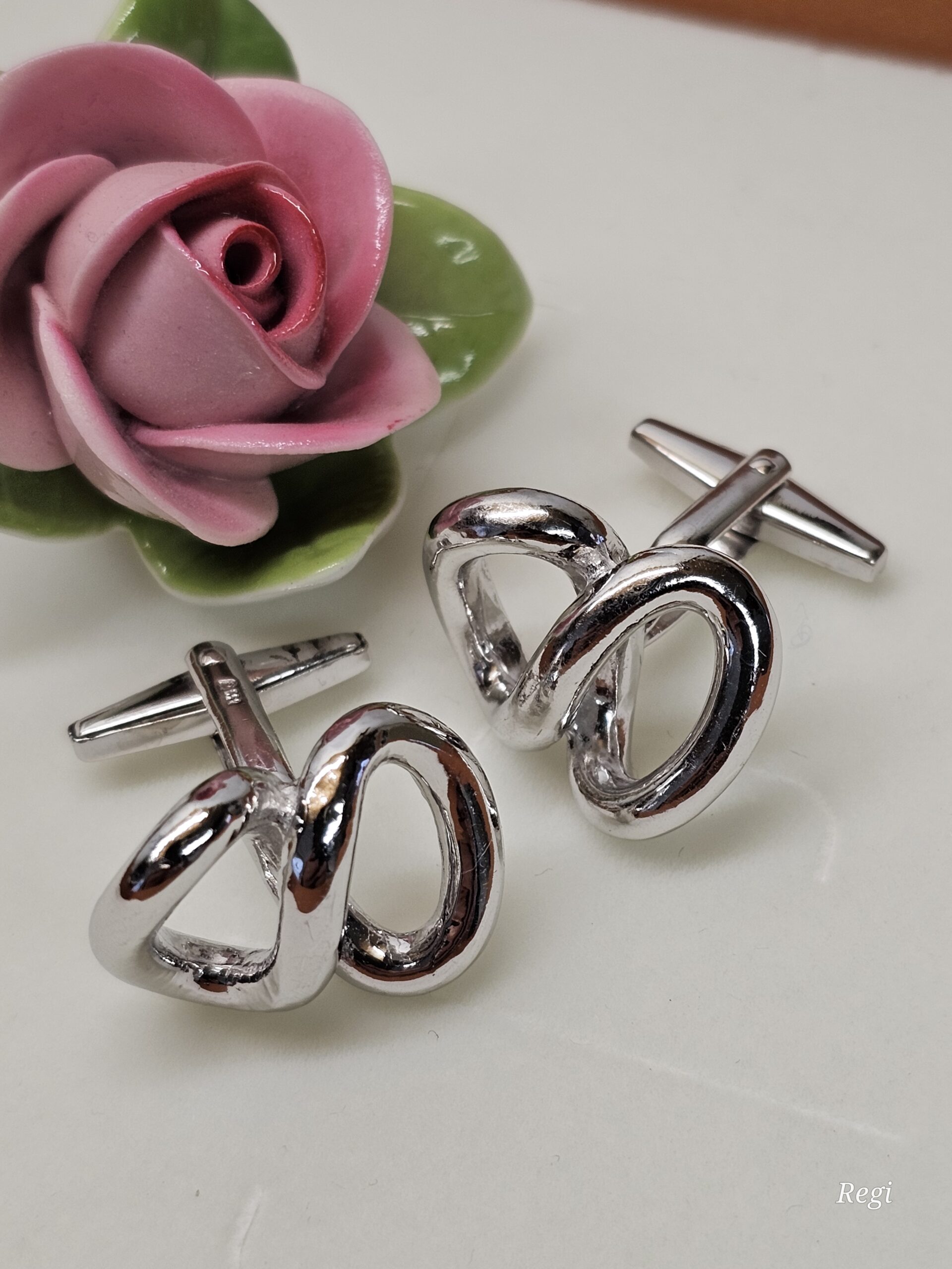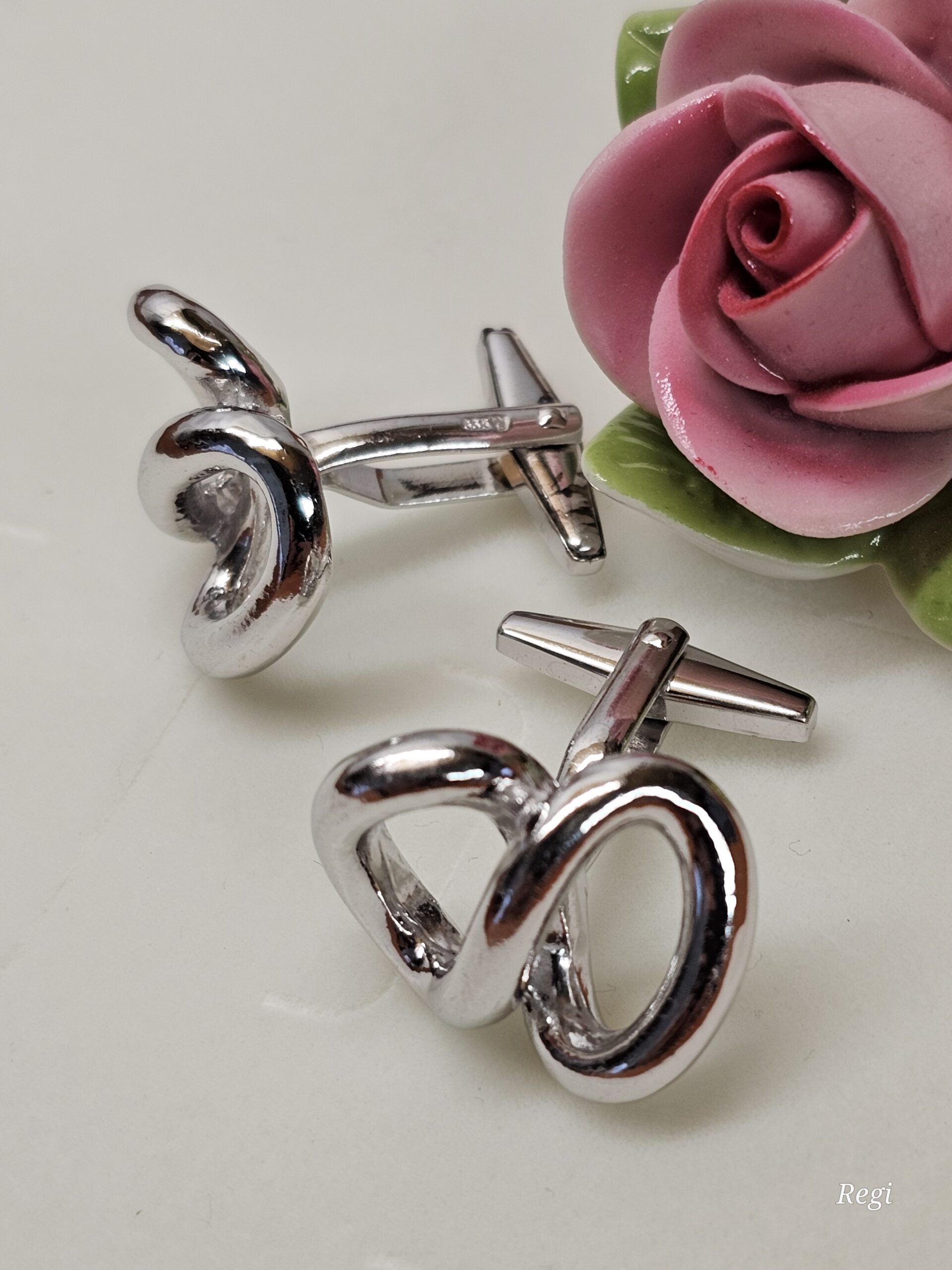 Stylische Manschettenknöpfe / Cufflinks aus Silber 835. Design Unendlichzeichen – wunderschön elegant!